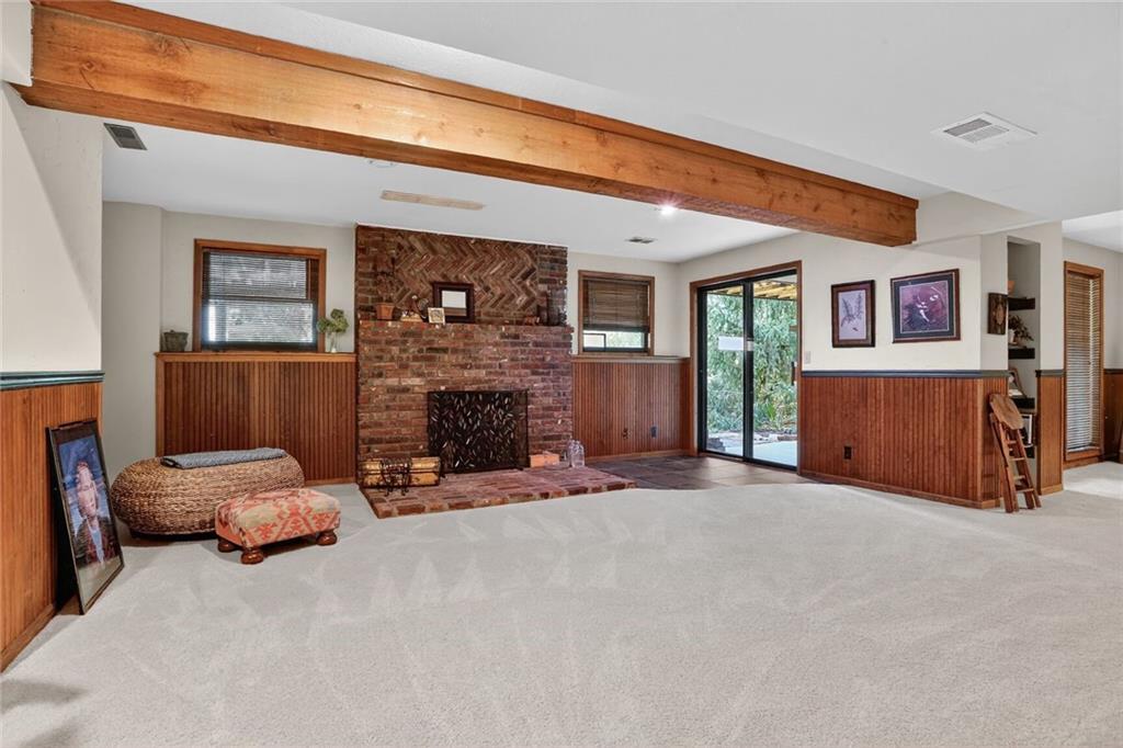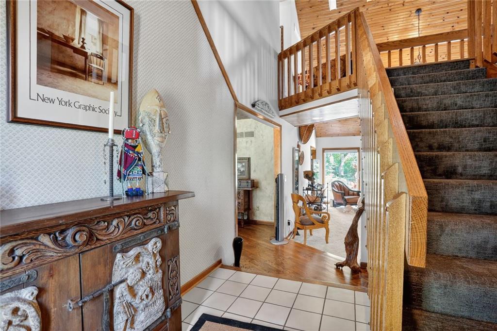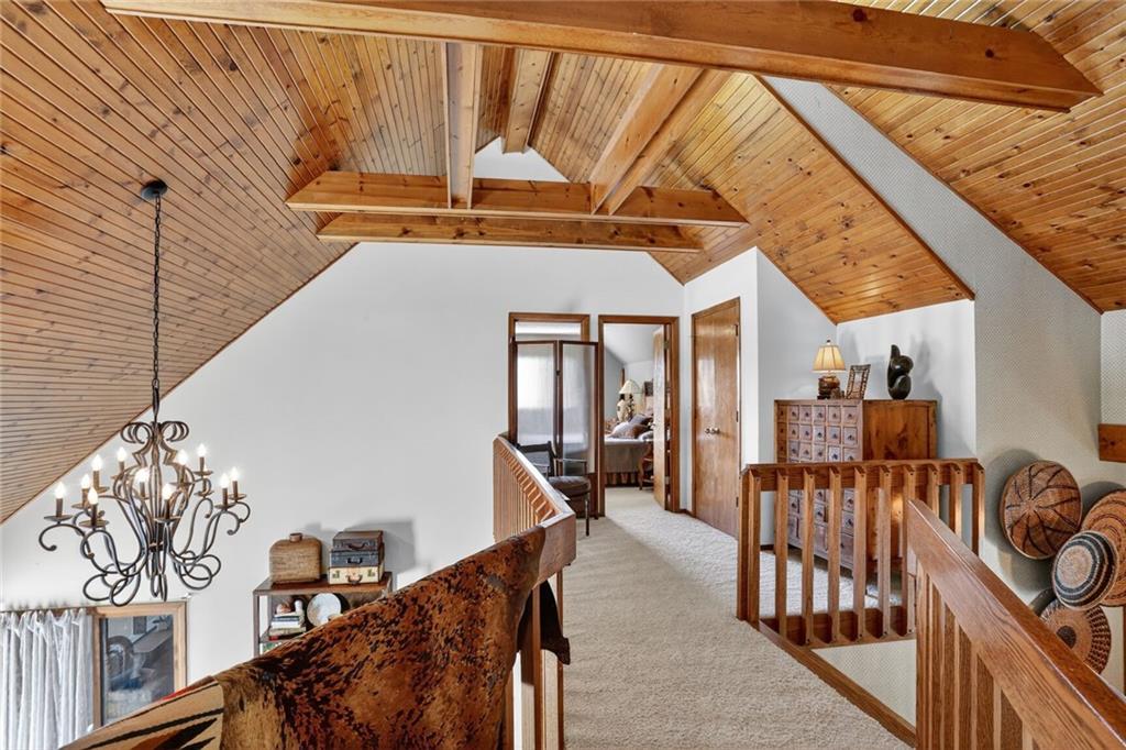 Coveted neighborhood with rare turnover thanks to its prime location and wonderful neighbors. This custom-built home features distinctive architecture with modern/Mid-Century influences, including a dramatic wood-paneled, beamed great room with loft overlook. The multi-level kitchen is designed for entertaining and offers exceptional cabinetry and storage. Southern exposure fills the home with natural light and creates ideal conditions for beautiful gardens. A rare first-floor primary suite with nearby laundry enhances long-term livability. Three spacious bedrooms upstairs plus a large walkout recreation room with fireplace provide abundant living space. A rare opportunity to make this special home your own.