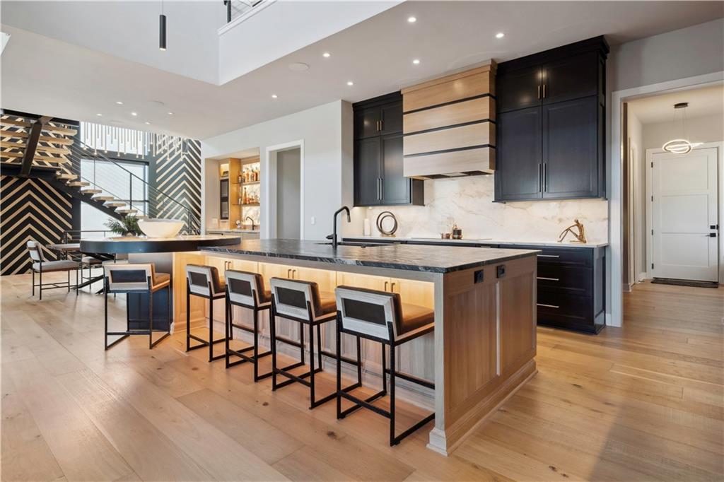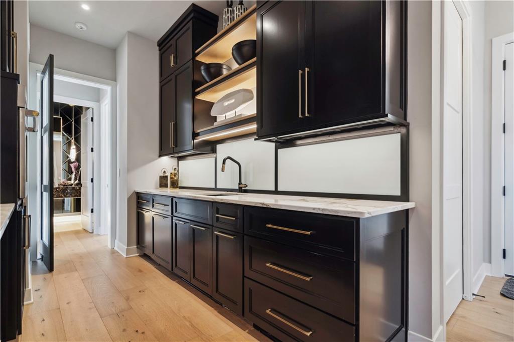 This one-of-a-kind Don Julian home mixes true modern esthetics with the comfort of everyday living. Thoughtfully designed throughout, from the custom 3-story floating staircase to the luxurious backlit quartzite stone, this home has the “Wow factor” you’ve been looking for! The two-story great room features floor-to-ceiling windows and a custom rolled metal fireplace, complete with built-ins and floating shelves. The stunning main level bar showcases European style cabinet doors and backlit stone. The spacious main kitchen boasts granite countertops, a paneled refrigerator, custom backlit cabinetry, and an induction cooktop. The secondary kitchen offers custom cabinetry with built-in storage, wine refrigerator, bar, oven, ice maker, dishwasher, and refrigerator. The primary bedroom and luxurious bathroom suite feature a freestanding tub, pebble stone shower floor, custom cabinetry, and quartz countertops. Panoramic doors extend to the private outdoor lanai, an ideal space for entertaining in all seasons, complete with a built-in grill, fireplace, and refrigerator. The main level also includes an office, spacious pantry, laundry room, and a beautifully designed mudroom. Off the loft upstairs, you’ll find each secondary bedroom features a private bathroom, crafted with meticulous attention to detail. The expansive walkout lower level offers ample space for additional finishing if desired. The owner has made extensive upgrades, including custom automatic blinds, luxurious custom closet design in the primary suite, and durable epoxy garage floors. Additional enhancements include an exterior door from the garage, custom garage cabinetry and mini split HVAC, fencing, and professional landscaping. The newly added outdoor patio space is perfect for entertaining, complete with a bar and built-in kitchen, complete with a pizza oven, cooktop and refrigerator! Plus, the home is equipped with whole-home automation for ultimate convenience and modern living.