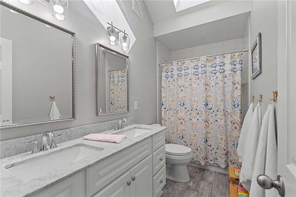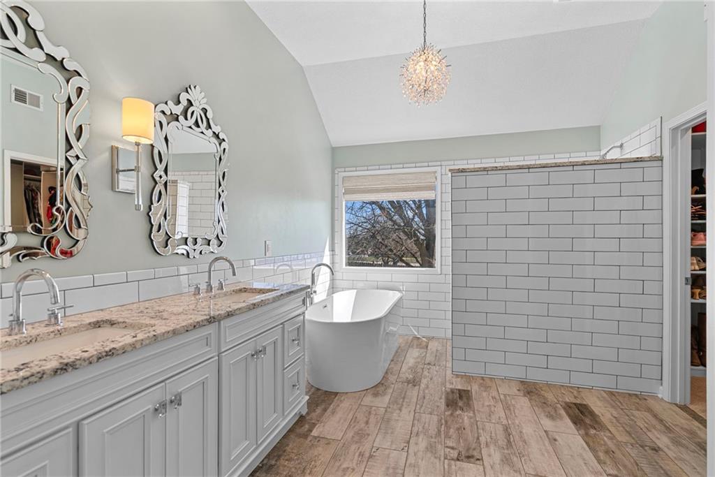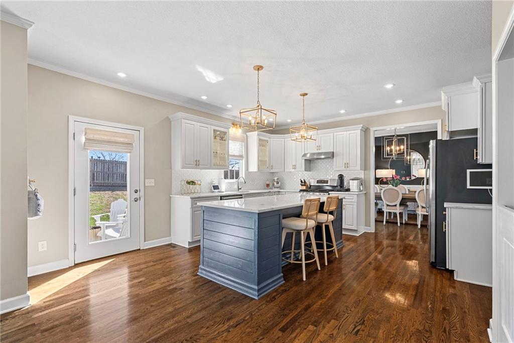 Wow, just wow! You won't believe the incredible updates in this stunning home located in the Blue Valley School District. This home underwent a complete transformation in 2017, which included: New kitchen cabinets and a custom island, Marble countertops and new backsplash, New stainless steel appliances, Beautiful hardwood floors, Updated lighting and fixtures throughout, Renovated bathrooms with new flooring, a walk-in shower, and a free-standing tub in the primary suite, An added second closet in the primary suite and a front coat closet, Fresh siding and exterior paint, New windows, roof, and HVAC system. In 2021, the basement was finished, featuring a custom bar, recreation/media room, exercise space, and an additional half bath. The property also boasts a newer concrete patio and a fenced yard.