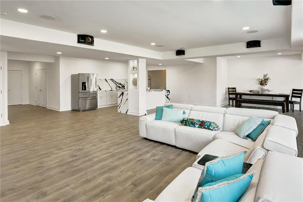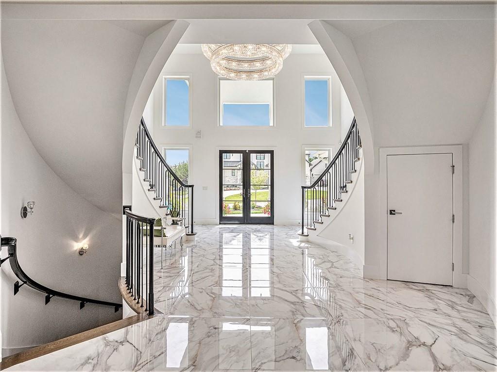 STUNNING. ELEGANT. EXTRAORDINARY. This nearly new Timber Rock Community showpiece is a true custom luxury build! A grand dual staircase and 3-tier custom crystal chandelier set the tone the moment you walk in, leading into a modern, light-filled living area with an 8-by-18-foot porcelain marble feature wall and a breathtaking 2-tier crystal chandelier. The chef-inspired kitchen is an entertainer’s dream, with a 5x10 leathered granite island, JennAir Pro appliances, a separate prep kitchen, and a huge pantry flowing seamlessly to an oversized crystal-lit dining area and covered lanai with a stone fireplace—perfect for unforgettable dinner parties, game days, and holidays. Your main-floor primary retreat feels like a five-star spa, offering an indulgent bath with oversized dual shower, soaking tub, and an expansive custom closet. Exquisite tilework, custom dual vanities, 5-foot circular mirrors, and crystal chandeliers create a jaw-dropping sanctuary, completed by a large 3-tier closet with two built-in chests. Upstairs, three spacious bedrooms with designer accent wallpaper—each with its own ensuite bath—ensure every guest or family member enjoys a private, boutique-hotel experience. The newly finished lower level is an entertainer’s paradise, with a wide-open living area, dedicated dining space, and a wet bar, all illuminated by a wall of windows overlooking green space; two extra-large bedrooms (ideal for an exercise room or private office) share a beautifully tiled full bath, and a generous wine room becomes the centerpiece for tastings and celebrations. Sliding doors lead to a large patio and lush green space expanding your living area outdoors, ideal for morning coffee and casual evenings. An oversized angled 4-car garage, large mudroom, and extra-spacious laundry loaded with custom cabinets and counters provide the everyday functionality that makes luxury living effortless. Buyer’s agent to verify square footage, schools, and taxes.