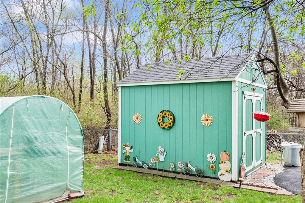 This charming one owner home has been well maintained and sits on a large lot at the end of a Cul-de-sac. Newer features include stainless appliances in Dec. 2023, roof in May 2025, heating & cooling in Feb. 2025, water heater in Jan. 2021, exterior paint in 2025, garage doors in Dec. 2025, repaved driveway in June of 2023 and the shed by the driveway in July 2023. You will love stepping out into the back yard with the covered deck and brick patio, above ground pool, 4 nice sheds for plenty of storage, fire pit, horseshoe pit and a greenhouse for growing your plants. One of the storage sheds even has a concrete floor that can be used for almost anything. Plenty of parking with an extended driveway that goes into the back yard. Perfect for storing a motor home or boat or if you need the parking for entertainment. This home is perfect if you love to entertain. Homes in this subdivision do not come on the market often and this one is priced well for everything that comes with it. The last home to sell in this subdivision was in August 2023. Olathe schools. Seller "MAY" need a one day occupancy after CLOSING. This home is a must see.