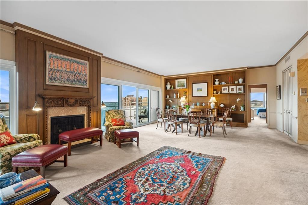 Amazing opportunity to own the coveted penthouse at Parkway Towers and design it to make it your very own style. Designed by the developer of the building for himself, this unit boasts the very best view to the south of the Country Club Plaza. Plus, it is a large unit providing lots of light throughout with windows on three sides. Large living room with a very large balcony, a fireplace and spacious dining area. Kitchen space plus formal dining room. Property includes an additional studio-style unit that would be great to expand into, could make a wonderful guest space or could be divided out as a separate unit. This home features high ceilings and some of the best condo space imaginable. Please note that Parkway Towers allows only service and emotional support animals.