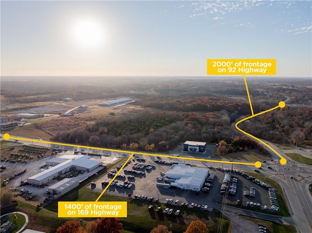 Prime 75.48+/- acre multi-use commercial opportunity positioned at the high-visibility intersection of 169 Highway and State Route 92 in the heart of Smithville, MO. This rare tract offers outstanding development potential with commercial zoning and approximately 1,400 feet of frontage along 169 Highway plus an additional 2,000 feet along 92 Highway. The site benefits from an average traffic count of 26,549 vehicles per day, making it an exceptional location for retail, industrial, mixed-use, or possible multi-family projects. Strategically situated just 7 miles from KCI Airport and 18 miles from downtown Kansas City, this property lies within 10 miles of three major interstate highways and is surrounded by ongoing growth throughout Smithville. Nearby developments include Fairview Crossings Townhomes, Main & Mill Apartments, major commercial redevelopment directly across the street, and it is only 3 miles from the new Meta and Google data centers. This expansive tract is a true blank slate, offering unmatched visibility, access, and potential in a rapidly expanding corridor. Bring your vision and build the next landmark development in Smithville.