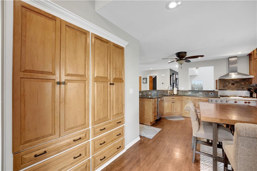 Welcome to this beautiful 1.5-story home with 4 bedrooms, 3.5 bathrooms, 3-car garage,and plenty of space to live, work, and entertain. The main level features a chef’s kitchen with a Wolf gas range, double oven, custom cabinets, and hardwood floors, along with a formal dining room and a comfortable living room with a fireplace. The primary suite is conveniently located on the main level and includes a full bathroom with a sauna, double vanity, and walk-in closet. You’ll also find the laundry room on the main level for added convenience. Upstairs offers two oversized bedrooms with large closets and a full bathroom. The finished lower level provides even more space with a custom bar, family/rec room, fourth bedroom, full bathroom, and large private office that’s perfect for working from home or a hobby space. Outside, enjoy the fenced backyard, irrigation system, and even a cold plunge area! This home offers a great mix of comfortable living space, unique features, and room to spread out.