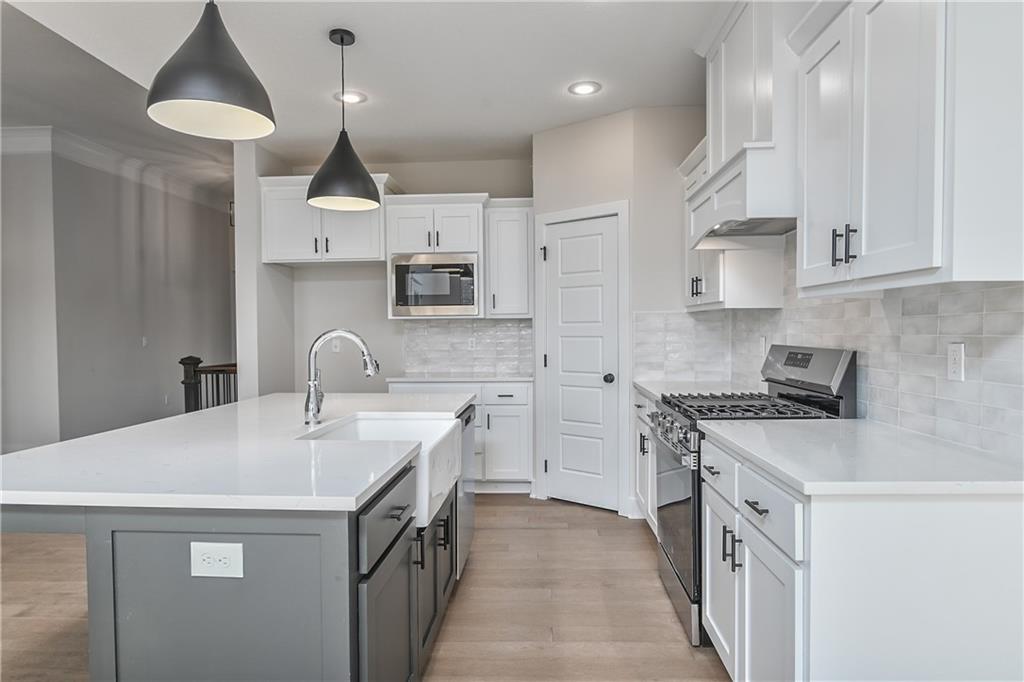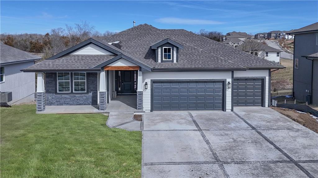 Welcome to your new home, where contemporary design seamlessly blends with functionality in the coveted Apex floor plan. This home is nestled in the new phase of the subdivision. This 1.5 reverse split layout offers a perfect balance of comfort and style. Experience the open-concept living space adorned with abundant natural light, creating an inviting atmosphere for both relaxation and entertainment. This residence boasts 4 bedrooms and 3 bathrooms, providing ample space for the entire family or guests. The lower level features a walkout basement with a versatile rec room, offering endless possibilities for hobbies, gatherings, or a cozy movie night. Backyard overlooks wooden tree line for privacy. Nestled in the new phase of the neighborhood for quiet and peaceful sunsets. The home is in the heart of the prestigious Olathe School District, Enjoy the convenience of being within walking distance to the recently updated Lake Olathe, offering a picturesque escape for outdoor activities and family outings. The property is adorned with modern finishes, ensuring both style and functionality throughout. Become part of a thriving community that values education, recreation, and a high quality of life. With convenient access to major thoroughfares, commuting to and from work or nearby amenities is a breeze.