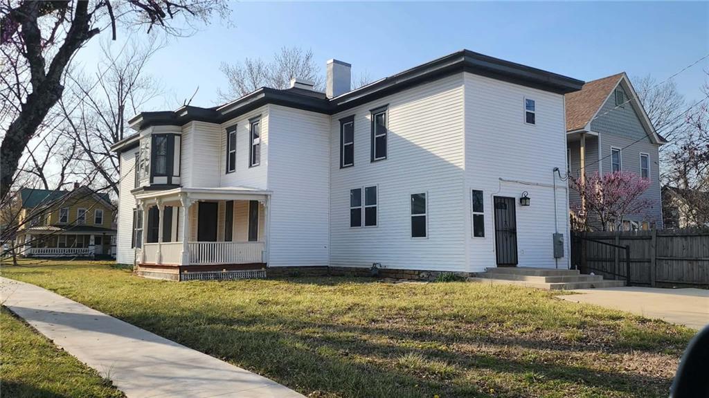 Step into everyday vacation living in this stunning turn-of-the-century retreat! Rich with character, the home features exquisite handcrafted woodwork, leaded windows, and beautiful original fireplaces that anchor the main living spaces. Thoughtfully preserved charm blends seamlessly with modern updates for comfort and efficiency. Enjoy flexible living and entertaining with spacious, connected rooms, a cozy reading porch, and a chef’s kitchen complete with butcher block countertops, stainless steel appliances, and stylish finishes. Upstairs offers generous bedrooms with updated features while maintaining original detail, along with spa-inspired bathrooms designed for relaxation. Located in Fort Scott’s historic district, this property offers endless possibilities—whether as a personal residence, Airbnb, or unique business space.