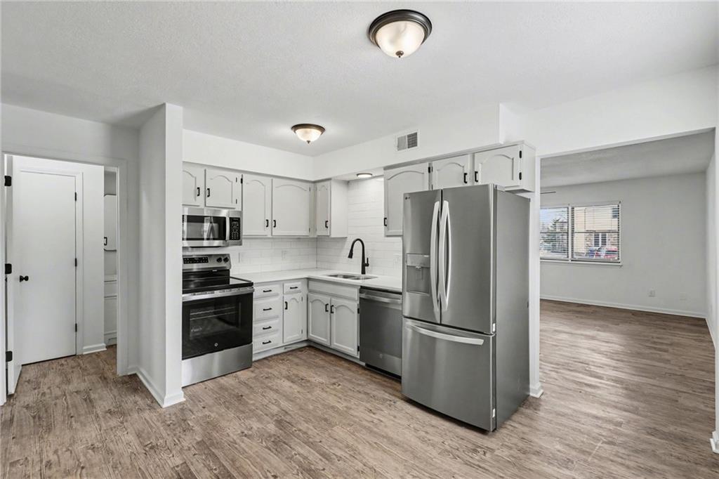 This beautifully updated 1.5-story townhome offers the perfect blend of style, comfort, and location. As an end unit, you’ll enjoy added privacy and natural light. Start your mornings on the covered front patio, coffee in hand, taking in the charm of the neighborhood. The exterior features fresh asphalt off-street parking and classic brick with vinyl siding for timeless curb appeal. Step inside to find durable laminate flooring and a neutral color palette that makes decorating effortless. The spacious living room includes a conveniently located laundry closet and flows seamlessly into the kitchen. The fully remodeled kitchen shines with brand-new stainless steel appliances, freshly painted cabinetry, quartz countertops, and space for a cozy breakfast table. A formal dining area sits just off the kitchen and includes a pantry closet for extra storage. The main level also features a bedroom and a full bath, ideal for guests or flexible living. Upstairs, you’ll find two generously sized bedrooms and a beautifully updated half bath. Located in the heart of Downtown Smithville, you’re within walking distance to Heritage Park and the Square, offering boutique shopping, local restaurants, and coffee spots. Just minutes from Smithville Lake for boating, fishing, and outdoor fun, and only 20 minutes to KCI Airport, the convenience truly can’t be beat. Move-in ready and completely refreshed, this one is ready to welcome its next owner.