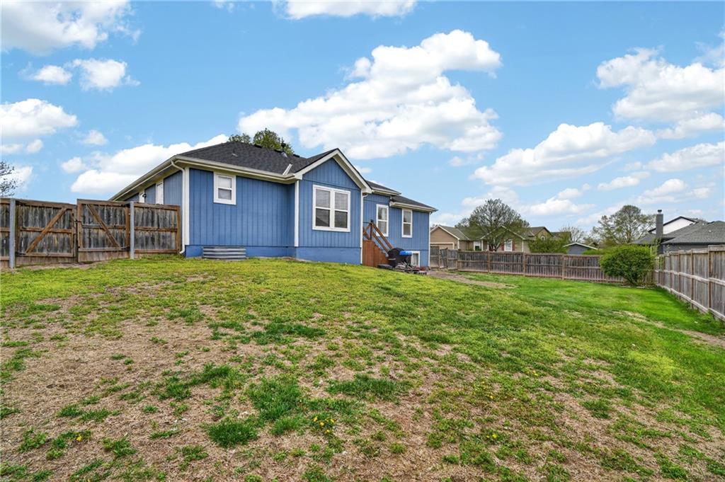 Welcome to 409 S Pumpkin Ridge Circle, where classic ranch living meets contemporary farmhouse style. This stunning four-bedroom, three-full-bath ranch situated on a prime corner lot in a sought-after Gardner subdivision. This home perfectly blends modern with incredible future potential, features a newer roof & gutters (2022) with one time transferable warranty to the buyer. As well as updated exterior (2022) makes for lasting peace of mind. The heart of the home is the expansive kitchen, updated kitchen sink & refrigerator (2024) Also, painted countertops, a tiled backsplash, painted cabinetry, and a large island peninsula with a breakfast bar that is perfect for entertaining. The main-level ranch layout ensures effortless living, while the deep two-car garage provides ample space for oversized vehicles and storage. Reverse osmosis system & water softener system has been installed (2024) Out back, enjoy a private retreat within the 6-foot wood privacy fence installed (2023) with double gate. Perhaps the most exciting feature is the massive full basement; with two-thirds currently unfinished, it offers a blank canvas to create your dream recreation space while building instant equity. Move right in and enjoy today while planning for tomorrow's growth. Located on a quiet circle in the heart of Gardner, you are just minutes away from local parks and highly rated Gardner Edgerton schools. Don't miss your chance to own this Gardner standout.
