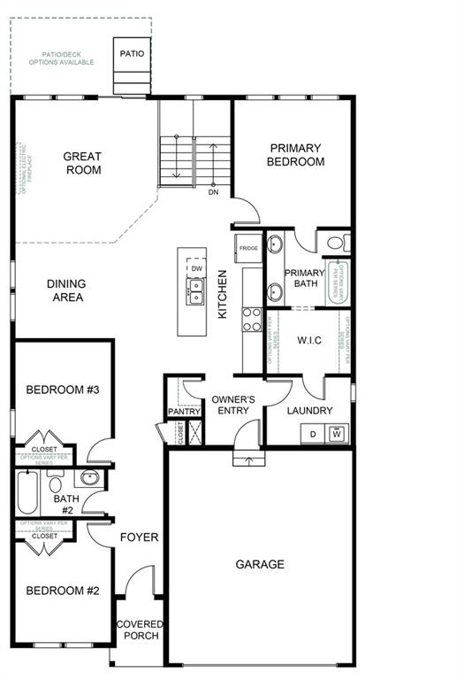 Our Wildflower home plan embodies the ideal ranch layout, offering both style and functionality. As you enter through the front door, you’re welcomed by a spacious entryway that leads into a bright, open-concept kitchen, dining, and living area—perfect for both relaxation and entertainment. The main floor features three well-appointed bedrooms, including the primary suite, which boasts a beautiful shower and a generous walk-in closet. The second and third bedrooms are versatile, easily accommodating guests or serving as a home office, with a full bath conveniently located between them. Looking for additional space? Consider finishing the lower level to include a rec room, another bedroom, and an extra bathroom, enhancing the versatility and functionality of your home.
