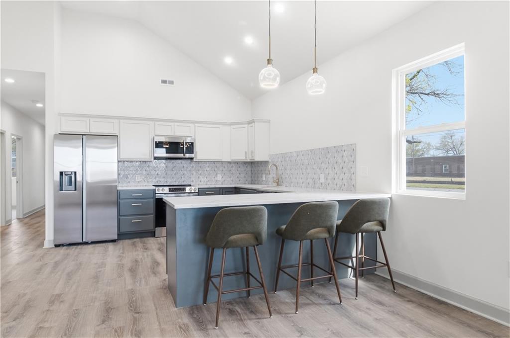 Welcome to this stunning brand-new construction home offering over 1,800 square feet of thoughtfully designed living space. This 3-bedroom, 2-bath home features a bright and open layout, highlighted by a spacious living room with impressive 16-foot vaulted ceilings and abundant natural light, while the remainder of the home offers comfortable 9-foot ceilings throughout. The modern kitchen is a true centerpiece, complete with sleek quartz countertops, a stylish marble backsplash, stainless steel appliances, and an oversized pantry providing ample storage. Durable and attractive LVP flooring flows seamlessly through the living, dining, and kitchen areas. The private primary suite serves as a relaxing retreat, featuring a spa-like bathroom with a double vanity, quartz countertops, and a beautifully tiled walk-in shower. The suite also includes a walk-in closet with built-in shelving for optimal organization. Each bedroom is equipped with ceiling fans for added comfort. Step outside to a brand-new deck, perfect for relaxing or entertaining. This is the one you’ve been waiting for—don’t let it slip away!