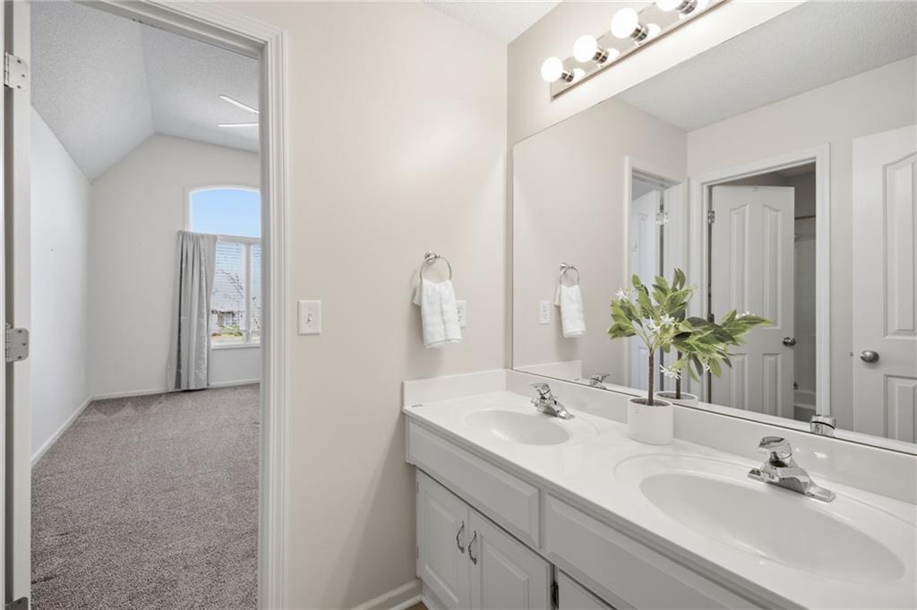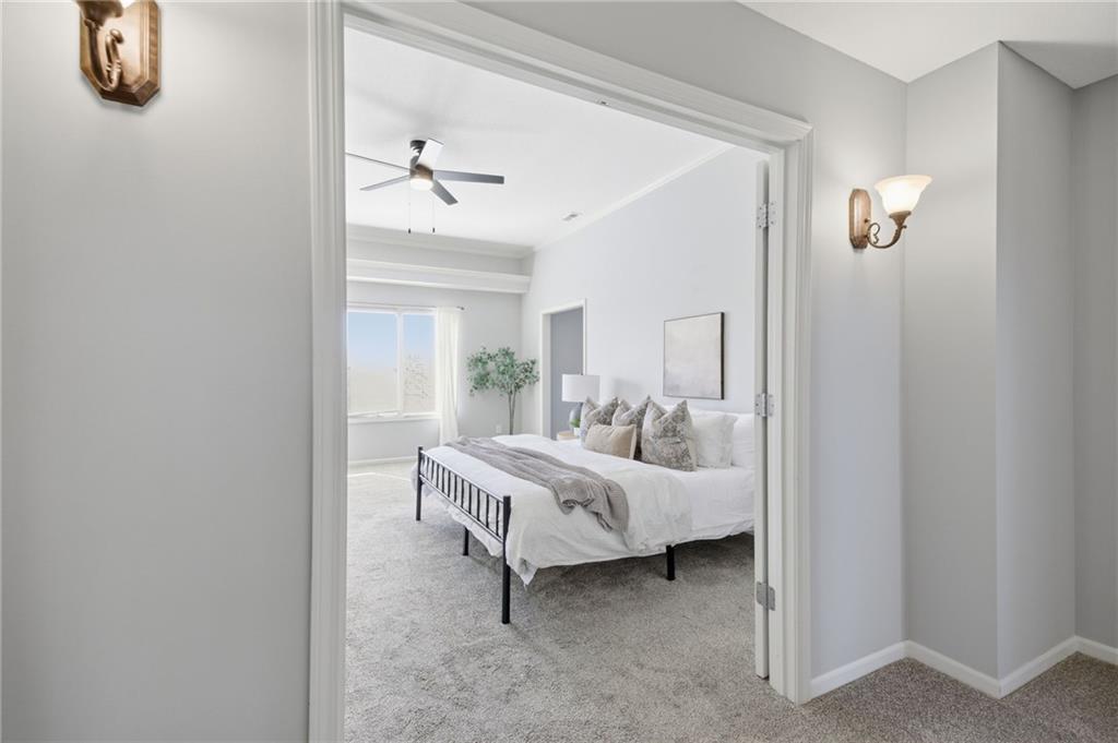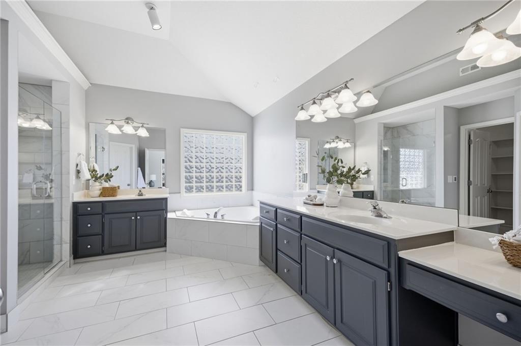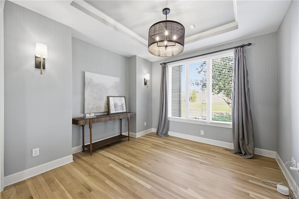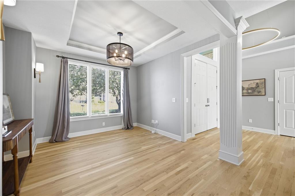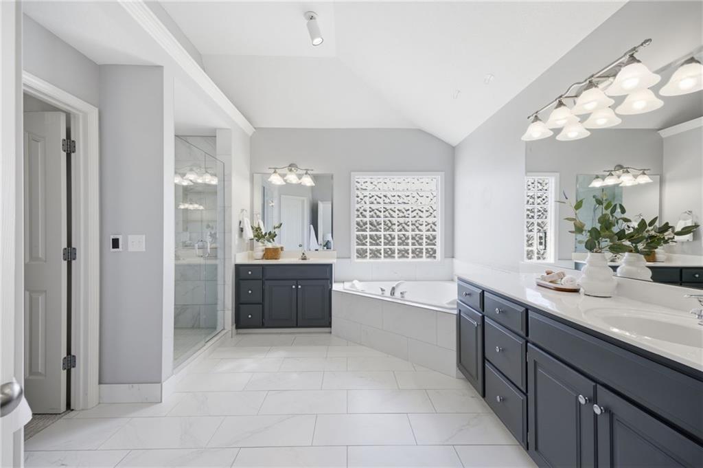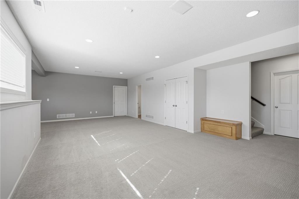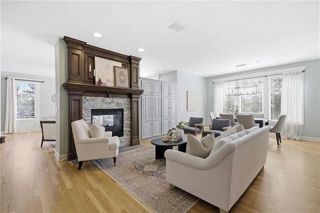 Located in the highly sought after Blue Valley School District, this 4 bed 3.2 bath single owner two story home has been meticulously maintained and thoughtfully cared for over the past 20 years. Perfectly positioned at the rear of a quiet cul-de-sac, the setting offers both privacy and a peaceful neighborhood feel. Step inside the foyer to soaring ceilings that create an open entry. The main level features Totta hardwood floors, updated light fixtures, and new Hunter Douglas custom blinds throughout. The remodeled kitchen offers ample cabinetry, generous counter space featuring marble counter tops, under cabinet LED lighting, and newer stainless steel appliances. The kitchen seamlessly opens to the hearth room featuring a two sided stone hearth. Upstairs, bedrooms feature soaring ceilings and spacious layouts. The primary suite includes an exceptionally large walk in closet and a remodeled bath with heated tile floors. A dedicated playroom off one bedroom adds extra space for children, hobbies, or a study. The finished basement provides additional living, recreation space, and ample storage space. Major updates include zoned HVAC with two new furnaces and A/C units, dual 40 gallon water heaters, radon mitigation, new sump pump, roof and gutters, fresh exterior paint in 2021, and more, providing long term peace of mind. Outside, the backyard is truly exceptional. A show stopping space designed for both beauty and functionality. The screened in porch overlooks professionally landscaped grounds featuring a five foot privacy fence, stunning water feature, low voltage LED lighting, and a sprinkler system. Every corner of the yard has been thoughtfully planned, making it a serene retreat for outdoor living, entertaining, and family enjoyment. This is an unbeatable location within the community featuring walking trails that lead directly to the elementary and middle school, with the highly rated Blue Valley schools conveniently located within the subdivision.