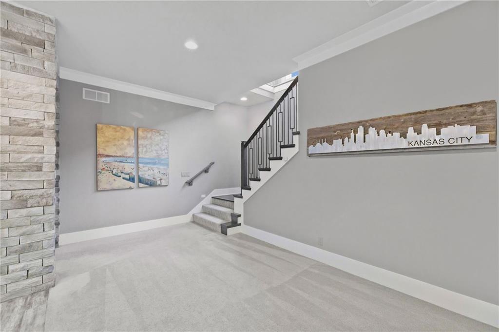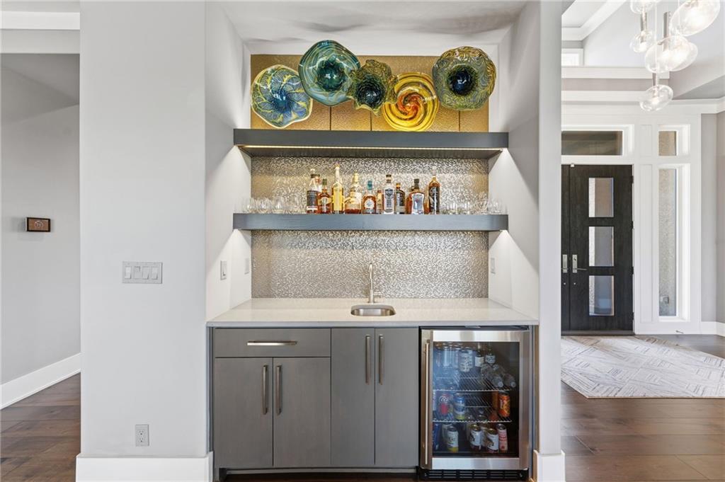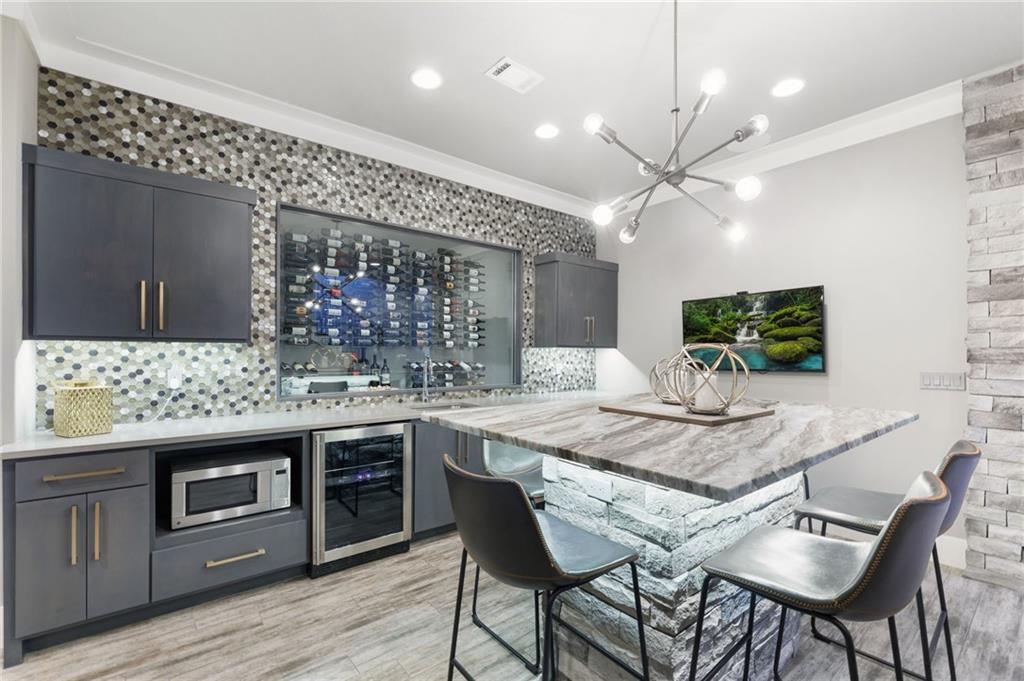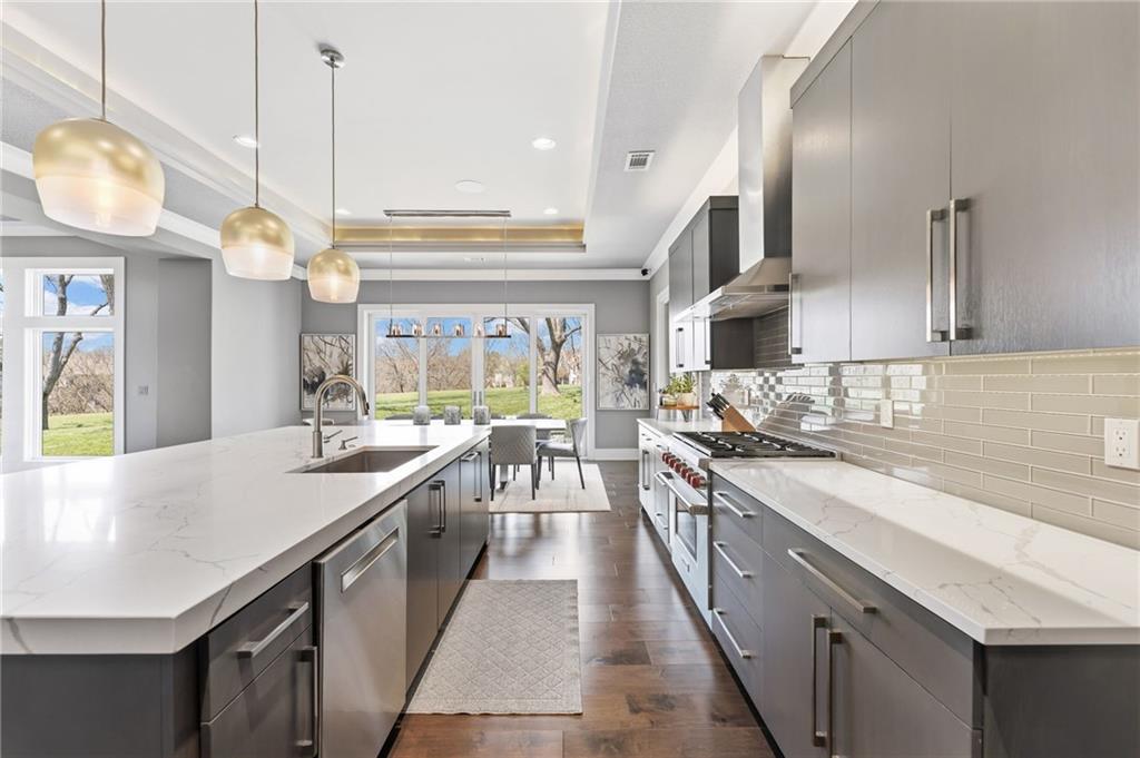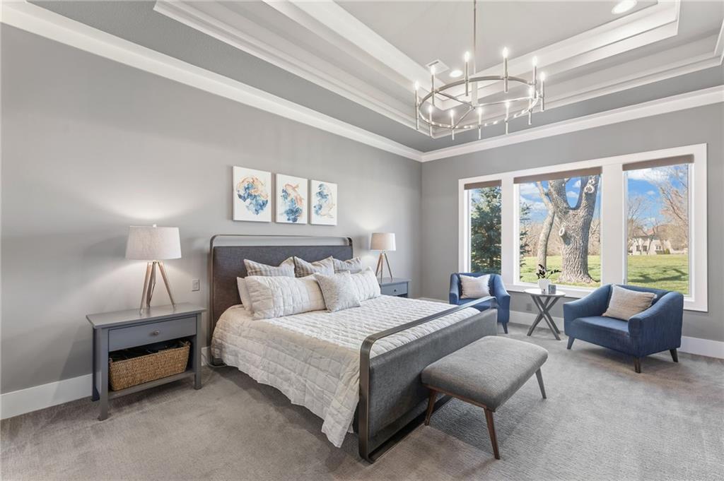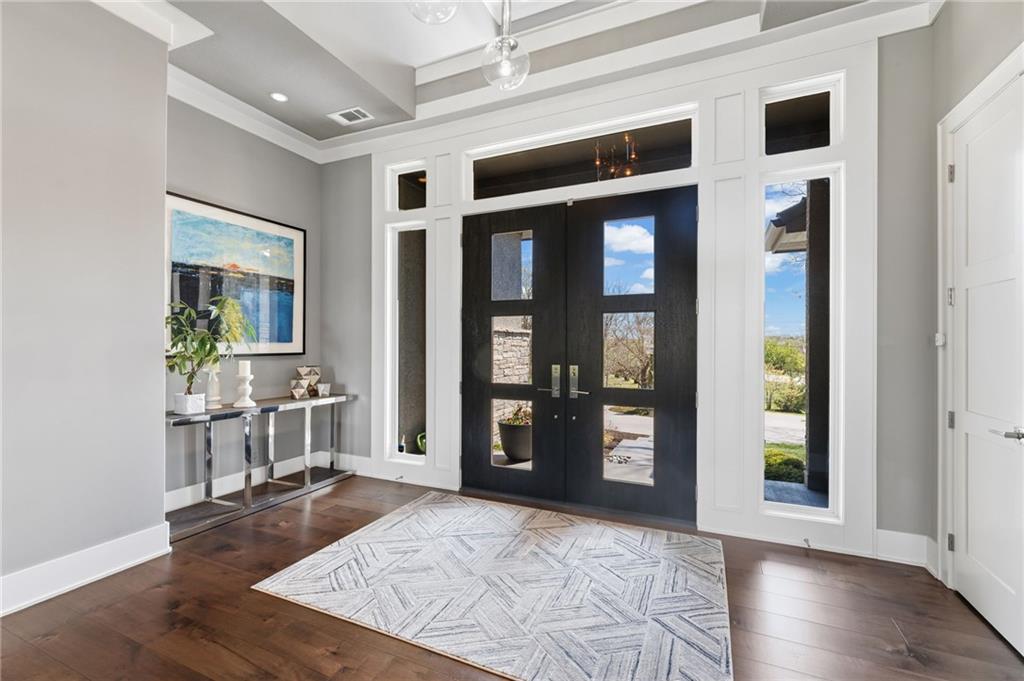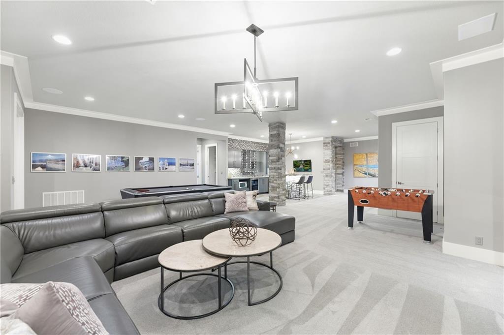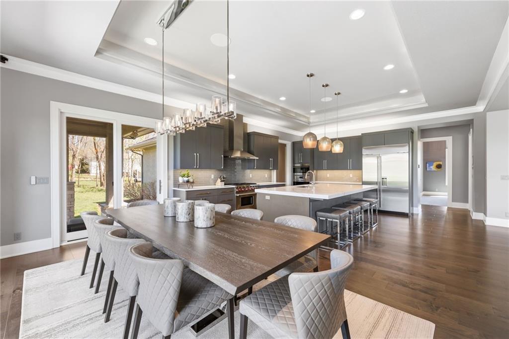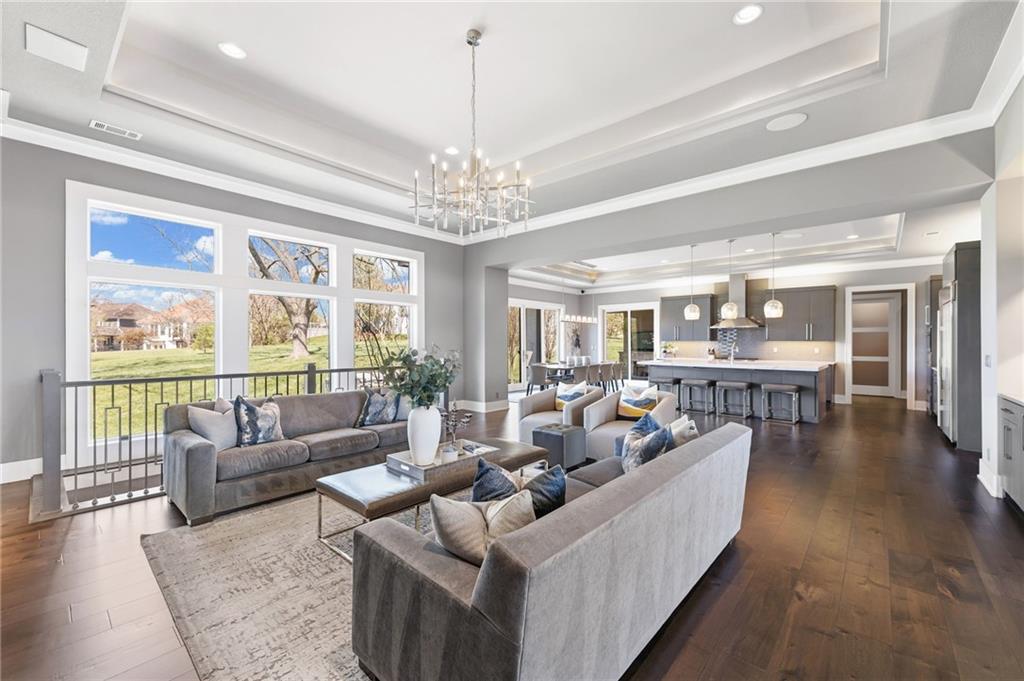 Custom-built with every modern amenity in mind, this stunning reverse 1.5-story home sits on 1.85 acres. Featuring 4 bedrooms, 4 full baths & 1 half bath, this home is thoughtfully designed for both everyday living and entertaining. The main level showcases an expansive open floor plan with dining to accommodate 10+ guests, anchored by a massive island and a chef’s dream kitchen. The kitchen boasts custom cabinets & premium Wolf & Sub-Zero appliances including a gas range, second oven, and built-in wall coffee maker. A huge walk-in pantry, spacious hall mudroom, and main-level laundry add convenience, while the primary suite and a private guest bedroom with full bath complete the main floor. Elevated finishes such as 6-inch custom trim and impressive 8-foot solid wood doors on the main level. The primary suite is a true retreat, featuring a cozy fireplace and a spa-inspired bathroom with a large tiled shower, freestanding soaking tub, double vanity, and a show stopping walk-in closet designed to impress.The lower level is equally well-appointed with soaring 10-foot ceilings, offering a large media room, dedicated office, home gym, bar and a wine room perfect for entertaining. Two additional bedrooms, each with their own en-suite bath and tiled showers, provide comfort and privacy for guests or family. Perfectly positioned to capture breathtaking sunset views overlooking green space, the outdoor living areas are just as impressive. Enjoy the covered patio with fireplace, an expansive patio with built-in stone fire pit, and large garden beds; with ample room to add a pool and create your dream backyard oasis. Additional highlights included 2x6 framing, a striking stucco and natural stone exterior, oversized 4-car garage, dual HVAC systems, EV charger, and countless high-end finishes throughout.