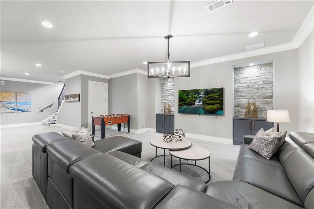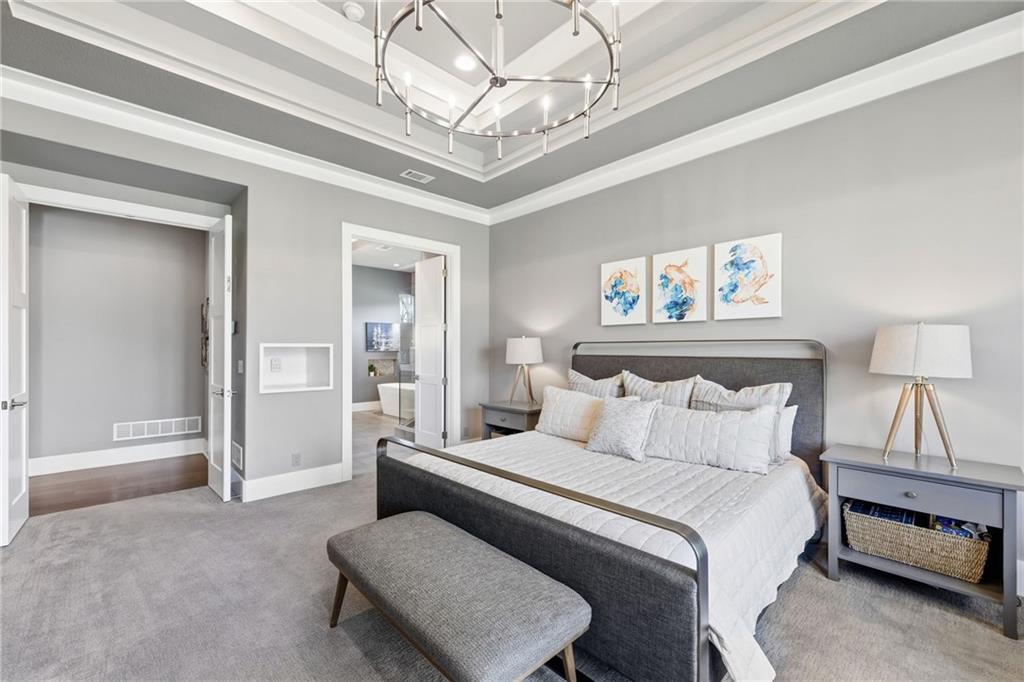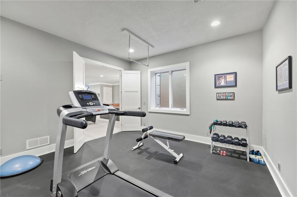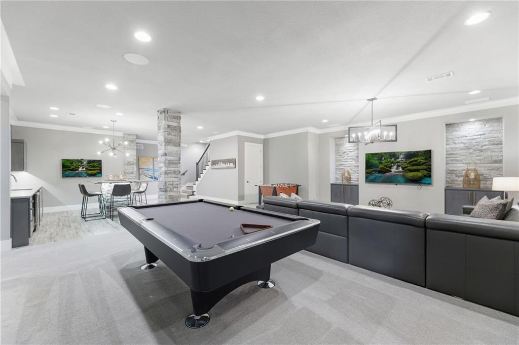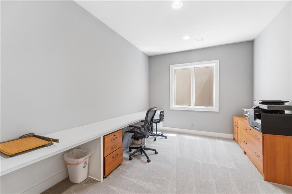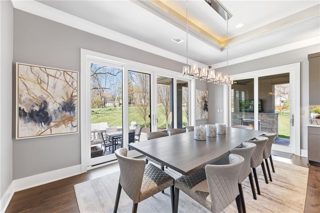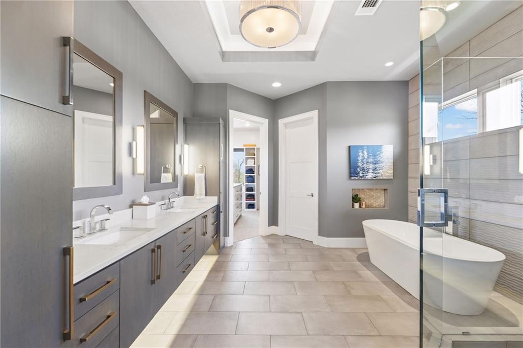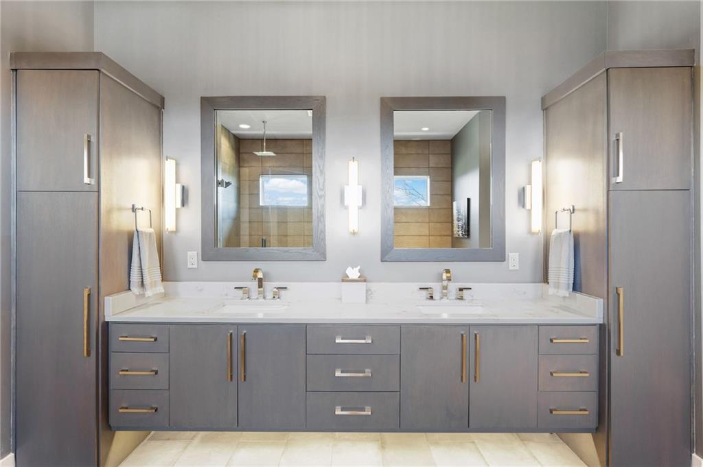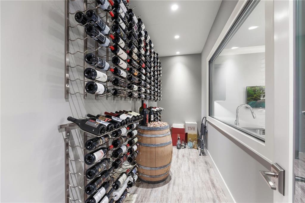Custom-built with every modern amenity in mind, this stunning reverse 1.5-story home sits on 1.85 acres. Featuring 4 bedrooms, 4 full baths & 1 half bath, this home is thoughtfully designed for both everyday living and entertaining. The main level showcases an expansive open floor plan with dining to accommodate 10+ guests, anchored by a massive island and a chef’s dream kitchen. The kitchen boasts custom cabinets & premium Wolf & Sub-Zero appliances including a gas range, second oven, and built-in wall coffee maker. A huge walk-in pantry, spacious hall mudroom, and main-level laundry add convenience, while the primary suite and a private guest bedroom with full bath complete the main floor. Elevated finishes such as 6-inch custom trim and impressive 8-foot solid wood doors on the main level. The primary suite is a true retreat, featuring a cozy fireplace and a spa-inspired bathroom with a large tiled shower, freestanding soaking tub, double vanity, and a show stopping walk-in closet designed to impress.The lower level is equally well-appointed with soaring 10-foot ceilings, offering a large media room, dedicated office, home gym, bar and a wine room perfect for entertaining. Two additional bedrooms, each with their own en-suite bath and tiled showers, provide comfort and privacy for guests or family. Perfectly positioned to capture breathtaking sunset views overlooking green space, the outdoor living areas are just as impressive. Enjoy the covered patio with fireplace, an expansive patio with built-in stone fire pit, and large garden beds; with ample room to add a pool and create your dream backyard oasis. Additional highlights included 2x6 framing, a striking stucco and natural stone exterior, oversized 4-car garage, dual HVAC systems, EV charger, and countless high-end finishes throughout.