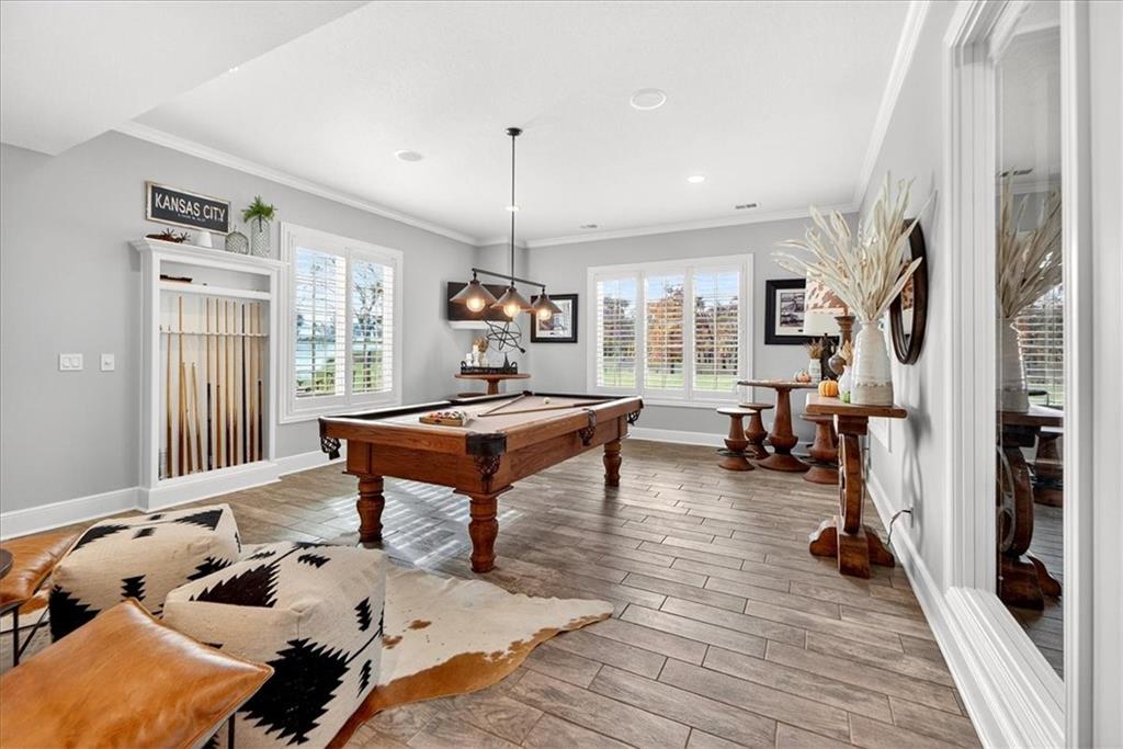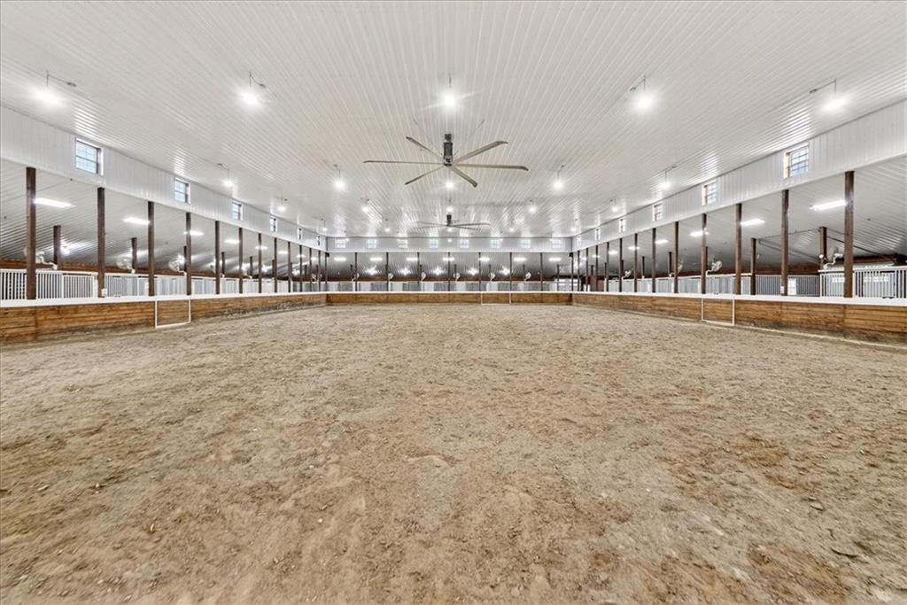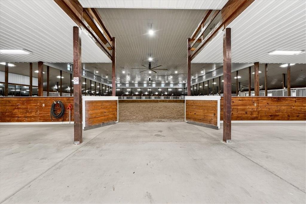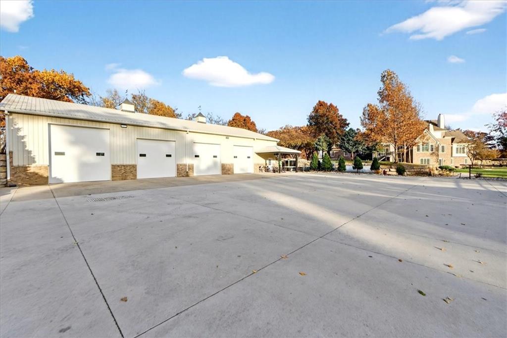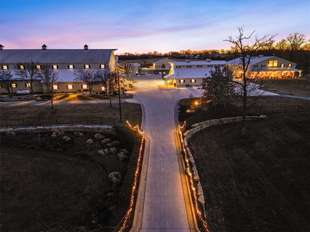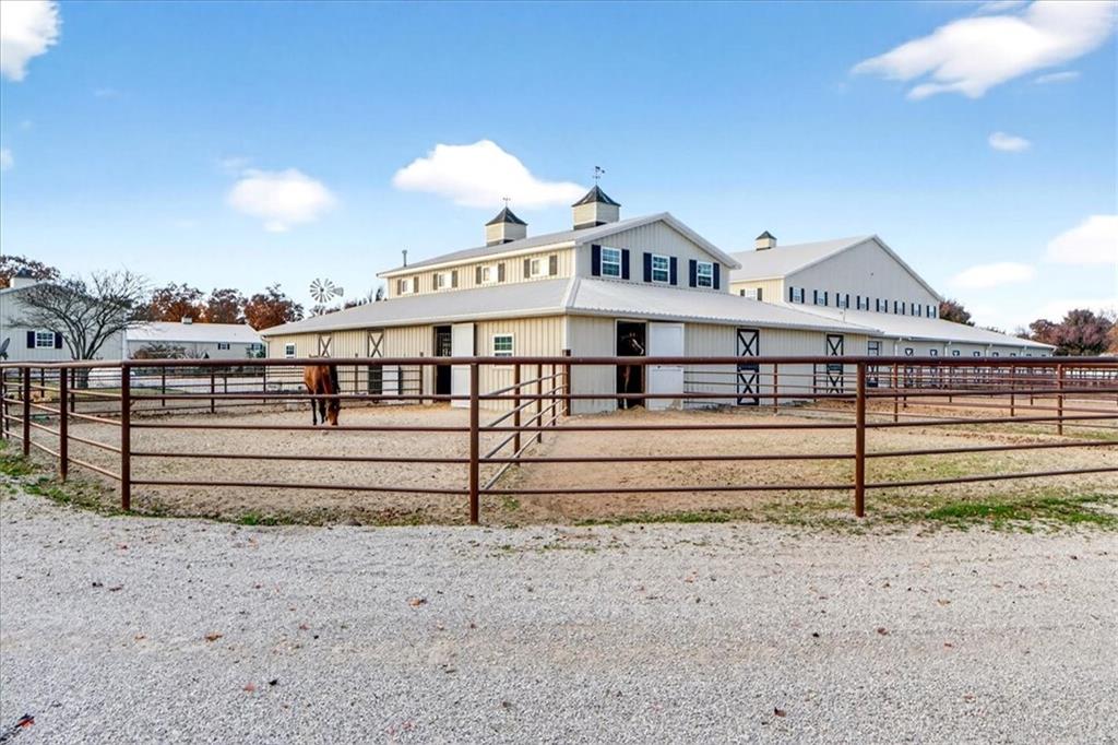 Beyond a private gate, the world quiets. A long drive carries you across rolling ground, revealing the estate not all at once, but deliberately, an arrival designed to signal that what lies ahead is rare, considered, and enduring. The main residence spans nearly 13,000 square feet, composed with a balance of architectural authority and everyday livability. Grand gathering rooms flow naturally into intimate retreats, creating a home that accommodates celebration as gracefully as solitude. Four fireplaces bring warmth and rhythm to the interiors. A private theater, multiple offices, and recreation spaces reflect a modern understanding of luxury, one where productivity, restoration, and entertainment coexist without compromise. Expansive windows draw the landscape inward, making light and horizon constant companions. Living extends outward to a screened porch and resort-style grounds, where a pool rests beneath open sky and uninterrupted views. A four-car garage supports both daily life and stewardship of the estate, reinforcing that every detail here serves both beauty and function. Beyond the main residence, the property unfolds into a fully realized compound. An equestrian arena anchors the landscape, accompanied by a viewing room with kitchenette, transforming utility into experience. Multiple barns, including those with sleeping quarters, a cattle barn, and a guest house with garage, offer versatility for equestrian pursuits, multigenerational living, or private events. Approximately 78 acres of gently contoured land with the opportunity to expand by an additional 110 - are shaped by two ponds, open pasture, and long sightlines that preserve privacy without isolation. Though quietly removed, the estate remains within reach of the Kansas City metro, a rare equilibrium of seclusion and accessibility. This is not simply a residence. It is a landscape composed for living- expansively, privately, and with permanence.