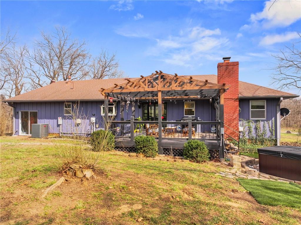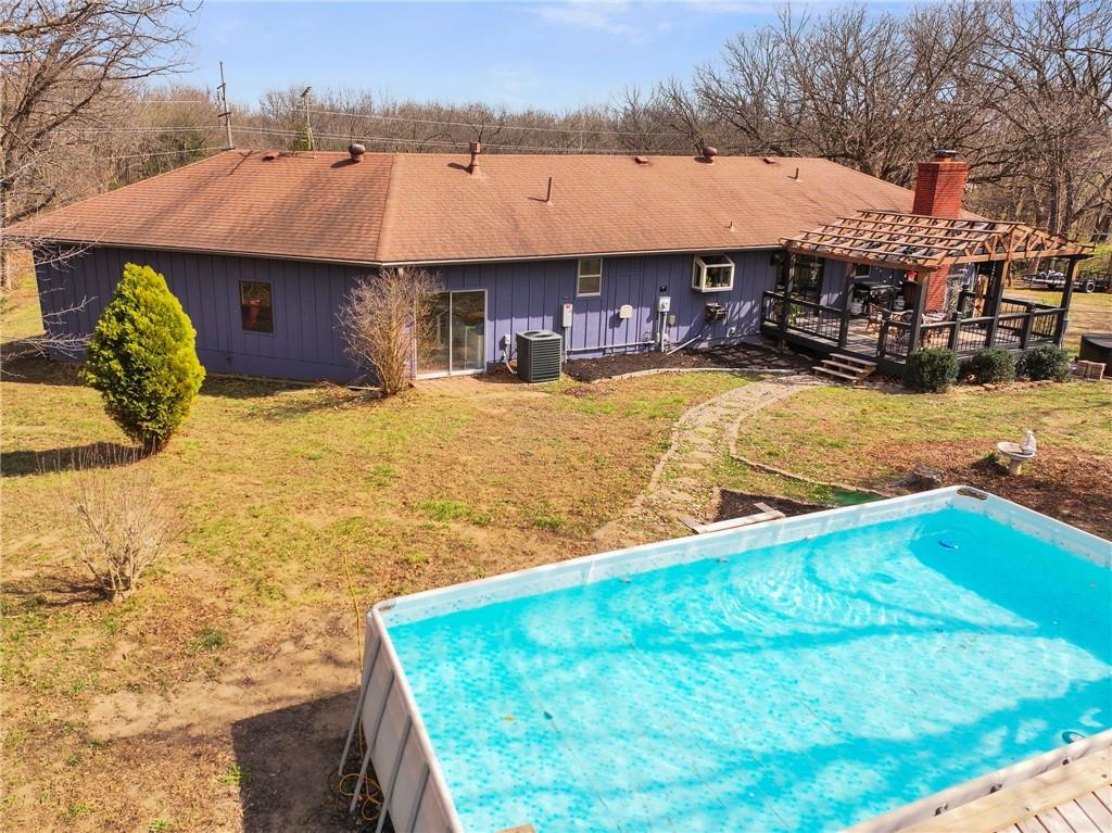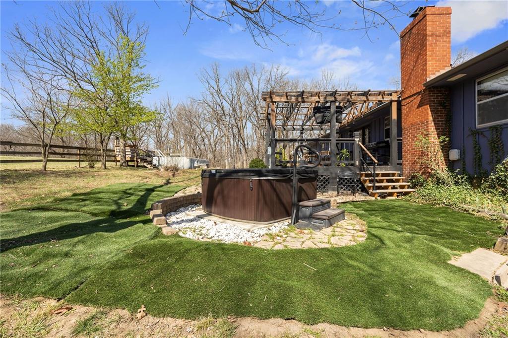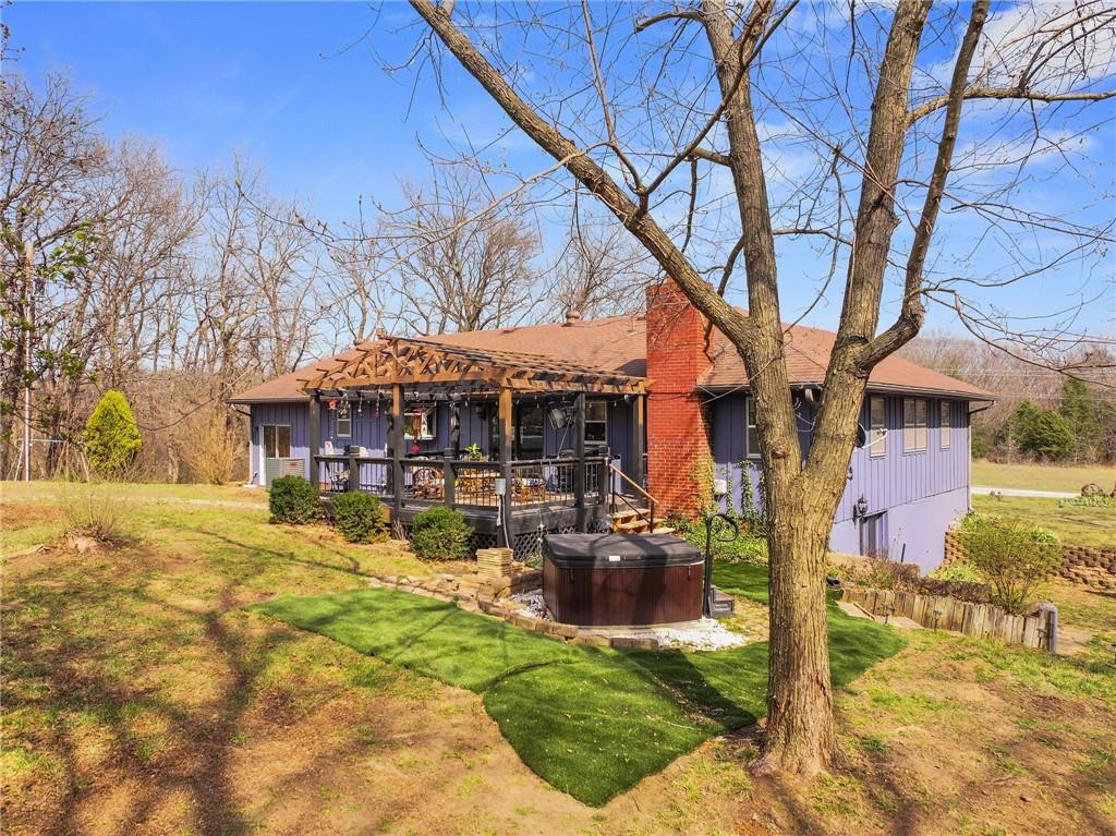 Solar panels, hot tub, pool, space, three wooded acres, and upgrades—this property brings it all. With $80,000 in paid-off solar panels, a hot tub, an above-ground pool with a custom-built deck, and an incredible setting surrounded by mature trees, open fields, and beautifully maintained landscaping, this is the kind of property that makes an impression from the very start. Located just 7 miles north of Warrensburg, it offers the perfect blend of convenience and peaceful country escape. Inside, the home is spacious, updated, and built for both everyday living and entertaining, featuring 4 large bedrooms, 3 full bathrooms, brand-new top-of-the-line appliances, a media room with a giant projector screen, and a full bar downstairs. The oversized garage has room for 2 vehicles plus tools, freezers, and extra storage, and there is an additional shed on the property as well. The paid-off solar system adds tremendous long-term value, with energy savings that can make utility bills nearly nonexistent during sunny months and dramatically lower in the winter. Whether you are looking for a private retreat, a home built for hosting, or a beautifully updated property with standout amenities close to town and Whiteman Air Force Base, this one checks every box.