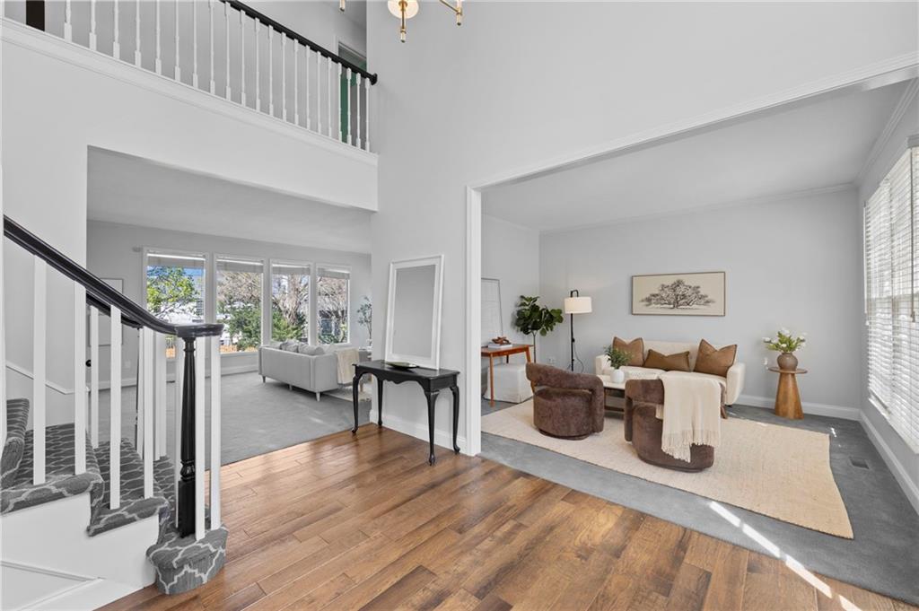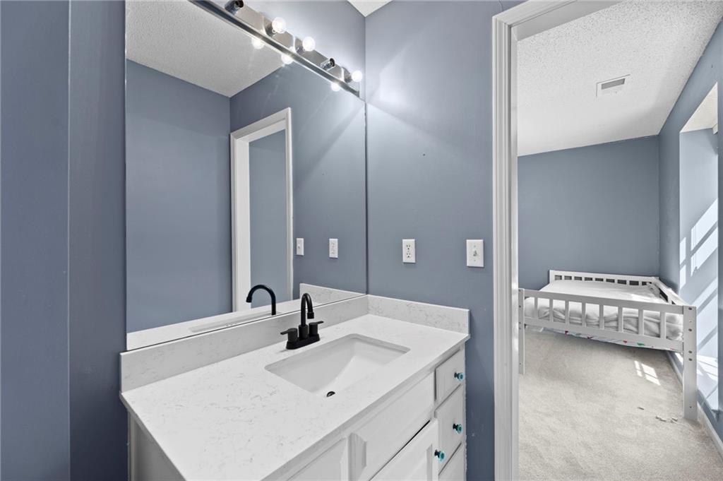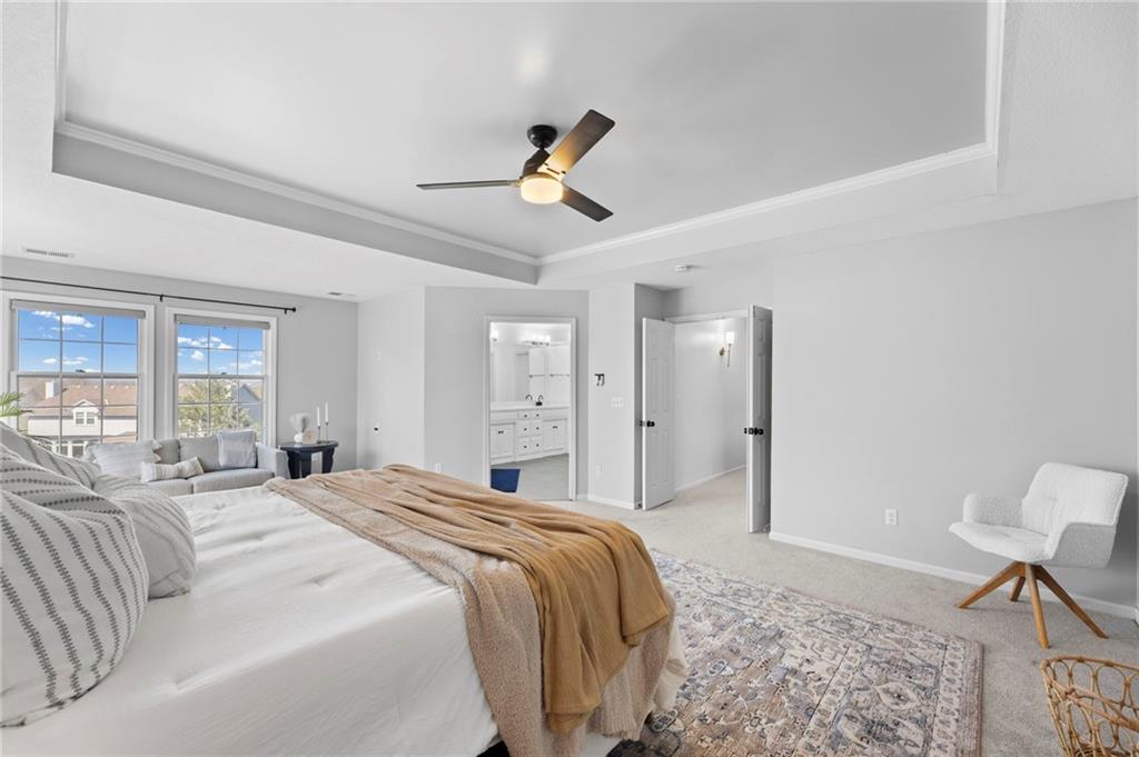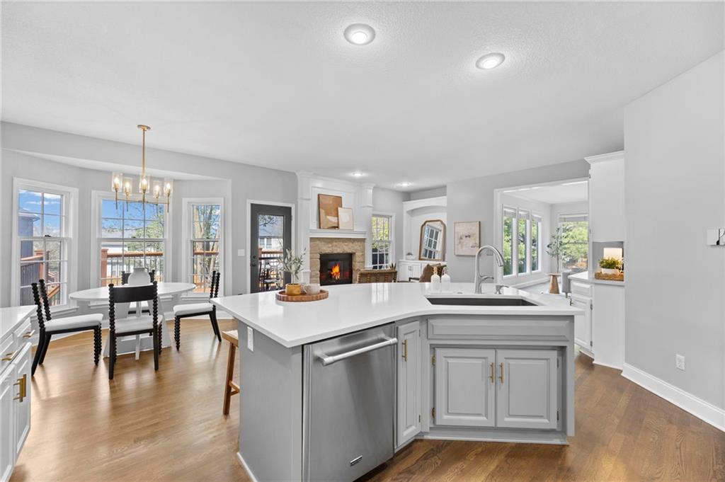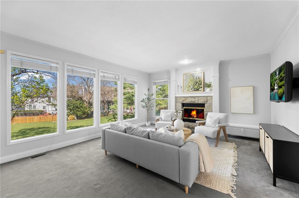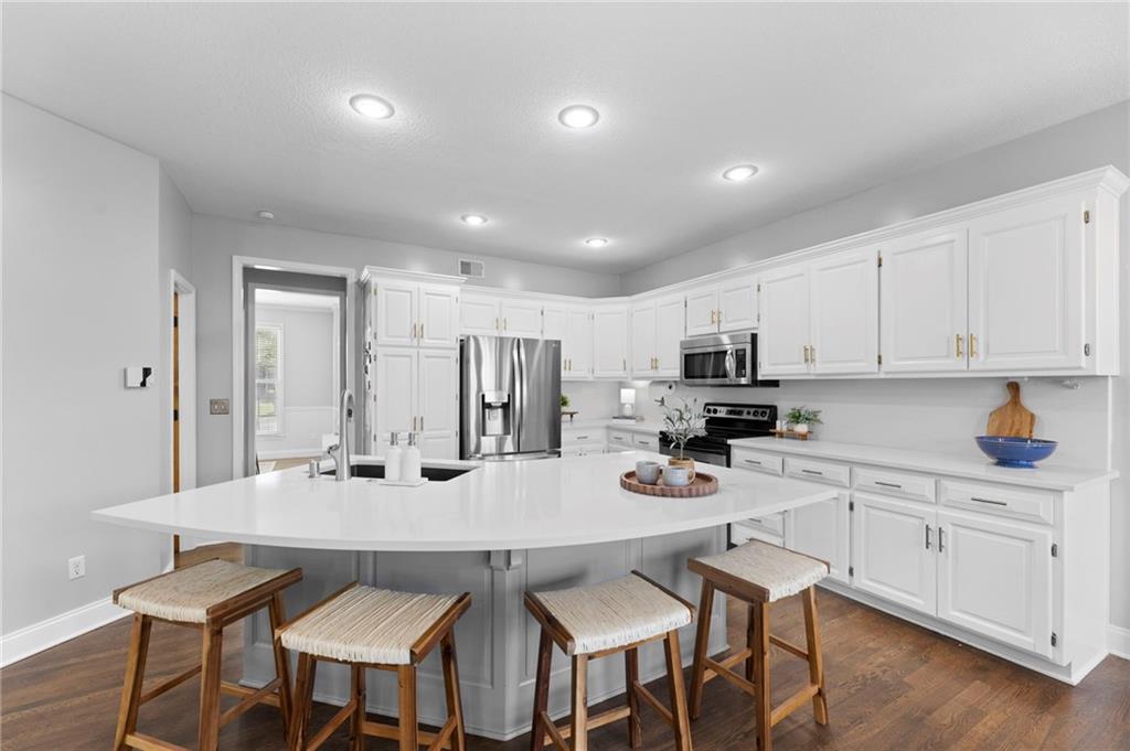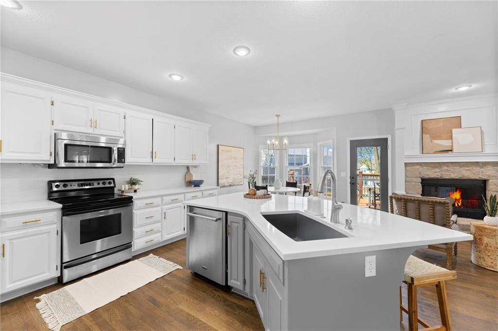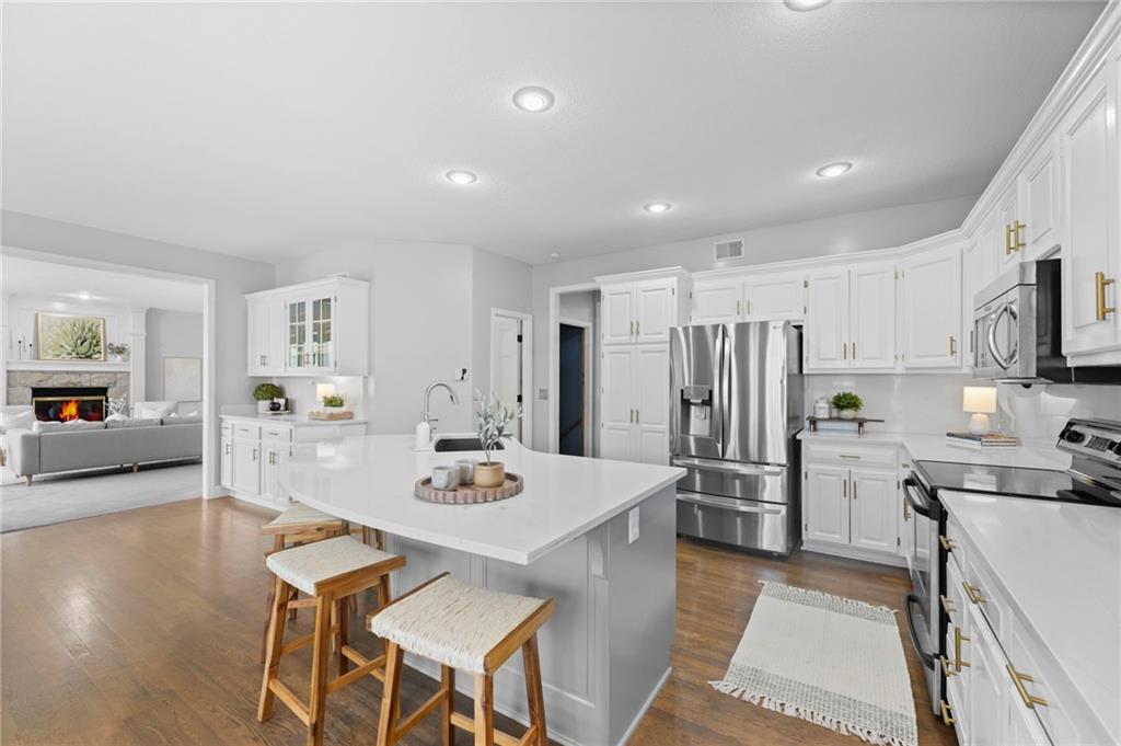 With over 4,200 sq. ft. of living space and numerous recent updates, this home has it all! Located on a quiet cul-de-sac, you’ll enjoy a tandem 3-car garage, new roof, new HVAC, and a huge backyard. Inside, the main floor has been freshly painted & offers a large private office, a bright and welcoming kitchen with quartz countertops, freshly painted cabinets and stainless-steel appliances. Gather in the cozy hearth room or the spacious living room, perfect for entertaining or relaxing. Upstairs, the primary suite features a generous sitting area and a beautifully updated bathroom with quartz countertops, newer tile, and a walk-in shower. You’ll also find a convenient second-floor laundry room and three spacious secondary bedrooms, one with an en suite bath and the others connected by a dual-access bathroom. All bathrooms include quartz countertops and freshly painted cabinetry. The finished daylight lower level provides even more room to spread out, featuring a large recreation area, a 5th room ideal as an office or home gym, and a 6th non-conforming bedroom. Step outside to your private backyard oasis with a deck for grilling, dining, and relaxing. Wellington Park is a vibrant community offering a clubhouse, swimming pool, walking trails, and highly rated Blue Valley schools nearby.