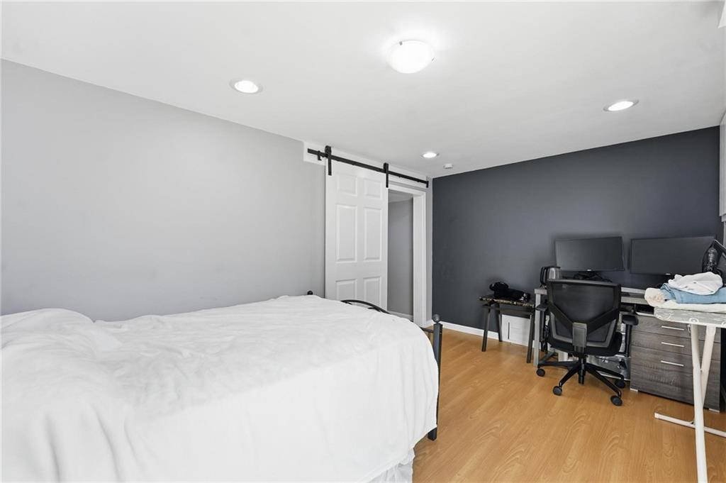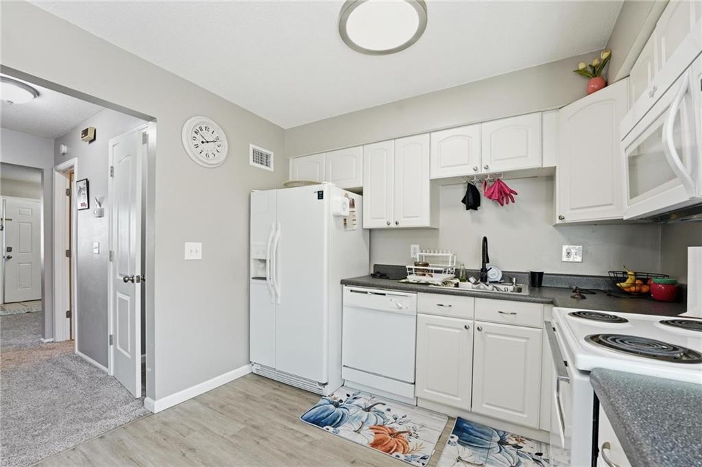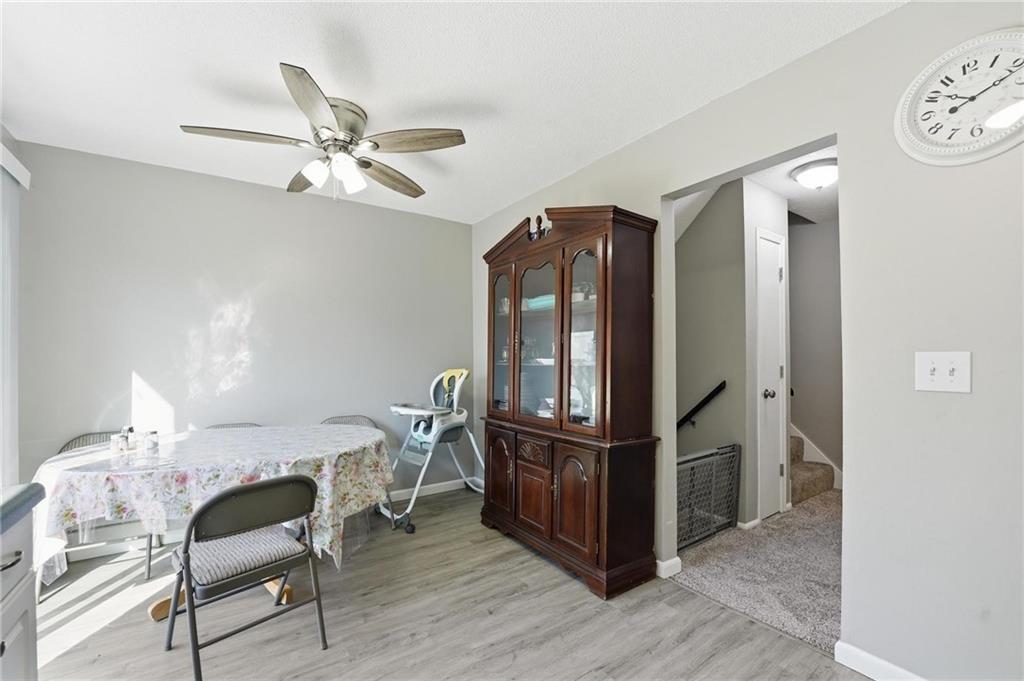 Move-in ready half duplex offering comfortable living with thoughtful updates throughout. The bright kitchen features white painted cabinetry, ample workspace, and an eat-in dining area that opens directly to the deck, creating a great space for morning coffee, outdoor dining, or relaxing evenings. Fresh, updated paint and painted white trim throughout give the home a clean, modern feel. Stylish barn doors add character and a touch of farmhouse charm while maximizing space and functionality. Step outside to enjoy the fenced backyard featuring both a patio and a deck, providing multiple areas for entertaining, grilling, or simply unwinding outdoors. With its move-in ready condition, inviting updates, and great indoor-outdoor living spaces, this home offers both comfort and convenience.