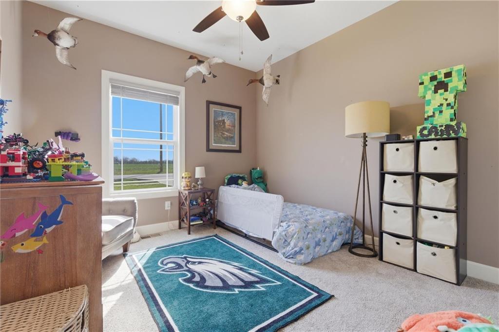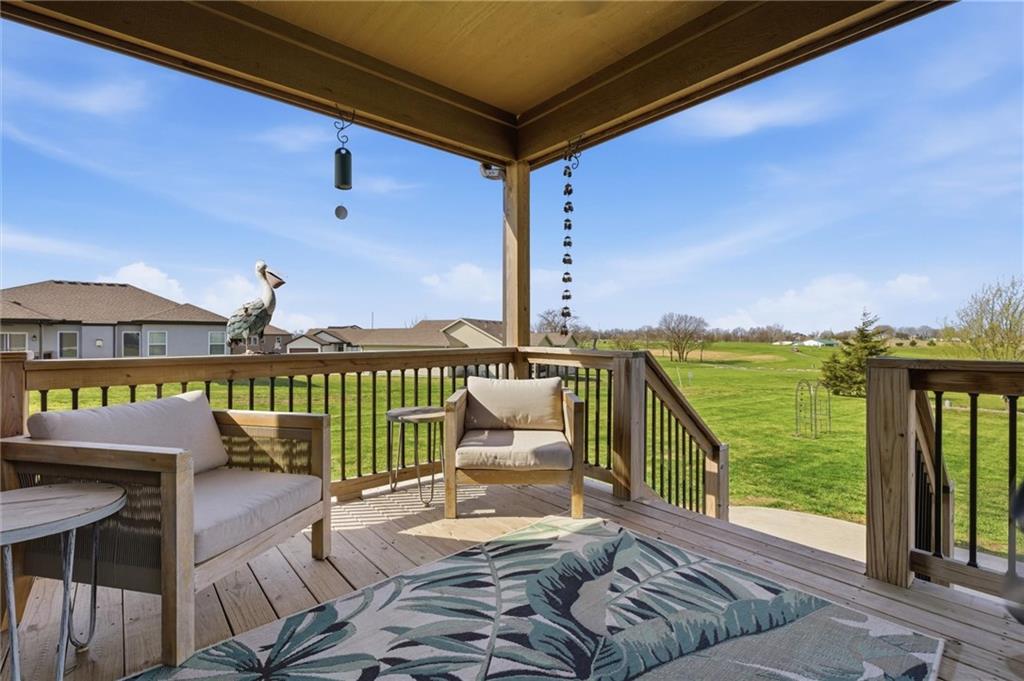 Enjoy golf course living in this well-maintained ranch home backing to the 18th hole at Hidden Valley Golf Course in Lawson! Built in 2018, this 3-bedroom, 2-bathroom home offers true main-level living with an open and airy layout with tall ceilings in the living room. The spacious primary bedroom features a private bathroom and walk-in closet. Walk out to the back deck that steps down to the large patio—perfect for relaxing or entertaining while taking in the beautiful views of the golf course. Deep backyard and very well cared for landscaping beds. Concrete storm/safe room in garage. Located in the desirable Lawson School District with quick access to Hwy 69, this home offers a great blend of comfort, convenience, and scenery.