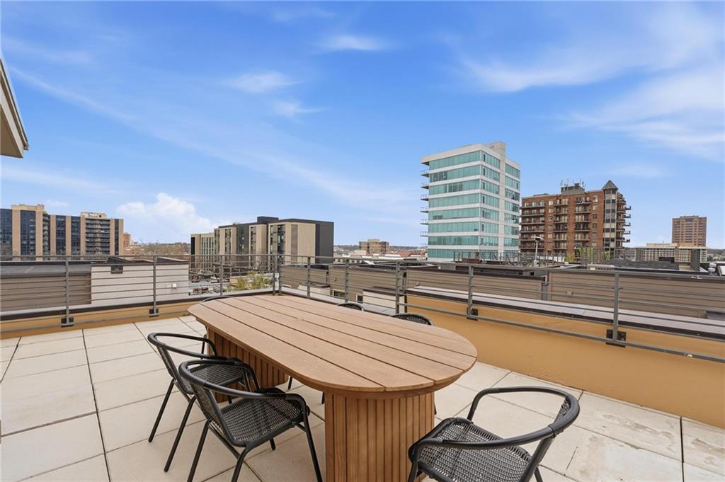Experience the ultimate urban lifestyle in this updated 3-story corner townhome, perfectly situated just steps from the world-class shopping and dining of the Kansas City Plaza! Spanning over 2,000 square feet, this residence blends modern luxury with functional design. Large 2-car garage with epoxy floors and built in storage cabinets! This home has been refreshed, featuring brand-new LVP flooring throughout, new appliances, plush new carpet on the stairs, and a crisp, modern interior paint palette. The heart of the home features an open-concept kitchen and living area bathed in natural light with gas fireplace and balcony overlooking Washington Street. The chef-ready kitchen boasts new stainless steel appliances, sleek cabinetry, granite countertops, and a spacious breakfast bar. Whether you're hosting a dinner party in the formal dining area or relaxing by the stone-accented fireplace, this level is designed for seamless living. The third level is a private retreat - The bedroom level offers convenience and comfort. The spacious Master Suite features a true spa-like experience with a large walk-in shower, large jacuzzi tub, a double granite vanity, and elegant finishes. You’ll also find the second bedroom, another full bathroom, and a brand-new washer and dryer set located outside both bedrooms. Ascend to the top floor to discover your private oasis. The expansive Sky Deck offers breathtaking views of the Plaza skyline. This ultimate indoor/outdoor entertainment space comes fully equipped with a built-in wet bar, wine cooler, ice maker, granite countertops, and a convenient half-bath, making it the perfect spot for sunset cocktails or fire pit gatherings. Top Sky Deck level could be used as entertainment or office area!