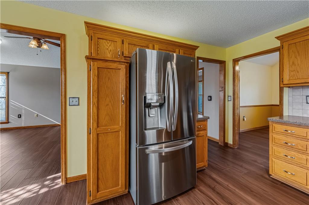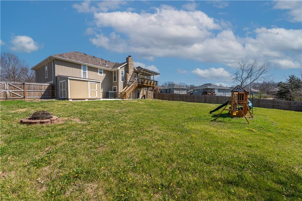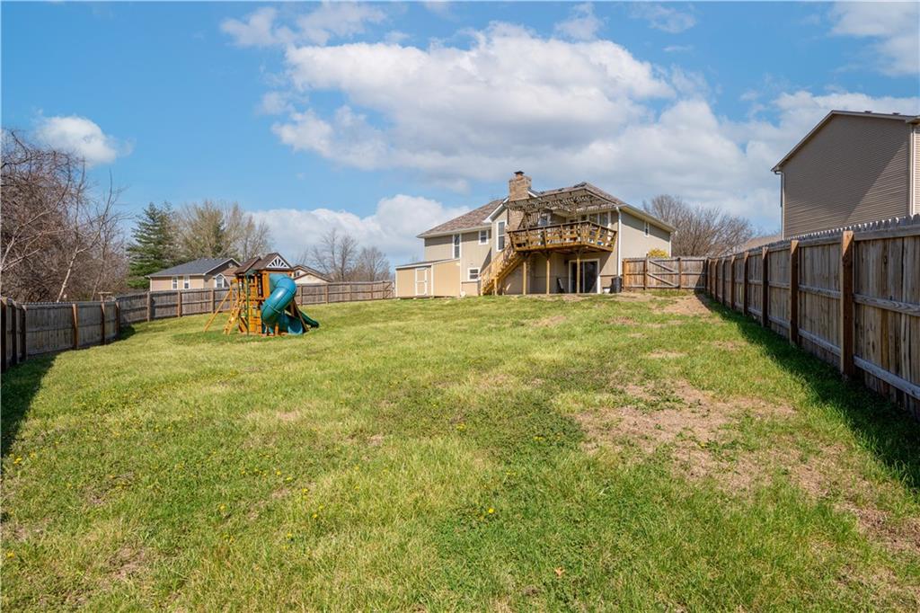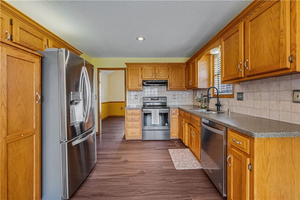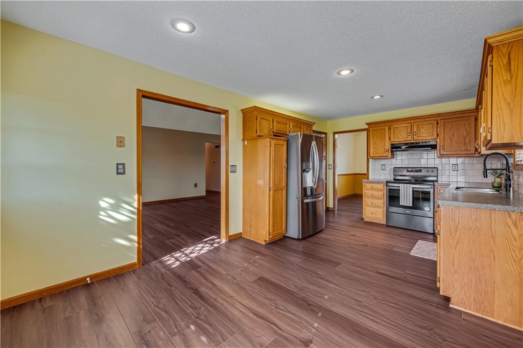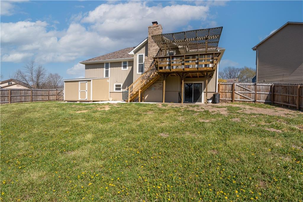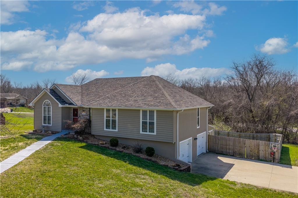 Welcome home! This beautiful home is ready for new memories! Situated on a large corner lot of a cul de sac, within a few minutes of shopping, restaurants, and 50 Hwy for commuting to Whiteman AFB or Kansas City. New wood-look LVP (sellers installed in 2025) runs throughout the main level spaces. The spacious Living Room showcases tall ceilings and a gas fireplace perfect for those chilly winter days. Off the living room is the Kitchen, Breakfast nook and a full Dining Room with lots of natural sunlight. The inviting Kitchen has ample wood cabinets with pantry, solid surface countertops, tile backsplash and stainless-steel appliances that all stay. The main level includes 2 secondary Bedrooms, hallway Bathroom with Laundry, the Primary Bedroom with 2 closets and en-suite Bathroom. Downstairs you will find the Family Room which could be used as second Primary Bedroom with a spacious walk-in closet, an en-suite Bathroom with double sinks and beautifully tiled shower with two shower heads. Head out the patio doors to enjoy time outdoors in the large, privacy fenced back yard (swing set can stay). There is an additional non-conforming room in the basement that would be perfect for an office, 5th bedroom, playroom, etc. You will appreciate the additional storage space in the garage as well as the EV charging station, built-in shelves and workspace. The back deck has new stairs leading down to the newly poured patio extension and storage shed, all added by sellers in 2024. Roof, gutters, and downspouts are just 2 years old! Don't miss out on this wonderful opportunity!