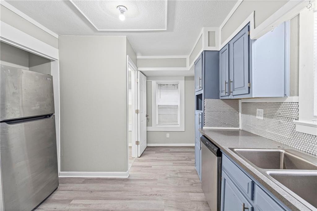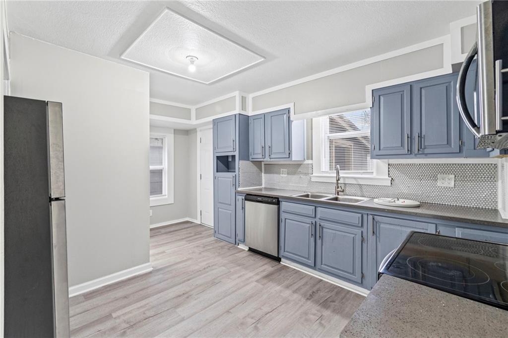 Step into the character and warmth of this 1920 single-family home, thoughtfully updated for modern living while keeping its timeless appeal. A welcoming front porch sets the tone, leading you into spacious rooms with vinyl plank flooring and plenty of natural light. This two-story home offers 4 bedrooms and 1 beautifully remodeled bathroom, with a layout that gives you options. The entire second floor can function as a generous primary suite or be divided into two bedrooms. One of the upstairs rooms is perfectly positioned to become a dream walk-in closet or even an additional bathroom—an excellent opportunity to add value and convenience. The remodeled kitchen blends classic charm with modern function, offering updated finishes and an efficient layout. Outside, the large backyard provides a quiet retreat away from the busy street out front, with alley access that adds flexibility for parking, storage, or future projects. With spacious rooms, thoughtful updates, and a yard that feels like its own private escape, this home delivers historic character with modern comfort and room to grow.