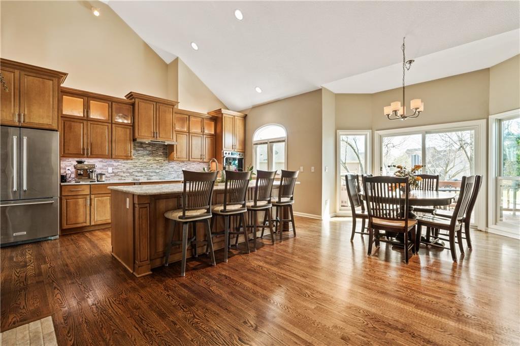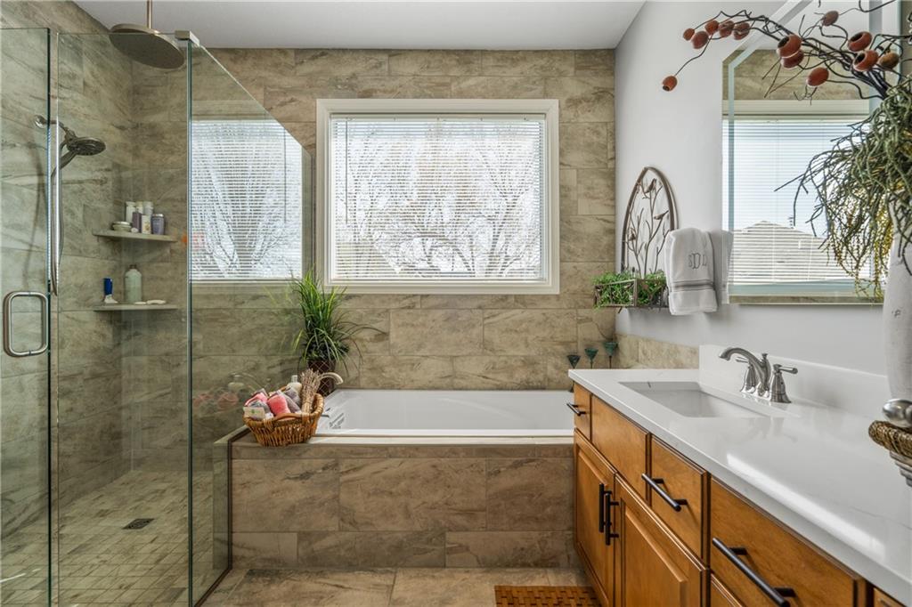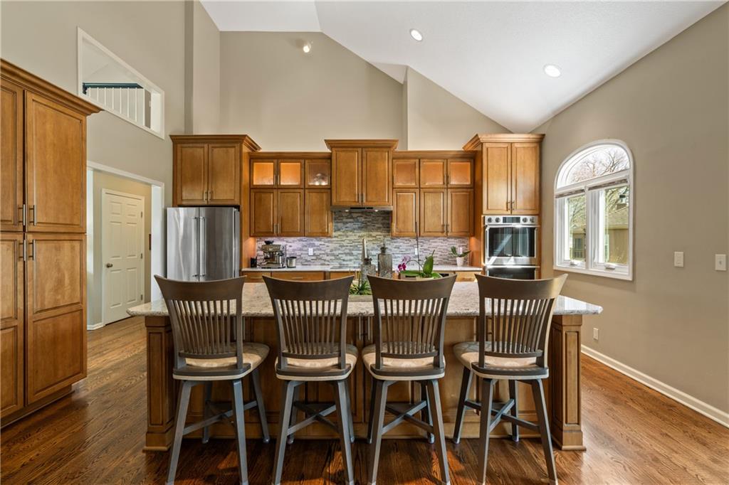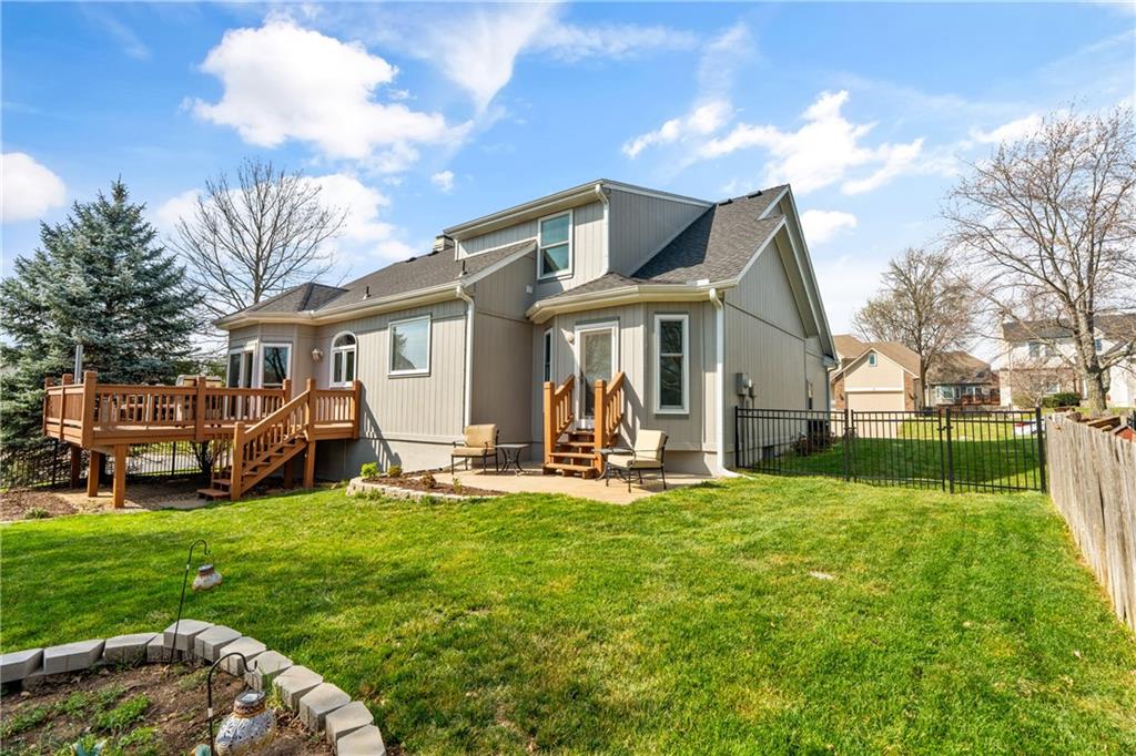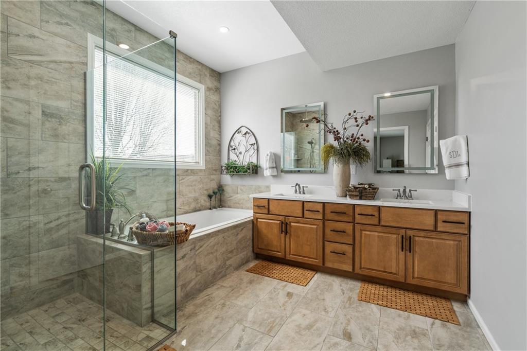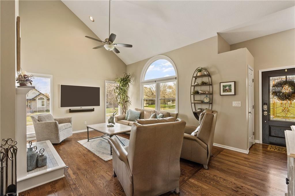 Welcome to this beautifully updated home offering the perfect blend of style, comfort, and convenient main level living. The kitchen is a true standout, featuring custom cabinetry with pantry, Cambria quartz countertops, tile backsplash, and an impressive appliance package including double ovens, 36” glass cooktop, vented hood, built-in microwave, refrigerator, dishwasher, and under counter ice maker. Thoughtful LED lighting adds both warmth and practicality. Designed with ease of living in mind, the home features quality upgrades throughout including Andersen windows and doors, a new front entry door, and beautifully refinished hardwood floors extending into the living room and primary suite. The primary suite and laundry on the main level provide everyday convenience, while the fully remodeled primary bath offers a zero-entry walk-in shower, overhead rain feature, updated fixtures, modern tile work, and illuminated mirror creating a comfortable, spa-like retreat. The other secondary bathrooms have also been updated with fresh finishes and fixtures. Outdoor improvements include new fence, updated landscaping, and a full irrigation system with Wi-Fi smart controller. The professionally installed permanent soffit lighting offers year-round accent lighting and customizable holiday displays eliminating the need for ladders or seasonal installation. Additional highlights include a Wi-Fi enabled whole-house water shutoff system and a newer roof (2023). Located in the highly sought-after Raintree Lake community, you’ll enjoy private lake access, community pool, walking trails, and clubhouses offering a lifestyle that’s as enjoyable as the home itself.