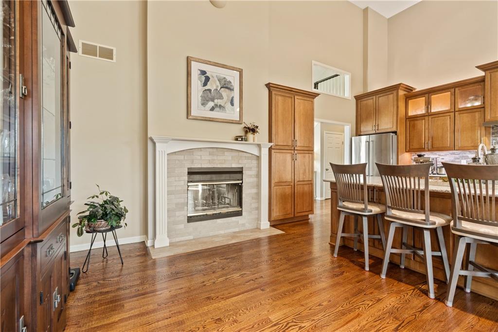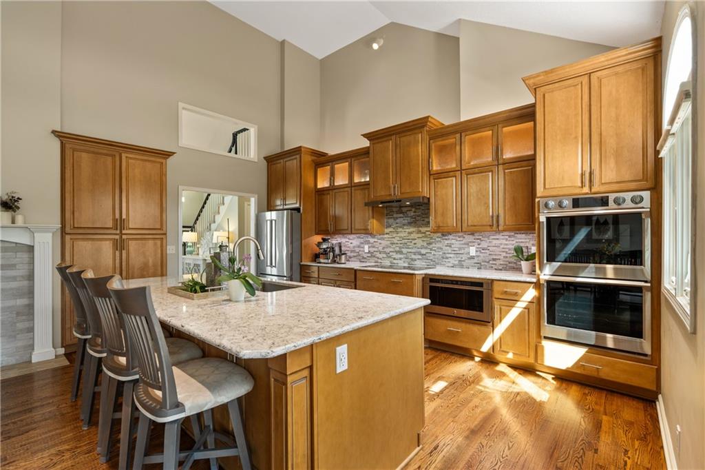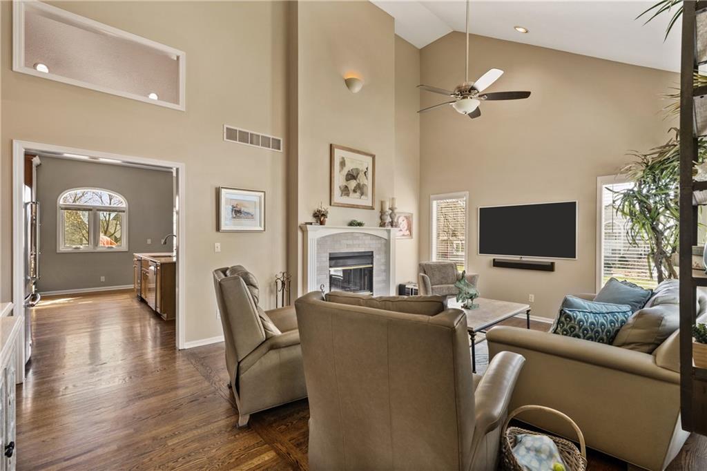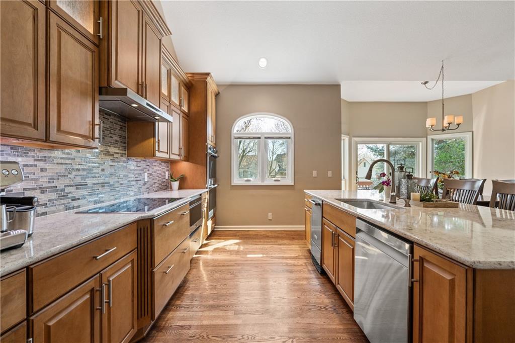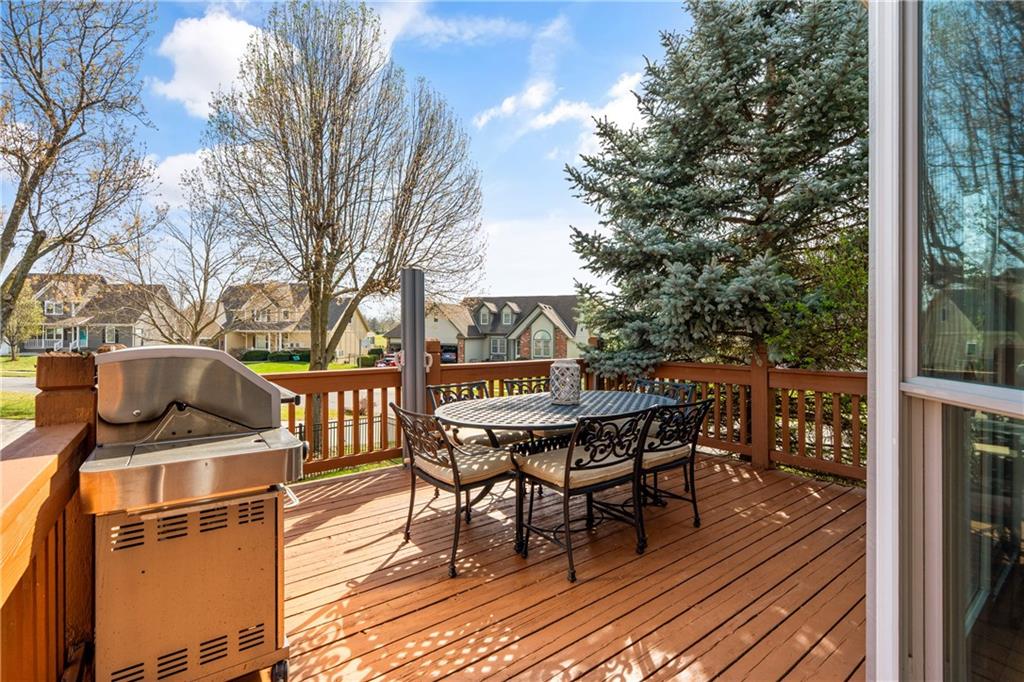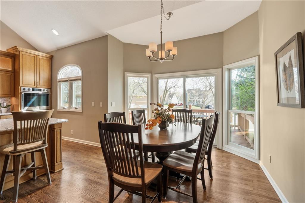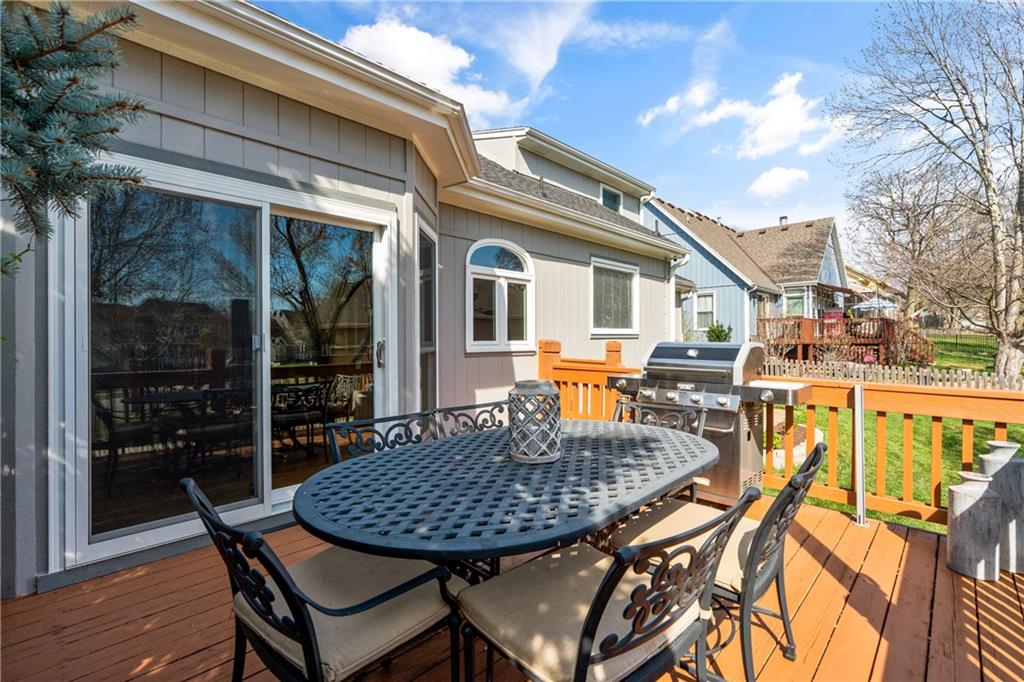Welcome to this beautifully updated home offering the perfect blend of style, comfort, and convenient main level living. The kitchen is a true standout, featuring custom cabinetry with pantry, Cambria quartz countertops, tile backsplash, and an impressive appliance package including double ovens, 36” glass cooktop, vented hood, built-in microwave, refrigerator, dishwasher, and under counter ice maker. Thoughtful LED lighting adds both warmth and practicality. Designed with ease of living in mind, the home features quality upgrades throughout including Andersen windows and doors, a new front entry door, and beautifully refinished hardwood floors extending into the living room and primary suite. The primary suite and laundry on the main level provide everyday convenience, while the fully remodeled primary bath offers a zero-entry walk-in shower, overhead rain feature, updated fixtures, modern tile work, and illuminated mirror creating a comfortable, spa-like retreat. The other secondary bathrooms have also been updated with fresh finishes and fixtures. Outdoor improvements include new fence, updated landscaping, and a full irrigation system with Wi-Fi smart controller. The professionally installed permanent soffit lighting offers year-round accent lighting and customizable holiday displays eliminating the need for ladders or seasonal installation. Additional highlights include a Wi-Fi enabled whole-house water shutoff system and a newer roof (2023). Located in the highly sought-after Raintree Lake community, you’ll enjoy private lake access, community pool, walking trails, and clubhouses offering a lifestyle that’s as enjoyable as the home itself.