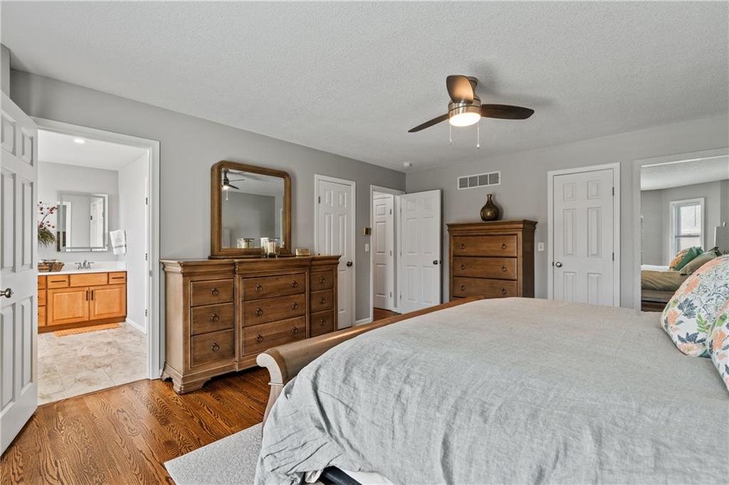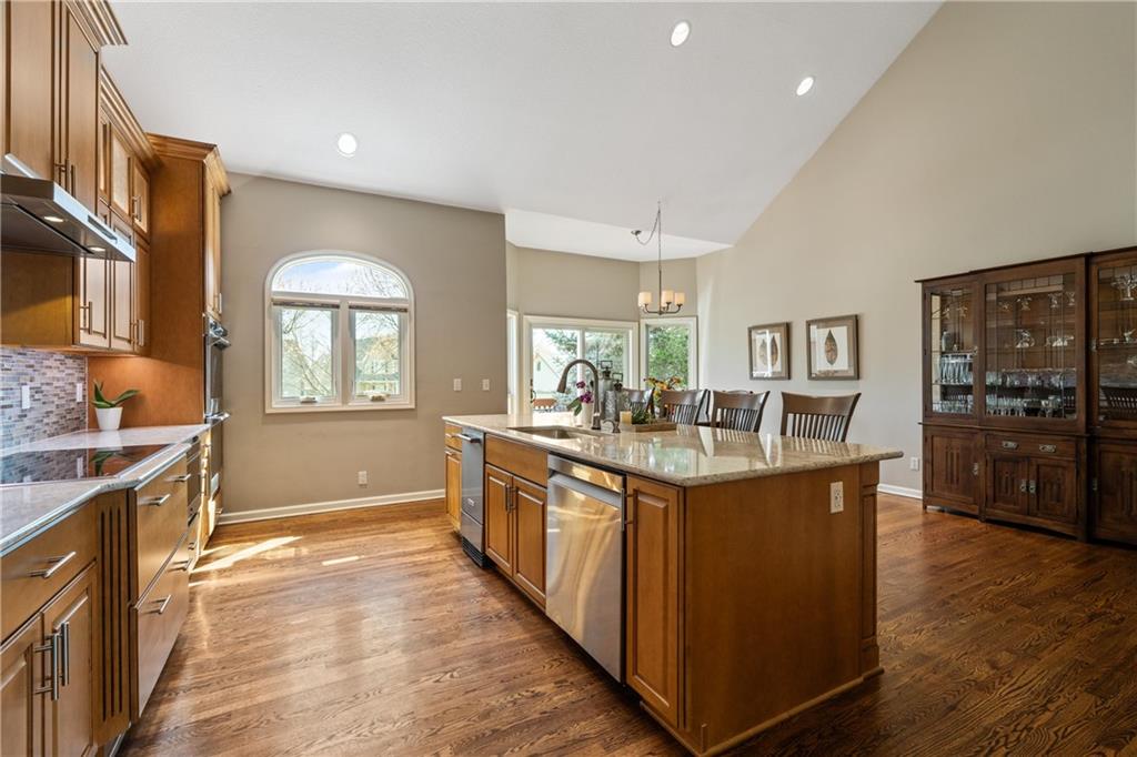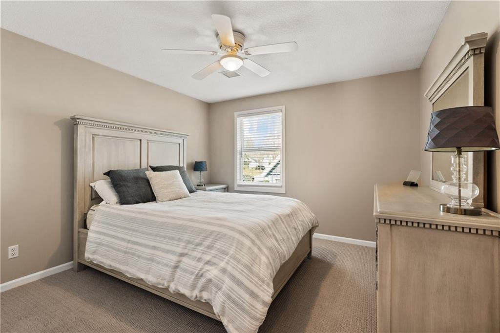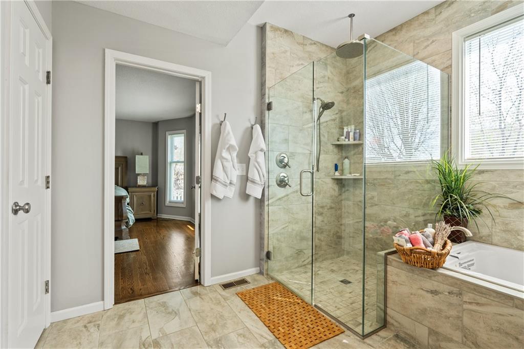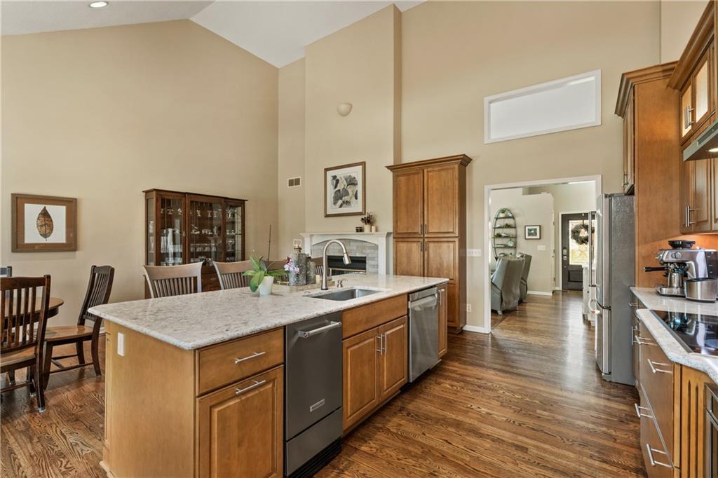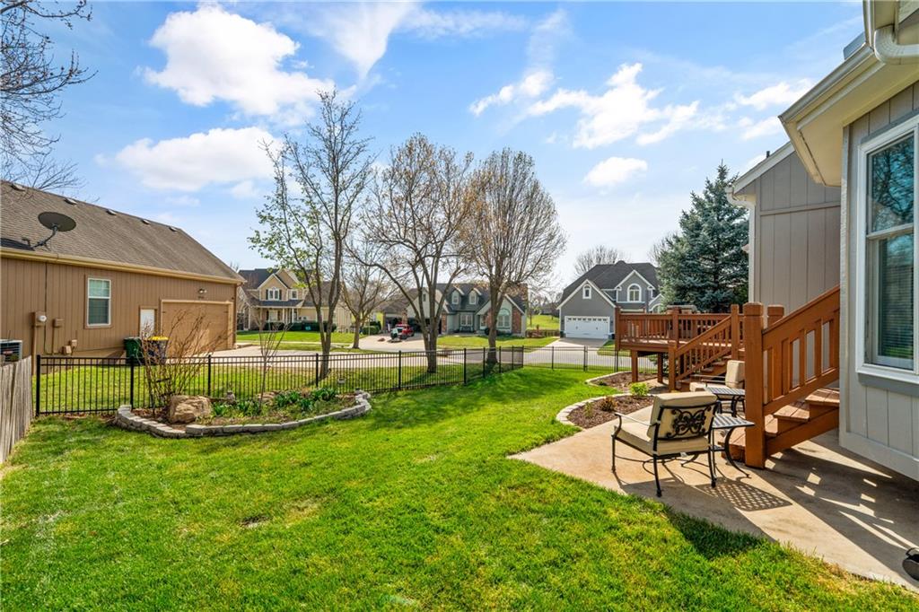 Welcome to this beautifully updated home offering the perfect blend of style, comfort, and convenient main level living. The kitchen is a true standout, featuring custom cabinetry with pantry, Cambria quartz countertops, tile backsplash, and an impressive appliance package including double ovens, 36” glass cooktop, vented hood, built-in microwave, refrigerator, dishwasher, and under counter ice maker. Thoughtful LED lighting adds both warmth and practicality. Designed with ease of living in mind, the home features quality upgrades throughout including Andersen windows and doors, a new front entry door, and beautifully refinished hardwood floors extending into the living room and primary suite. The primary suite and laundry on the main level provide everyday convenience, while the fully remodeled primary bath offers a zero-entry walk-in shower, overhead rain feature, updated fixtures, modern tile work, and illuminated mirror creating a comfortable, spa-like retreat. The other secondary bathrooms have also been updated with fresh finishes and fixtures. Outdoor improvements include new fence, updated landscaping, and a full irrigation system with Wi-Fi smart controller. The professionally installed permanent soffit lighting offers year-round accent lighting and customizable holiday displays eliminating the need for ladders or seasonal installation. Additional highlights include a Wi-Fi enabled whole-house water shutoff system and a newer roof (2023). Located in the highly sought-after Raintree Lake community, you’ll enjoy private lake access, community pool, walking trails, and clubhouses offering a lifestyle that’s as enjoyable as the home itself.