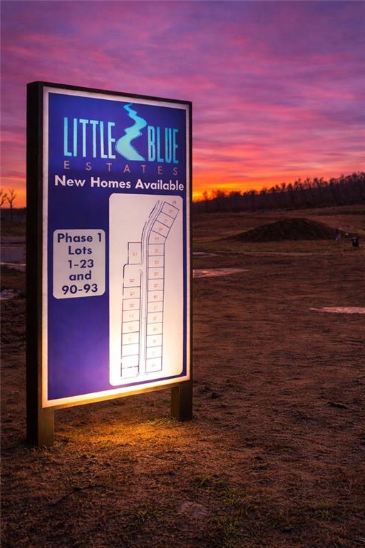 Welcome to this stunning custom home in Little Blue Estates, where modern design meets everyday functionality. Situated on a spacious corner lot, the home offers striking curb appeal w/ board & batten siding, stone accents, a 3 car side entry design for generous parking, plus a welcoming covered entry. Zero entry design makes this true ranch home easily accessible -- no steps throughout main level & wide door frames for easy maneuverability. Inside you'll find an open-concept layout filled w/ natural light, highlighted by soaring ceilings, rich hardwood floors & a dramatic floor-to-ceiling stone fireplace. The living area flows seamlessly into a beautifully designed kitchen w/large center island, custom cabinets, designer lighting & walk-in pantry. The dining area is surrounded by expansive windows, offering peaceful views & lots of natural light. The thoughtfully designed layout provides privacy w/a spacious primary suite that serves as a true retreat, complete w/spa-like bathroom featuring a walk-in tiled shower, dual vanities & large walk-in closet w/ custom shelves. On the lower level, you'll find a spacious rec room with wet bar -- perfect for hanging out on game day or just enjoying peaceful relaxing nights at home. Two large additional bedrooms, a full bath, an office & a DARLING play space tucked under the staircase with charming Dutch door round out the lower level. Back upstairs, extend your entertaining space on the covered patio. Conveniently located near major highways, shopping & dining, this home combines comfort, style & accessibility, with every detail of this home reflecting quality craftsmanship & intentional design. Construction on the community pool will commence during the 3rd phase of development. Within walking distance to Little Blue Elementary School, plus Independence taxes & utilities! This home features more than 48k worth of upgrades. Plan can be reproduced for a lower price depending on chosen finishes. Truly a must see!