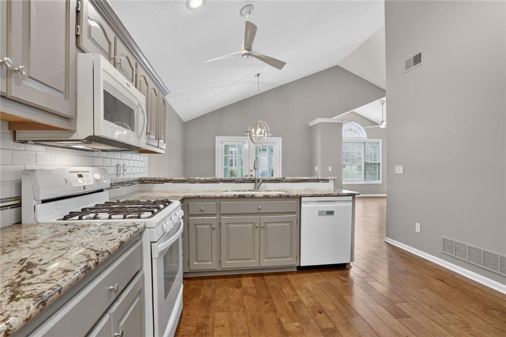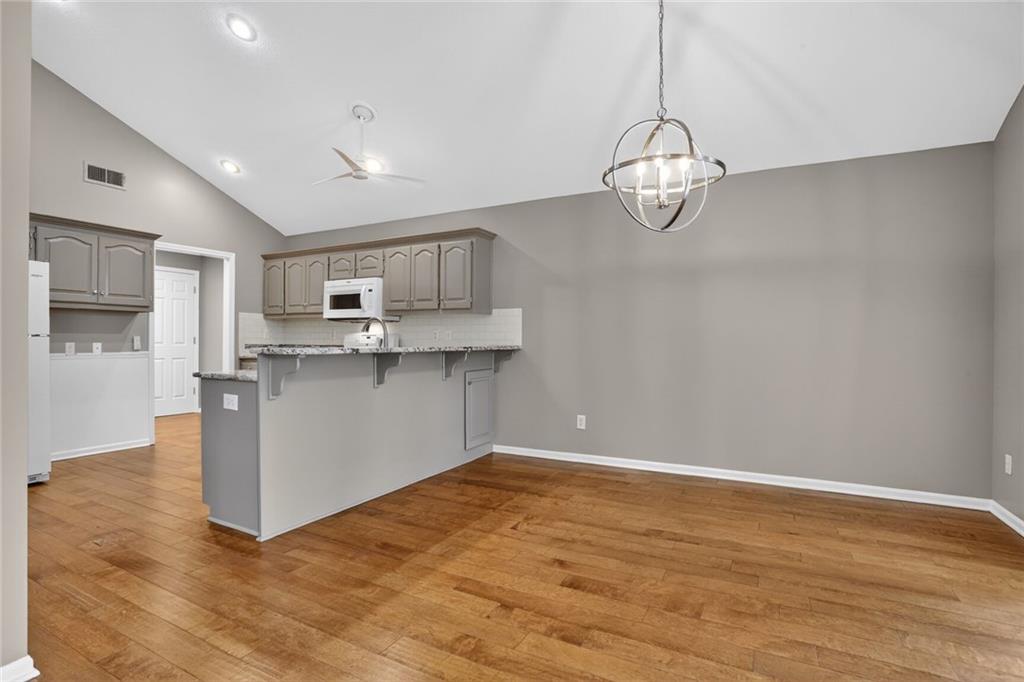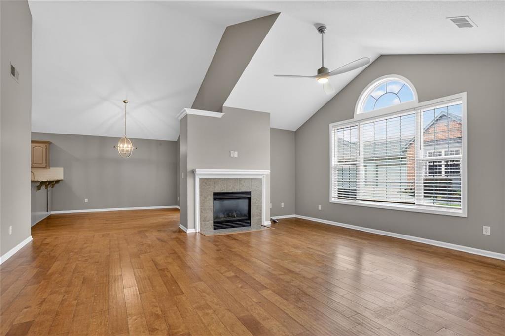 Welcome to this elegant and well-maintained villa offering the ease of true one-level living in a beautifully landscaped, maintenance-provided community. This updated unit features gorgeous hardwood floors throughout and brand new interior paint, creating a fresh and inviting feel from the moment you step inside. The expansive primary suite includes an en suite bathroom with a walk-in shower, lovely vanity, and a spacious walk-in closet. A second bedroom—located just off the main living area—offers flexibility as a guest room, office, or hobby space. The vaulted living room is warm and inviting with its cozy fireplace and large windows that bring in abundant natural light. The kitchen provides excellent cabinet storage, generous counter space, and a convenient eat-in bar area perfect for everyday dining. Adjacent to the kitchen, the fully enclosed sunroom offers a peaceful spot for morning coffee, reading, or simply relaxing indoors with outdoor views. Additional features include a large 2-car garage and a brand-new roof for added peace of mind. Brand new roof and concrete in front of the garage door and porch. The community offers attractive amenities such as a clubhouse and pool, all set within a lovely, tree-filled neighborhood maintained for you. Enjoy comfort, convenience, and low-maintenance living in this welcoming villa—ready for you to move right in.