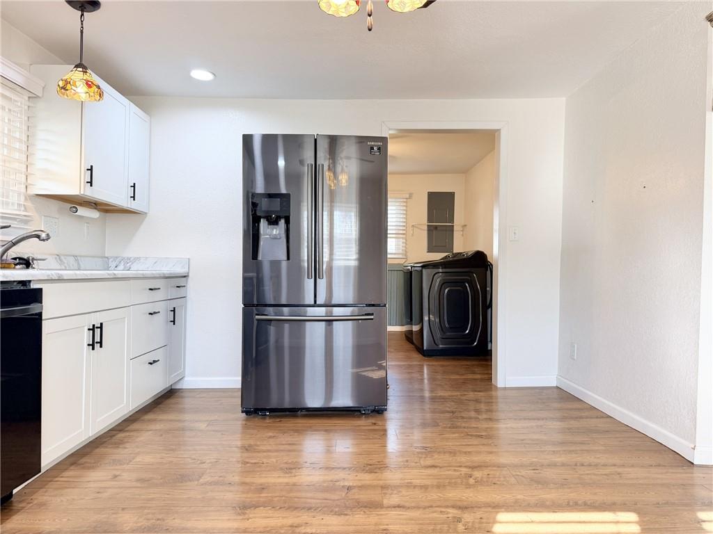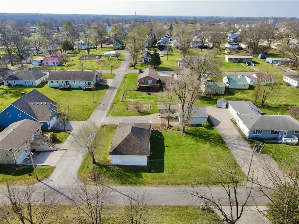 Charming, well-maintained 3 bedroom, 2 full bathroom bungalow offering 1,274 sq ft of comfortable living space and packed with features! This move-in ready home welcomes you with a spacious living room highlighted by a beautiful bay window that fills the space with natural light. The newer eat-in kitchen features crisp white cabinetry, stainless steel appliances that stay, and plenty of room for everyday meals or entertaining. A convenient mudroom/laundry room just off the kitchen includes washer and dryer, adding extra functionality and ease to daily living. You'll appreciate the wood laminate flooring throughout, updated lighting, sliding barn doors, vinyl double pane windows, forced air natural gas furnace, central air, durable metal roof, and low-maintenance vinyl siding — all contributing to a home that has been thoughtfully cared for and ready for its next owner. Upstairs provides additional storage space, perfect for seasonal items or extra belongings. Situated on a spacious corner lot, the outdoor space offers even more to love with a garden spot, storage shed, and a 1-car detached garage with additional workshop area ideal for hobbies, projects, or extra storage. The partially covered wrap-around deck creates the perfect place to relax, entertain, or enjoy your morning coffee. Conveniently located close to the middle/high school and walking trail, this property offers comfort, convenience, and value — truly lots to offer for the price!
