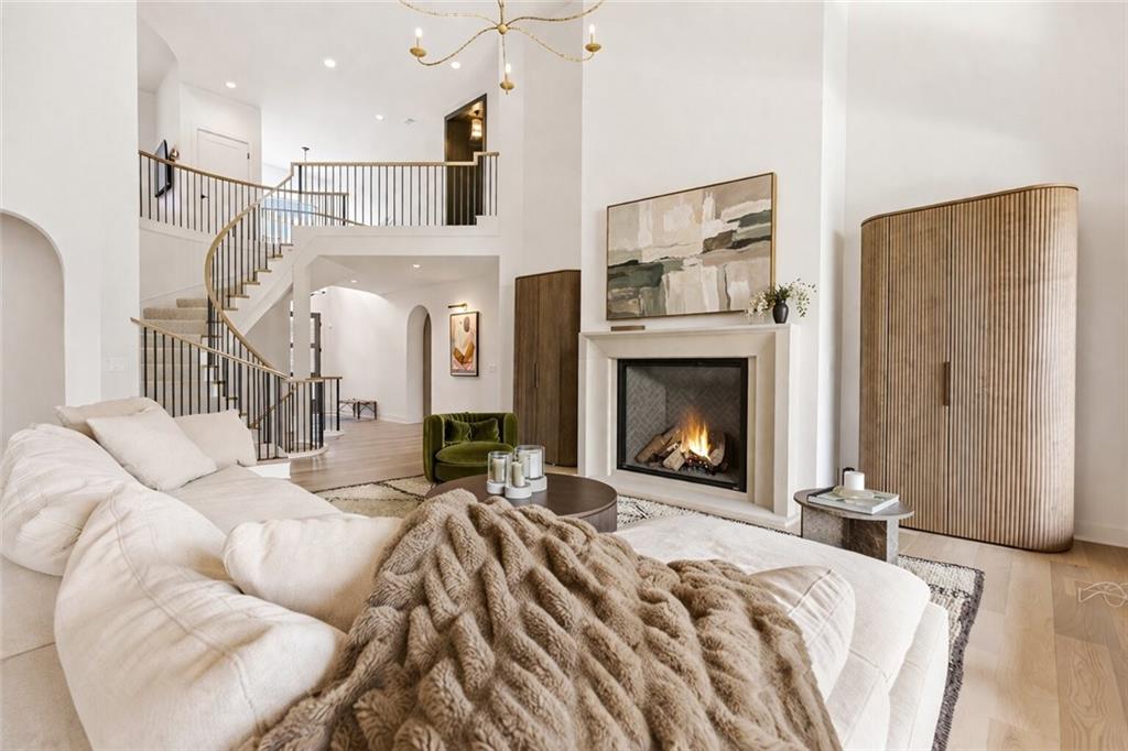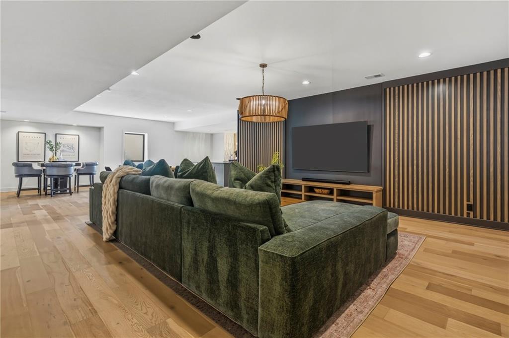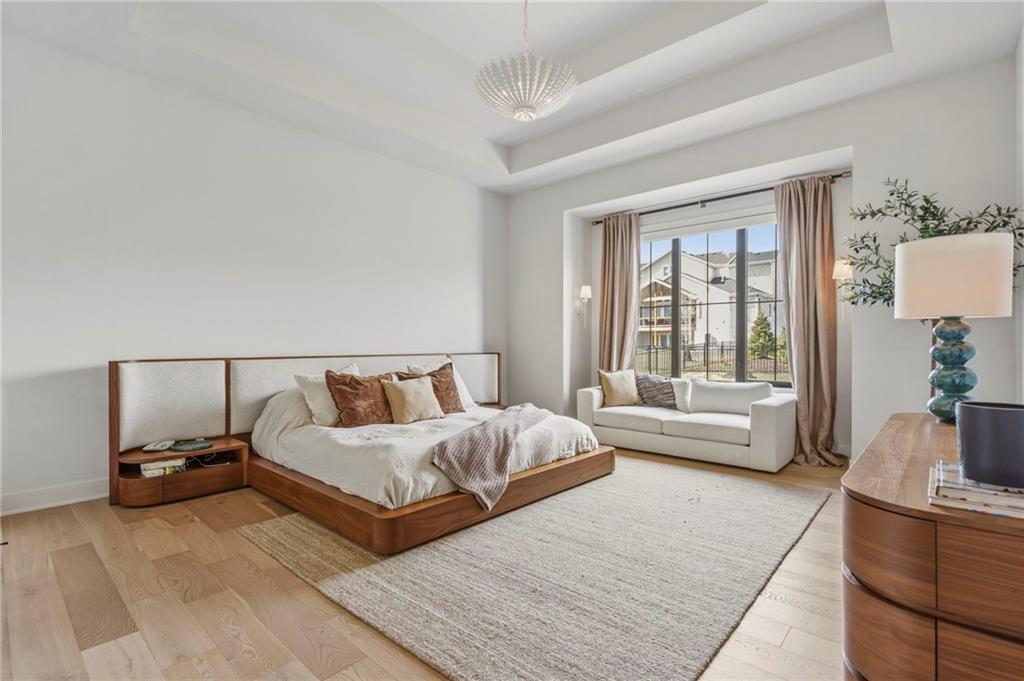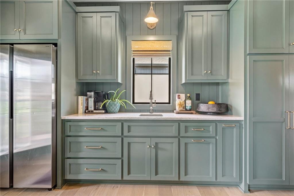 The kind of home where the design speaks for itself from the start. Originally built as the Bickimer Roosevelt 1.5-story model for the Parade of Homes, it carries a level of detail and intention that stands apart. Natural light, tall ceilings, and a striking great room with a cast stone fireplace and wood beam ceiling set the tone, while oversized glass doors create a strong sense of arrival. The kitchen is equally considered, featuring Taj Mahal quartzite, a statement plaster hood, reeded cabinetry, and a full butler’s pantry tucked just behind. Arched openings, custom millwork, and a bold sage mud hall bring depth and character throughout. This home goes beyond what is typically seen, with added upgrades including automatic window coverings throughout, a fully fenced backyard, epoxy garage floors, and elevated selections carried across every space! The main-level primary suite offers a quiet, retreat-like feel, while upstairs includes a loft and reading nook. The finished lower level is designed for entertaining with a bar, media space, full bath, and sauna. Set in Century Farms in the Blue Valley School District, the neighborhood offers a clubhouse, fitness center, resort-style pool, pickleball, and more, all just minutes from Bluehawk, parks, specialty grocers, dining, and everyday amenities!