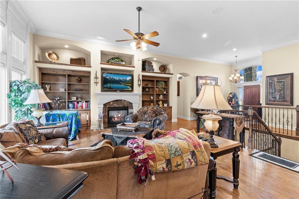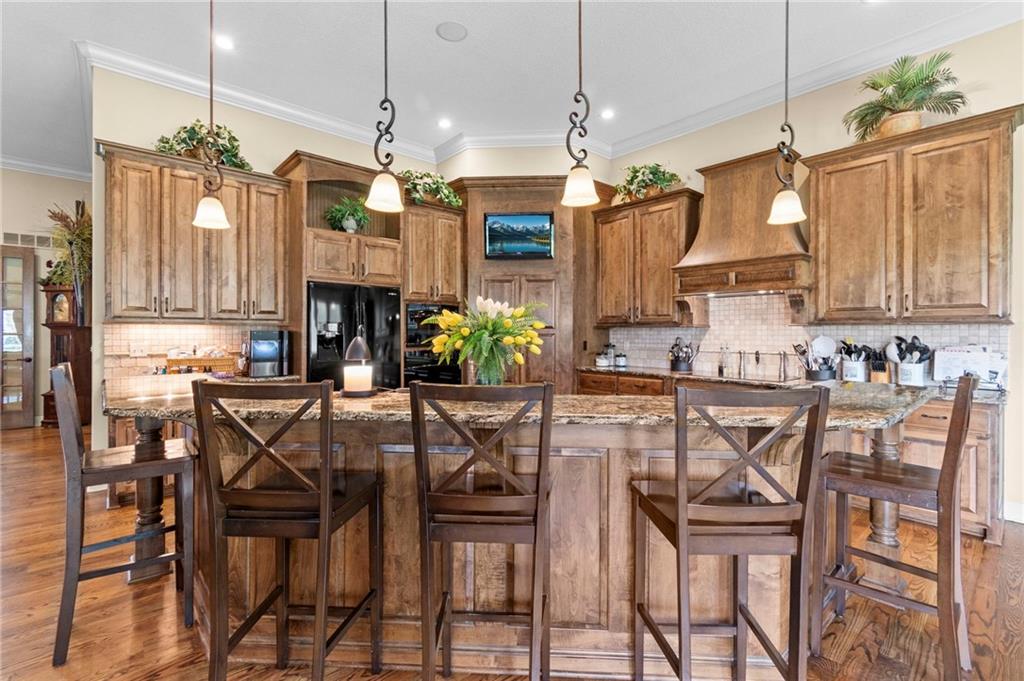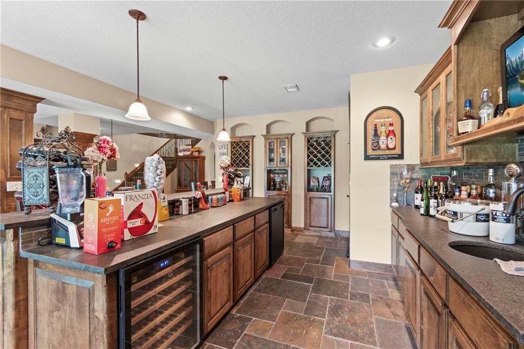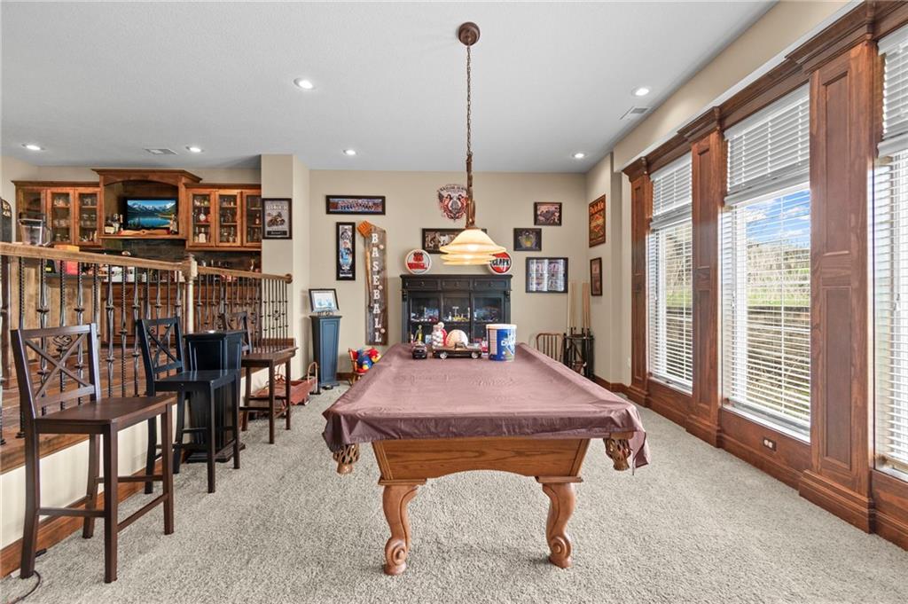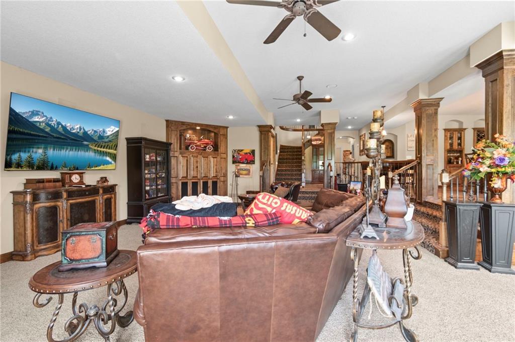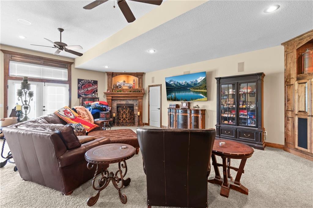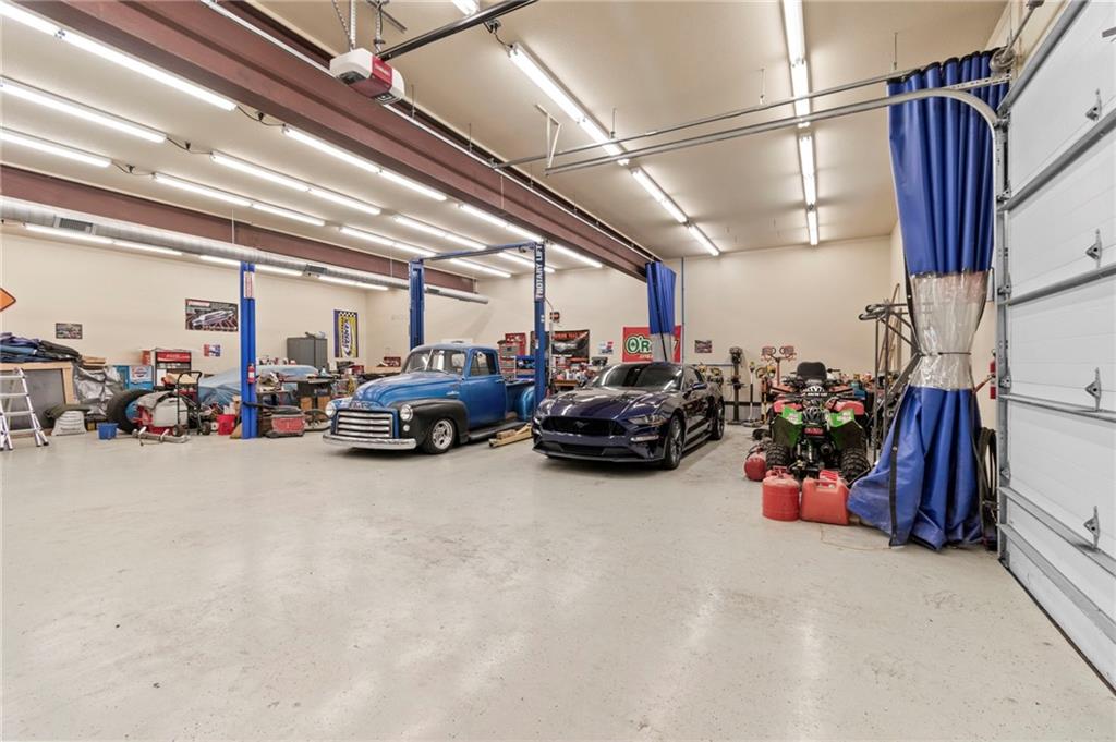 Set on nearly five acres just outside of town, this Kearney estate checks every box and then adds a few you didn’t know you needed. Inside, the main living space opens into a layout that feels open and intentional. The living room, dining area, and kitchen flow together seamlessly, anchored by hardwood floors and natural light. A fireplace with custom built-ins adds a focal point.The kitchen is built for real life and gatherings. Granite countertops, custom cabinetry, double wall ovens, and an oversized island make prep and hosting easy. A walk-in pantry keeps everything tucked away. The main level offers flexibility with a front room that can serve as a bedroom, formal dining space, or office. Two additional bedrooms share a well-designed bath with separate vanity areas. The primary suite is set apart, featuring a large walk-in closet and spa-like bath with soaking tub, tiled shower with dual heads, and double vanity. Laundry and a half bath complete the level. Downstairs, the finished lower level is built for hosting. A full wet bar with a large island opens into a second living area with its own fireplace. A private bedroom and bath make it ideal for guests or multi-generational living, along with a half bath and flexible space for a gym, office, or sixth non-conforming bedroom. Storage is extensive, with a suspended slab design offering approximately 55x31 of storage space, plus an additional 21x11 area that also functions as a secure storm shelter. The six-car attached garage provides plenty of space, and the detached 50x60 shop adds even more with its own office, bathroom, car wash, and paint bay, plus an unfinished upper level. Built with intention, the home features structural beams for wide open spaces, twelve-foot ceilings on both levels, geothermal heating, and energy-efficient windows. Mineral rights convey with the property, including oil and water discovered during the geothermal process and registered with the Missouri Department of Natural Resources.