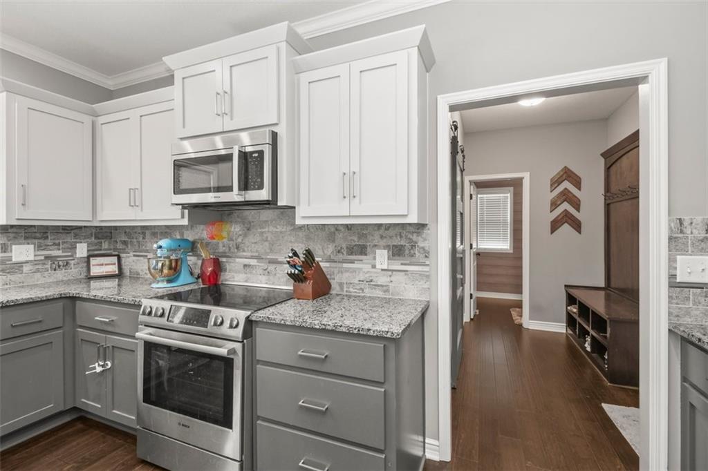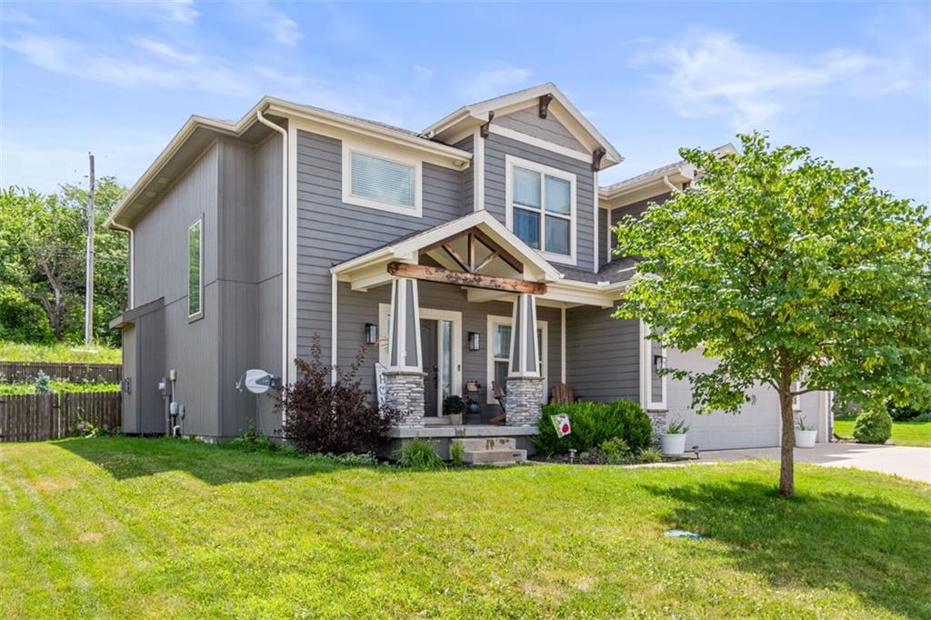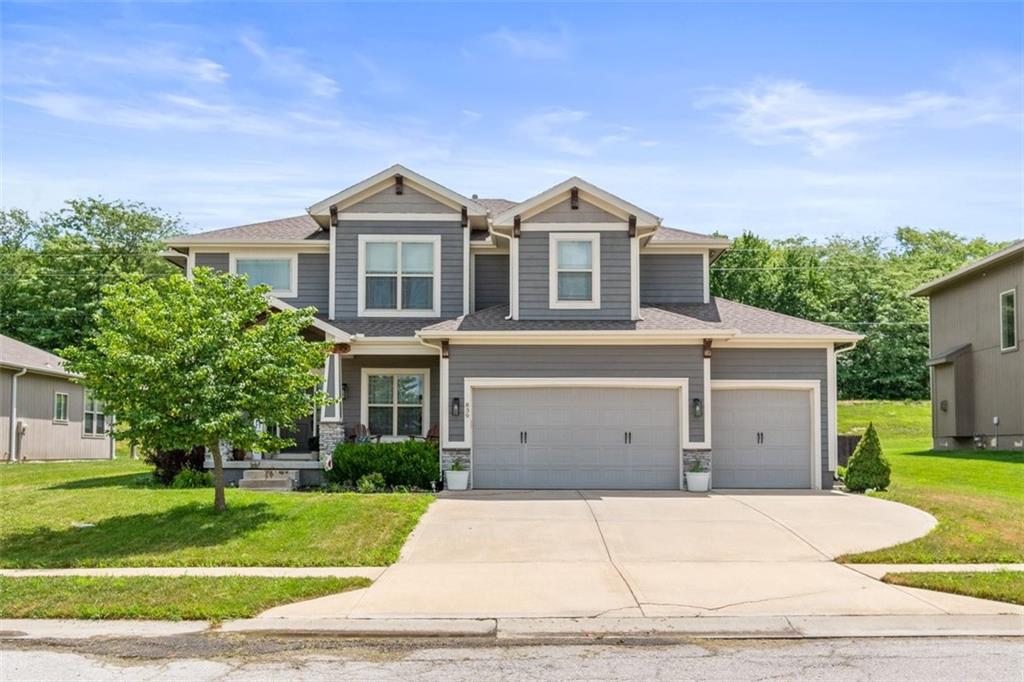 Modern elegance meets Craftsman's Charm in this sought-after Creekmoor Community!! This stunning home features 4-bedrooms, 3.5-bathrooms and a 3-car garage. Built in 2017, this beautifully maintained craftsman-style residence offers a perfect blend of modern luxury and timeless design. Step inside and you’ll immediately notice the attention to detail—from the soft-close custom cabinetry finished with crown molding to the upgraded finishes that flow seamlessly throughout the home. The kitchen is a chef’s dream, featuring sleek granite countertops, a huge island, a spacious walk-in pantry, high-end finishes, and a functional layout ideal for both everyday living and entertaining. Backed by serene green space, the backyard provides the perfect setting for morning coffee or evening gatherings—offering peace, privacy, and serene views. Located near Hawk Ridge Park, this home offers access to Creekmoor’s unbeatable amenities, including a resort-style clubhouse, an amazing 18-hole golf course, pools, tennis and basketball courts, a fishing pond, walking trails, a gym and more. Don’t miss this opportunity to own a move-in ready home in one of Raymore’s most coveted communities—where comfort, convenience, and community truly come together.