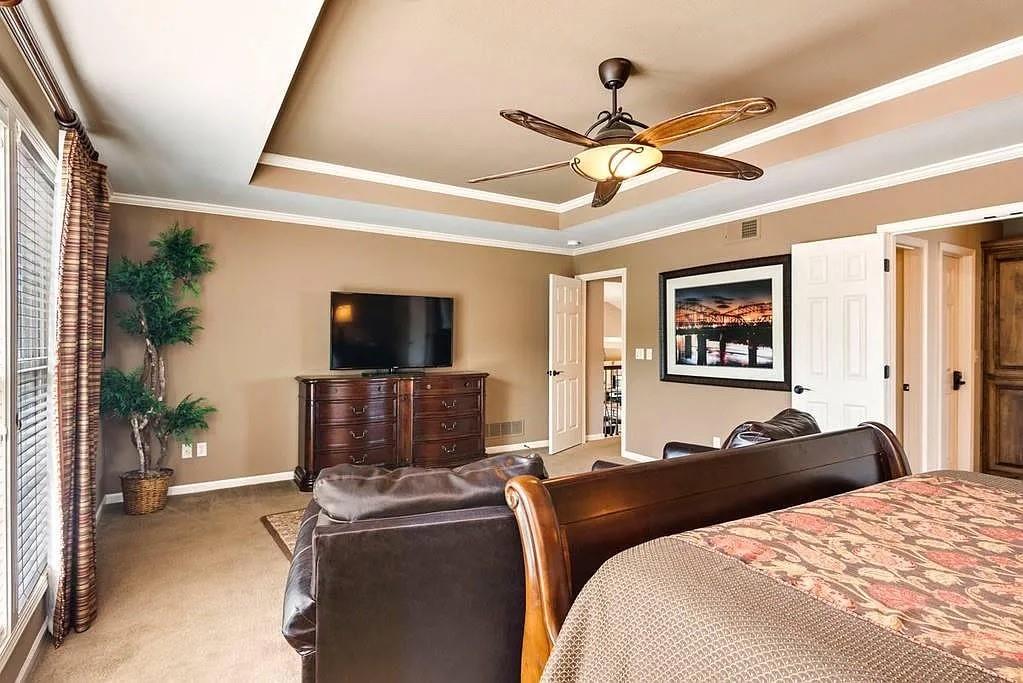 This impressive split-level luxury home is located in the heart of the Zona Rosa Shopping District and just minutes from Kansas City International Airport. Offering premium amenities throughout, the home provides an ideal setup for comfortable living and entertaining. The spacious master suite features a private sitting area, tray ceiling with ambient lighting, and a spa-like ensuite bathroom with double vanity and deluxe steam shower. The two additional bedrooms each include king beds and private bathrooms with walk-in showers. The open living area features a striking gas fireplace beneath soaring high ceilings that create a bright, spacious feel. The gourmet kitchen is fully equipped appliances, granite countertops, a breakfast bar, and flows seamlessly into the dining space. Downstairs, enjoy the custom bar with sink, dishwasher, full-size fridge, and TV, adjacent to a dedicated home gym with treadmill, all-in-one machine, and mirror walls. The highlight is the fully converted garage transformed into an impressive 8-seat home theater with a large screen and premium surround sound. Outside, relax on the raised deck with BBQ or the covered patio with fire pit, overlooking the backyard and Zona Rosa views. All three bedrooms have luxury king beds and private bathrooms. This fully furnished home includes all appliances and furniture and presents a perfect opportunity for an investor. All room sizes, square footage, lot dimensions, utilities and tax info to be verified by buyers agent.