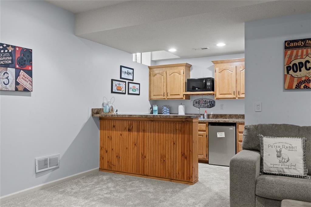 Beautifully maintained 1.5-story villa in the highly sought-after Prairie Highlands Golf Course community, offering a rare main-level primary suite and a true maintenance-provided lifestyle. Perfectly positioned along the 12th fairway, this home showcases peaceful backyard views from the private deck and main living areas—an ideal setting to relax or entertain. Inside, you’ll find 4 bedrooms, 3.1 bathrooms, and a thoughtfully designed layout featuring an open kitchen/hearth room, formal living room, and a finished lower-level family room with abundant space for gatherings. The versatile second-level loft serves perfectly as a home office, reading nook, or play area. New carpet enhances the upstairs loft, stairways, and family room, adding fresh comfort and appeal throughout key living spaces. The main-level primary suite offers a comfortable retreat with convenient access to the laundry area. The lower level is ideal for entertaining or extended living, featuring a spacious family room with new carpet and a convenient wet bar, creating the perfect setting for hosting guests or enjoying a cozy night in. Recent major updatesincluding a new roof, HVAC system, and water heater—provide peace of mind for years to come. Step outside to enjoy the backyard, complete with an underground pet fence, making it easy to enjoy both pets and outdoor living. This home is located within a maintenance-provided villa community, where HOA dues cover snow removal and comprehensive lawn care, including mowing, aeration, fertilization, plus sprinkler activation and winterization. Above ground fences are restricted due to the lawn maintenance. The community HOA is $550 annually which includes access to the community pool, and the villa HOA is $360 quarterly. Residents enjoy access to the Prairie Highlands clubhouse, neighborhood activities, and Crush Restaurant open to the public and just minutes from your front door. Come experience all this exceptional home and community have to offer!