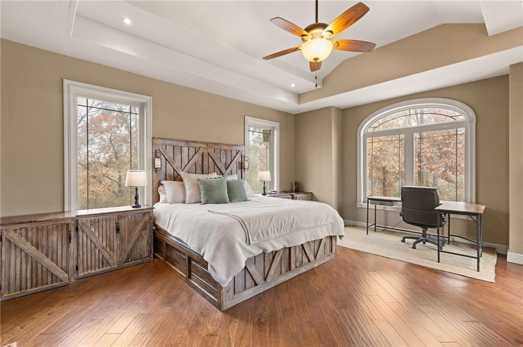 PRIVATE RESIDENCE OF A FOURTH GENERATION HOME BUILDER on 4 picturesque acres! One of a kind custom home offers over 6,200 finished square feet, 5 Bedroom, 4 1/2 bathroom + non-confirming 6th bedroom (7,000 SF total when including gym & basement workshop). LOCATED 6.5 miles north of Warrensburg and 13 miles south of I-70, making the Kansas City commute a breeze. The easement driveway leads past the 1st pond w/ swim dock, up to the residence w/ a stamped & stained concrete covered porch that offers some of the most breathtaking sunrises imaginable. FIBER INTERNET is available at this property. The 2,650 SF main floor features hardwood floors throughout, floor to ceiling stone wood burning fireplace in the living room. The custom chefs kitchen w/ 3 ovens, commercial grade appliances & a large kitchen island for gathering. The hearth room offers a gas fireplace and an abundance of natural light. The primary bedroom suite includes an electric fireplace, double closet, double vanity, built-in furniture, large tile shower & a private laundry room. Upstairs, 3 large bedrooms, 2 full bathrooms, laundry & a bonus non-conforming (6th) bedroom / play room. The finished walkout basement includes a large family room w/ electric fireplace, a custom dog kennel w/ dog door to the outside, fitness gym, 5th bedroom, full bathroom, and workshop / storage. Upgraded features include 2x6 construction, two geothermal heat-pumps for efficiency, two rear decks (one covered that runs entire length of home). A newly constructed 44' x 64' shop w/ 240V electric, two garage doors, concrete floor & bi-fold hanger style door for all of the toys & equipment. This custom home is one you don't want to miss. Too many features to list! Call today to schedule a showing! Home can be purchased with 22.54 total acres and can be referenced at MLS listing 2589070.