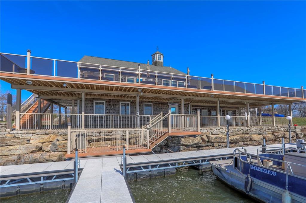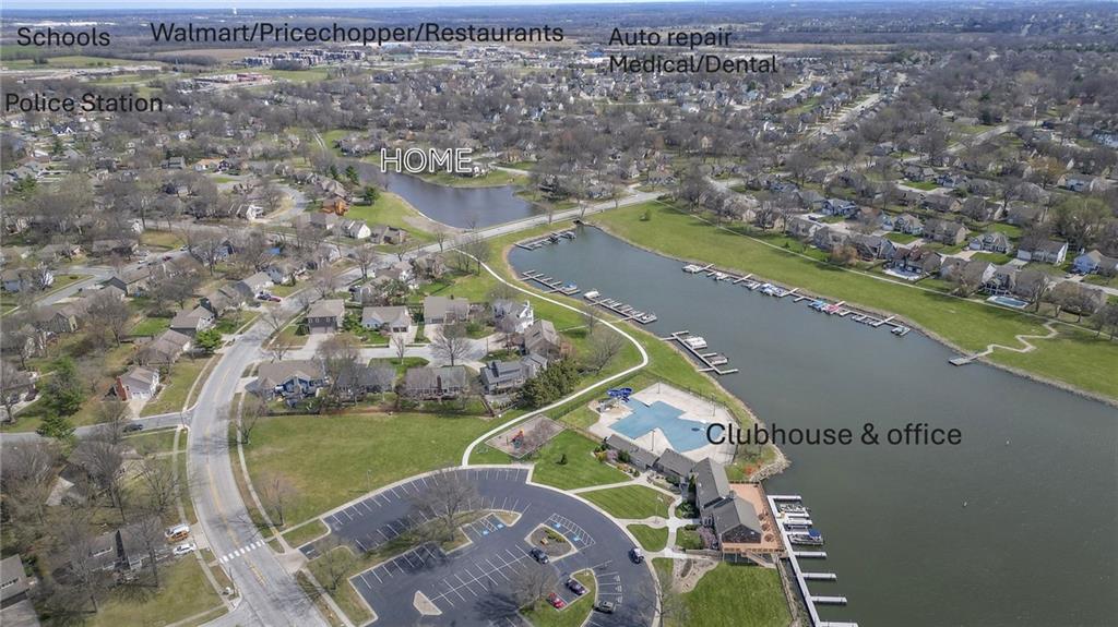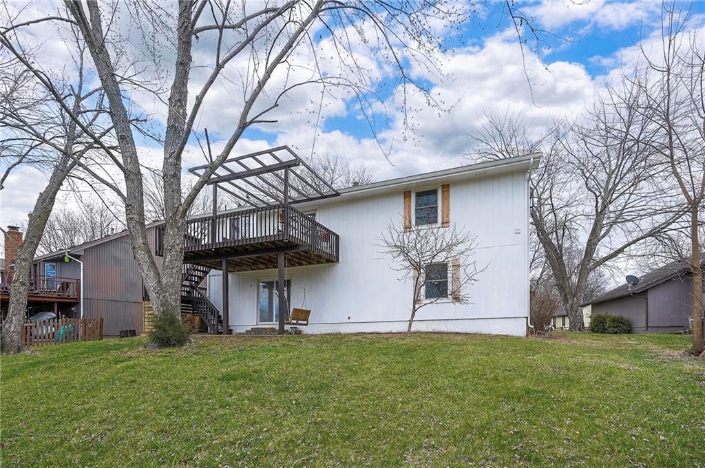 Waterfront home in beautiful Raintree Lake. Centrally located on a quiet cul-de-sac just blocks from the clubhouse and pool. Wonderful lake views throughout the home and from the spacious tree covered deck &... you can fish from your own backyard. Light, bright and so inviting. Fully updated with beautiful hardwood flooring on main floor and durable LVP in walk-out lower lever. Freshly painted interior, customized ceilings, beautifully updated baths, new windows and patio doors, replaced garage doors, HVAC, added new composite siding and cedar shutters and much more. A short distance to Walmart, grocery, pharmacy, dining and easy access to highways & the Costco currently under construction as well as expanded shopping and dining areas. Lee's Summit Schools. A great home and lake community to enjoy in every season. Come see it today!