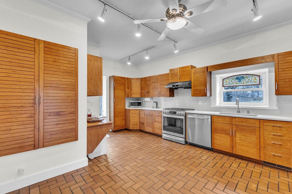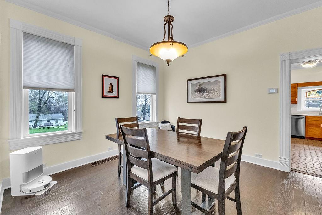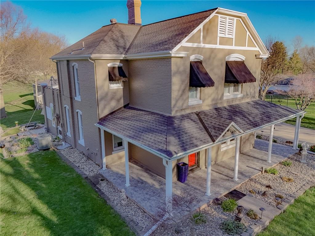 More than a century of stories live within these walls, and now it's time for the next chapter. This striking two-story brick home, built in 1911, sits on over two acres of lush, tree-lined grounds and carries the kind of presence that simply can't be built anymore. The wrap-around covered porch sets the tone the moment you arrive - freshly tiled and a natural gathering place for morning coffee or an evening wind-down. Inside, the floor plan balances original charm with everyday functionality: a formal living room, a separate family room with original stained glass transom, a formal dining room, and an updated eat-in kitchen. The kitchen shines with a new range and hood, new countertops, updated hardware, and a new sink and faucet. The all-seasons sun room with electric fireplace means you'll use and love every corner of this home year-round. Main floor laundry with a half bath keeps the practical side covered. Upstairs holds three bedrooms and a full bath. Fresh interior paint throughout and a newer electrical panel round out the updates, giving you the bones of a historic home with the confidence of modern systems. Outside is where this property truly distinguishes itself. The irrigated lawn and ornamental gardens stay effortlessly manicured, and the wood deck with its covered pergola - complete with a chandelier and wicker seating area - makes outdoor entertaining easy. A dedicated outdoor sink is a gardener's dream. Multiple outbuildings offer flexible space - including a dedicated potting shed and a spacious hobby building with wood stove, skylights, and room for a gym, workshop, or studio - and the large detached garage accommodates 4 to 6+ vehicles plus equipment with ease. The 78 owned solar panels mean your electric bill is rarely more than a conversation piece. A property with this much history, this much land, and this much thoughtful updating doesn't come around often.