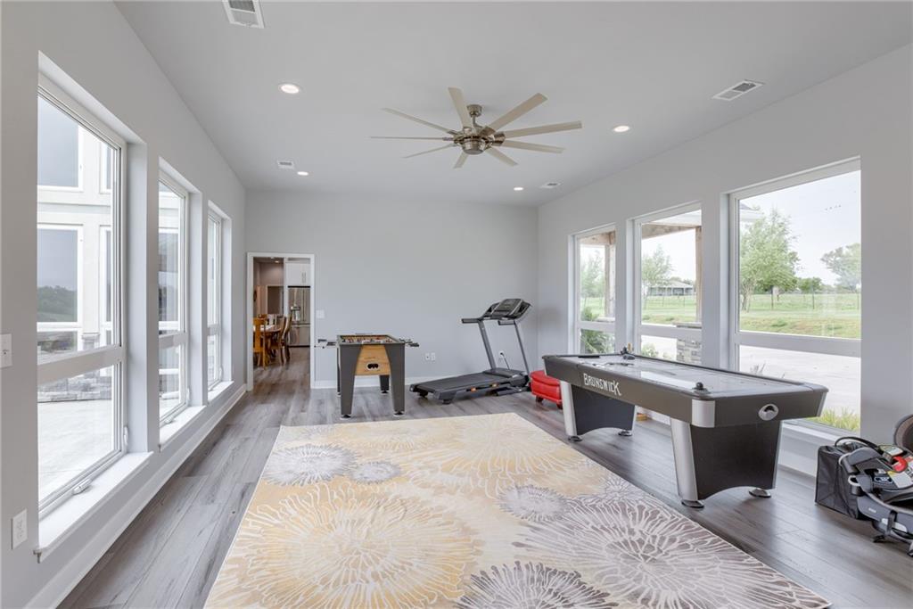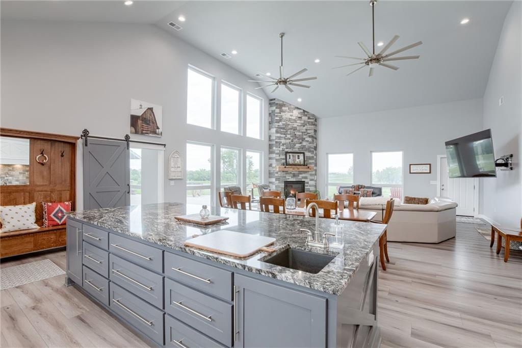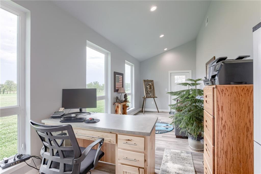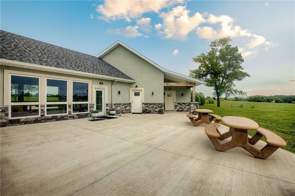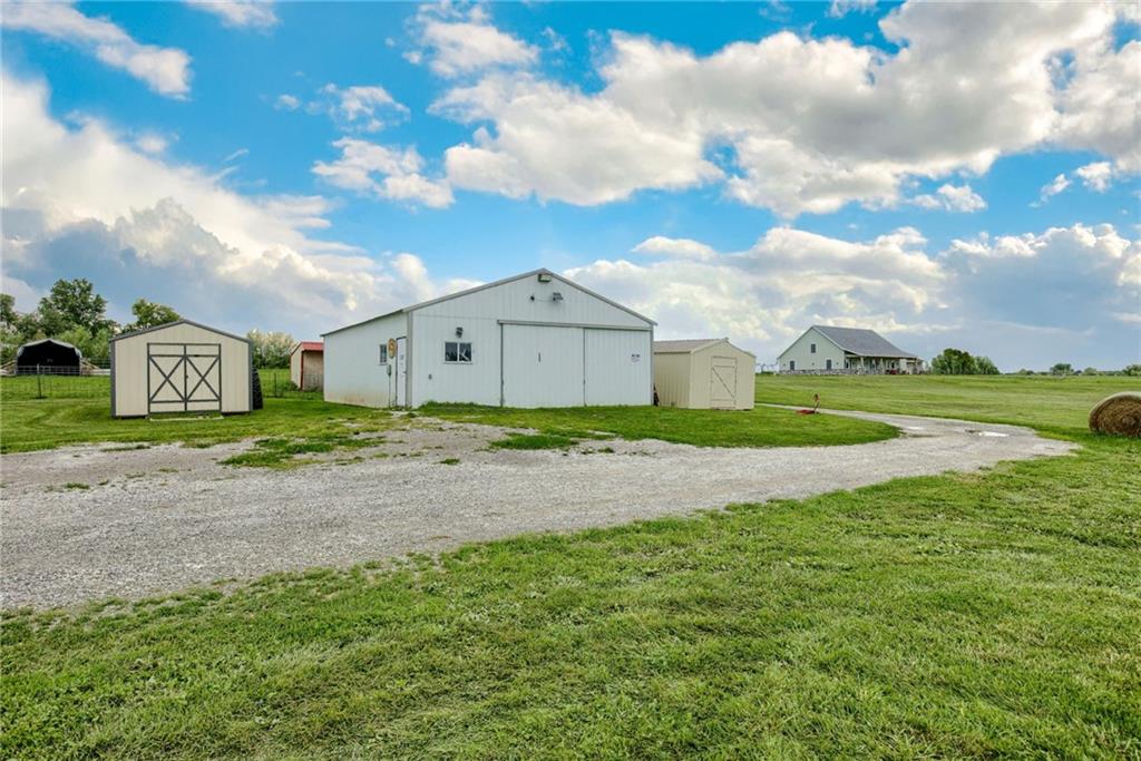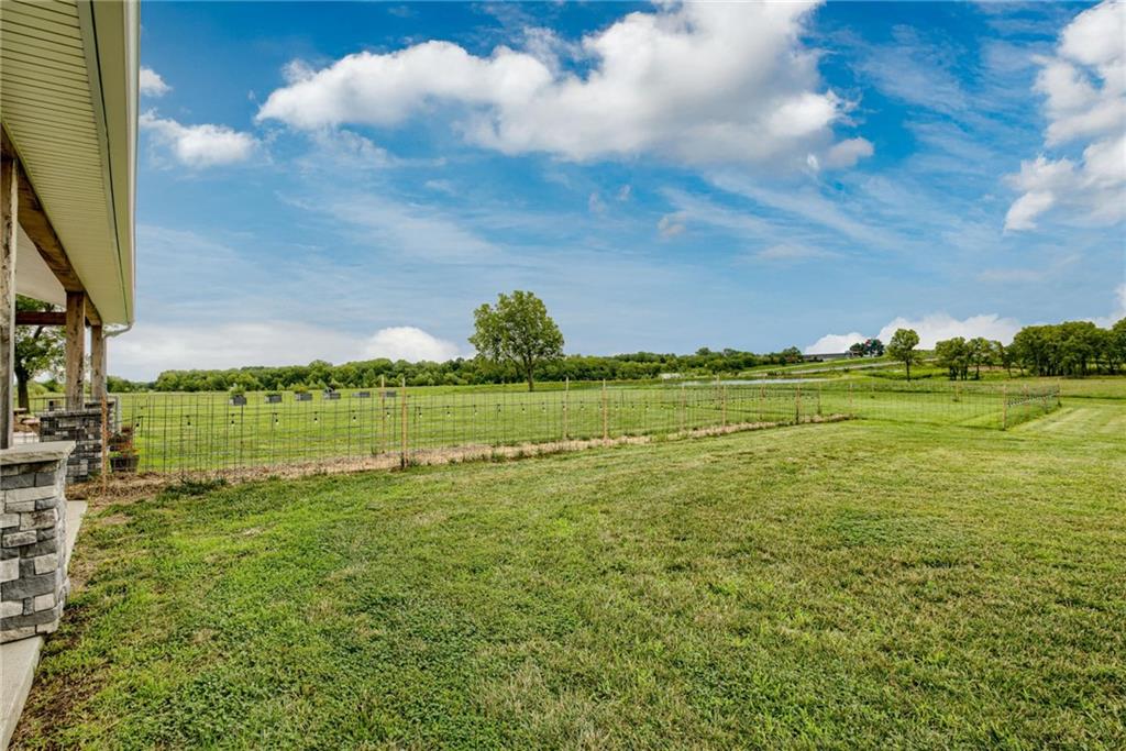 Discover the convenience of this picturesque estate located just off exit 40 in Lathrop MO. This newly constructed home offers over 4400 square feet of livable space and just over 5 acres with and livestock facilities. Ideal for business owners, large families, or those wanting a quick commute to Kansas City or the airport. The stunningly designed home offers 4 bed, four bathrooms, two fireplaces and a massive great room perfect for family living and entertaining guests. Inside there is a blend of marble and high end flooring that adds elegance and durability throughout. The heart of the home features a state of the art kitchen with an 11 foot custom granite island, walk in pantry, and personalized kitchen cabinetry. The expansive concrete driveway and parking pad outside the 4 car garage provides extra parking for additional guests. Additionally the main floor offers oversized hallways and doorways making it completely handicapped accessible. Outside the home there is a 30x40 barn with a fully fenced paddock with water spigots already suitable for livestock or horses. Additional highlights include a vault style safe room, a dedicated office space and an integrated Generac backup generator, ensuring your home remains comfortable and functional in any situation. This property seamlessly combines luxury security and practically practicality making it a true sanctuary. homeowner is also willing to sell adjoining acreage for an cost. Don't miss the opportunity to own this remarkable estate just 30 minutes from Kansas City and the MCI Airport. Schedule your showing today Inexperience all this stunning home has to offer!