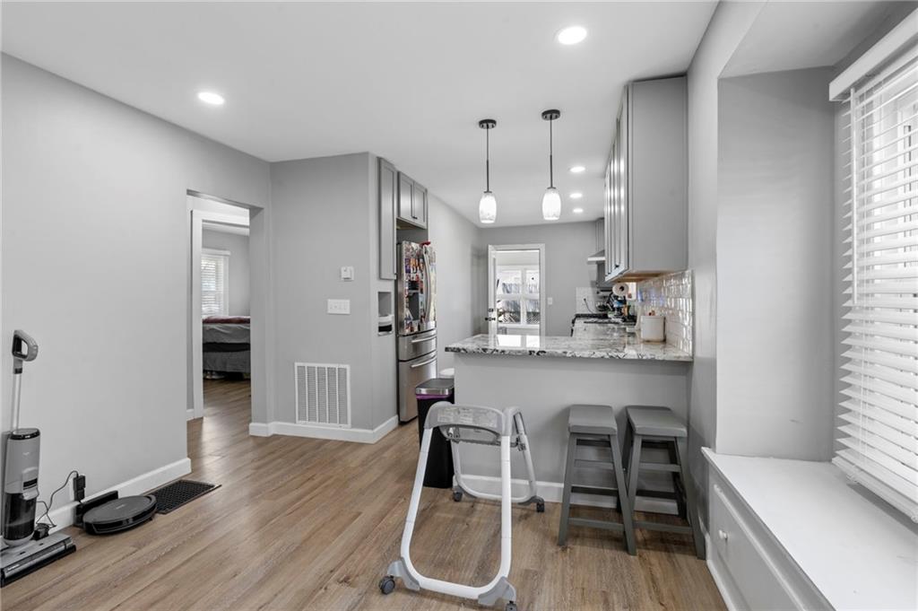 Step into this charming, fully refreshed bungalow that’s bursting with character and ready to welcome its new owners! Featuring three bedrooms and one beautifully updated bathroom, this home blends classic charm with modern touches. Enjoy stylish vinyl plank flooring throughout and an inviting open-concept kitchen complete with stunning granite countertops and sleek stainless steel appliances—perfect for everyday living and entertaining. Just off the kitchen, you’ll find a cozy porch that doubles as a mudroom and laundry space for added convenience. Situated on a spacious corner lot, there’s plenty of room to relax, play, and enjoy the outdoors. This home is the perfect mix of comfort, style, and personality—come see it for yourself!