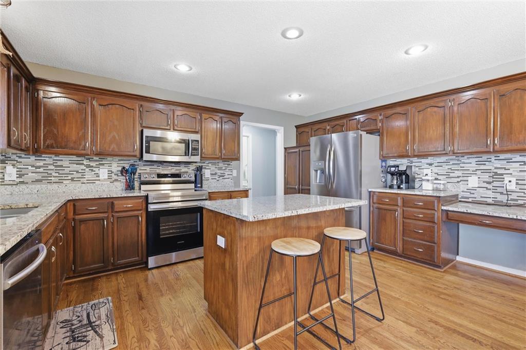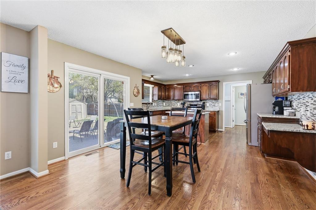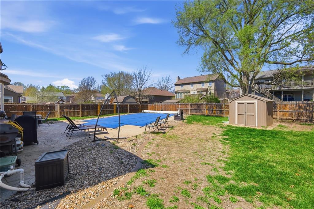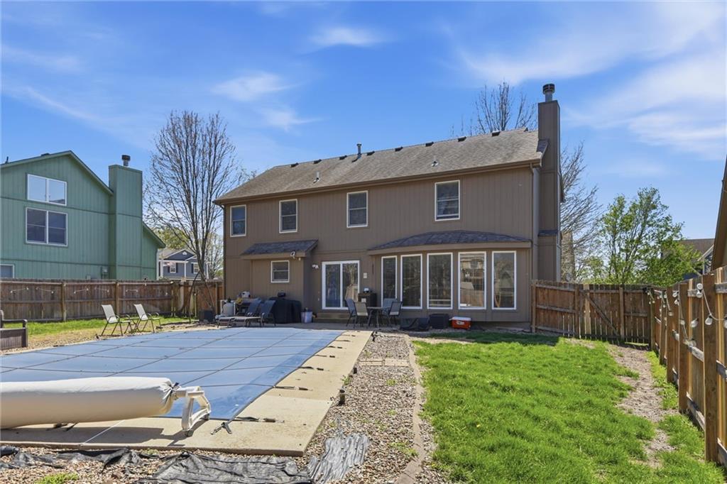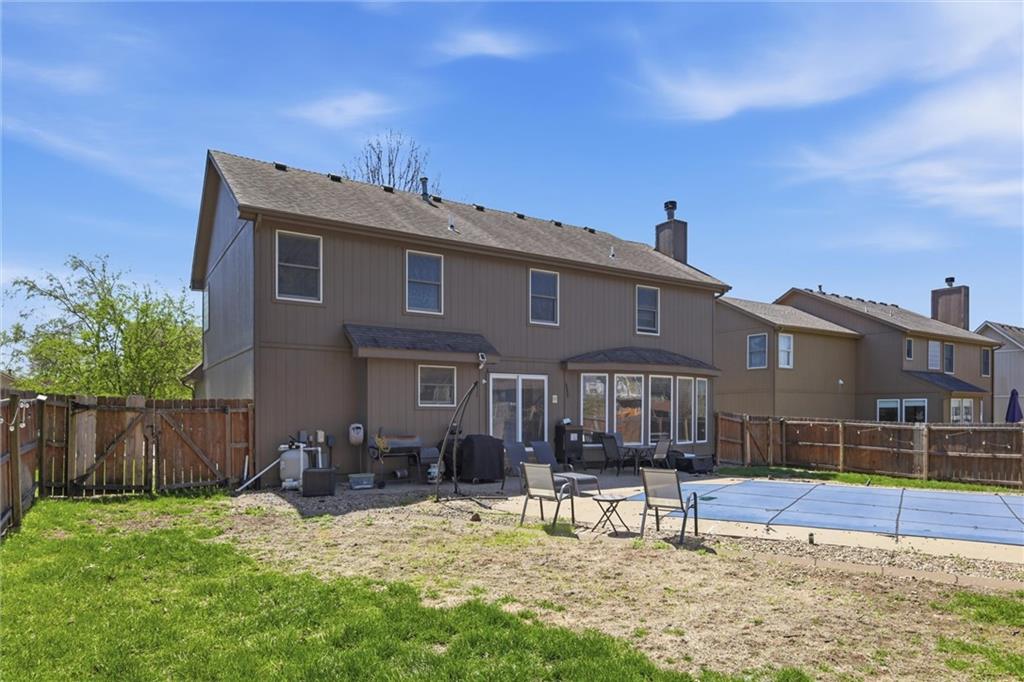 Don’t miss this stunning Stonebridge home! Tucked away on a quiet private cul-de-sac in one of Blue Springs’ most sought-after communities, this move-in ready two-story home offers an unparalleled lifestyle. The main floor features an open-concept feel with tons of natural light, highlighting the gleaming hardwood floors. A versatile formal dining room, currently functioning as a professional home office, provides the flexibility modern buyers crave. The updated kitchen is a true centerpiece, updated with granite countertops, stainless steel appliances, and abundant cabinetry, situated just steps from the convenient main-level laundry room. The second level serves as a private sanctuary with four spacious bedrooms and two full baths. The expansive primary suite is a homeowner’s dream, featuring a spa-like ensuite with dual vanities, a soaking tub, a walk-in shower, and the convenience of his-and-her walk-in closets. For additional living space, the finished basement includes a large recreation room, a full guest bathroom, and massive storage areas. Outdoor living is redefined in the backyard oasis, boasting a sparkling inground pool and a sprawling lawn perfect for entertaining and play. Located within easy walking distance to top-rated elementary and middle schools, this Stonebridge gem combines prime real estate with an unbeatable neighborhood atmosphere.