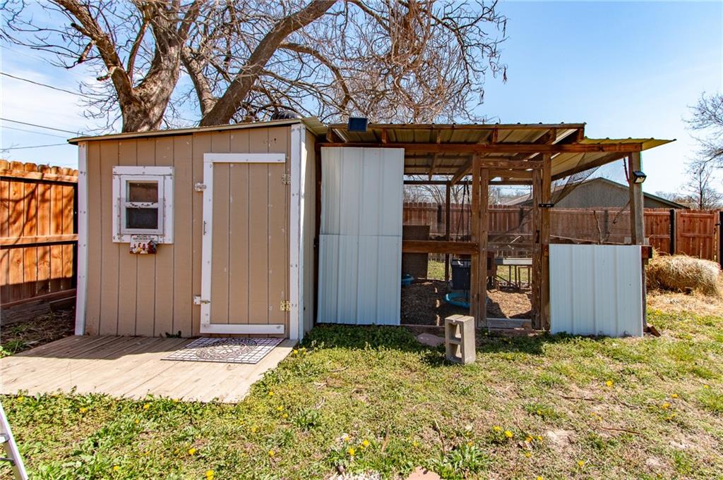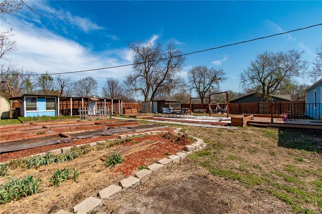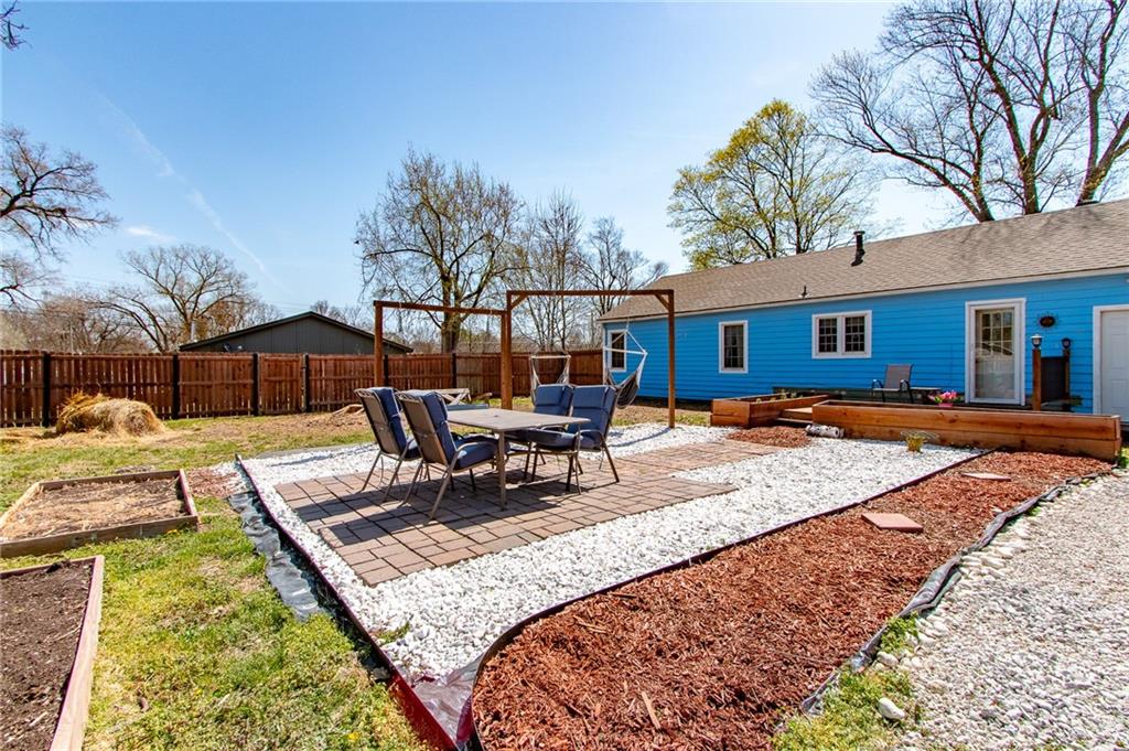 Charming and thoughtfully updated, this 3-bedroom, 1-bath ranch in Baldwin City offers comfort, character, and an impressive outdoor setup on a spacious 1/3-acre lot. Inside, newer LVT hard surface flooring runs throughout, with original hardwood floors waiting beneath. Each closet is lined with cedar—an unexpected detail that adds both function and charm. The roomy kitchen overlooks the backyard and features stainless steel appliances, all purchased in 2025.Step outside to a fully privacy-fenced backyard designed for both relaxation and productivity. Enjoy a newer deck, expansive paver patio ideal for a firepit or additional seating, a porch swing with two hanging chairs, mature peonies that bring both color and fragrance and multiple raised garden beds—including one with established strawberries. The property also includes a storage shed and two well-designed chicken coops—one for summer use and one built with passive solar design to help retain warmth in the winter. Major updates provide peace of mind, including a newer roof, water heater, and privacy fence(all since 2020), along with a furnace and air conditioner replaced in 2023.This is a rare opportunity to enjoy small-town living with space, updates, and outdoor features that are already in place and ready to enjoy. Schedule your showing! Disclaimer: Sight unseen offers maybe accepted by the Seller. The Showing Begin Date is subject to change.