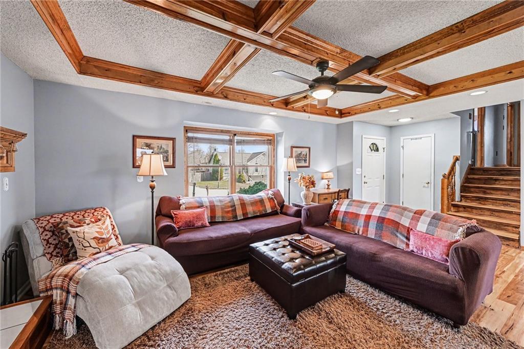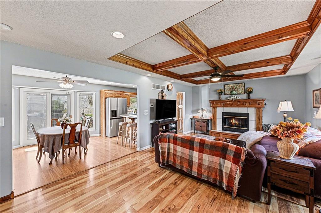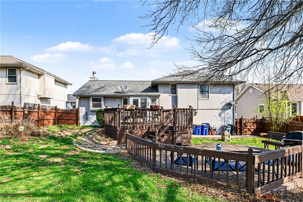 Welcome home to this spacious side-to-side split nestled in the highly sought-after Harborview community. Here, lifestyle comes built in. Enjoy access to a neighborhood pool, fun play area, and scenic walking trails that make it easy to stay active and soak up the outdoors without ever leaving your neighborhood. Step inside and instantly feel the warmth of home. The inviting living room features a striking box-beamed ceiling and cozy gas fireplace, all flowing seamlessly into the kitchen and dining area for effortless entertaining. The kitchen offers abundant cabinet and counter space, plus a pantry cabinet for the storage we all pretend we don’t need but absolutely do. Upstairs, the private primary suite includes a walk-in closet and its own bathroom retreat. Two additional bedrooms, a full bath, and a conveniently located laundry closet complete the bedroom level with functionality and comfort. The finished lower level expands your living space with a second family room, a third full bathroom, and the flexibility for a non-conforming fourth bedroom, home office, or workout space. Out back, the real fun begins. An extra-large deck, patio with firepit, and spacious yard create the perfect setting for entertaining, relaxing, or letting kids and pets run free. All of this at an incredible price point, just minutes from Smithville Lake, major highway access, local shopping and dining, and only 20 minutes to Kansas City International Airport. Affordable. Spacious. Community-driven. This one checks the boxes buyers keep asking for.