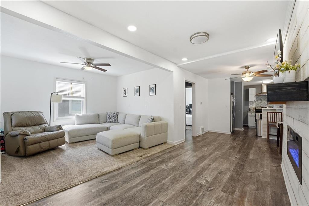 Beautifully remodeled 2-bedroom, 2 full bathroom home with inviting spaces inside and out! The large front porch offers the perfect spot to relax and unwind. Inside, the open floor plan maximizes space while maintaining a warm, cozy feel. The updated kitchen features shaker-style cabinetry, custom solid surface countertops, stainless steel appliances and a stainless vent hood. Both full bathrooms have been thoughtfully updated with modern finishes. Enjoy the convenience of main-level laundry, eliminating trips to the basement. The private primary suite is located on the second floor and includes a double vanity and a spacious shower. With updates throughout, this home is truly move-in ready. Just bring your furniture and make it yours!