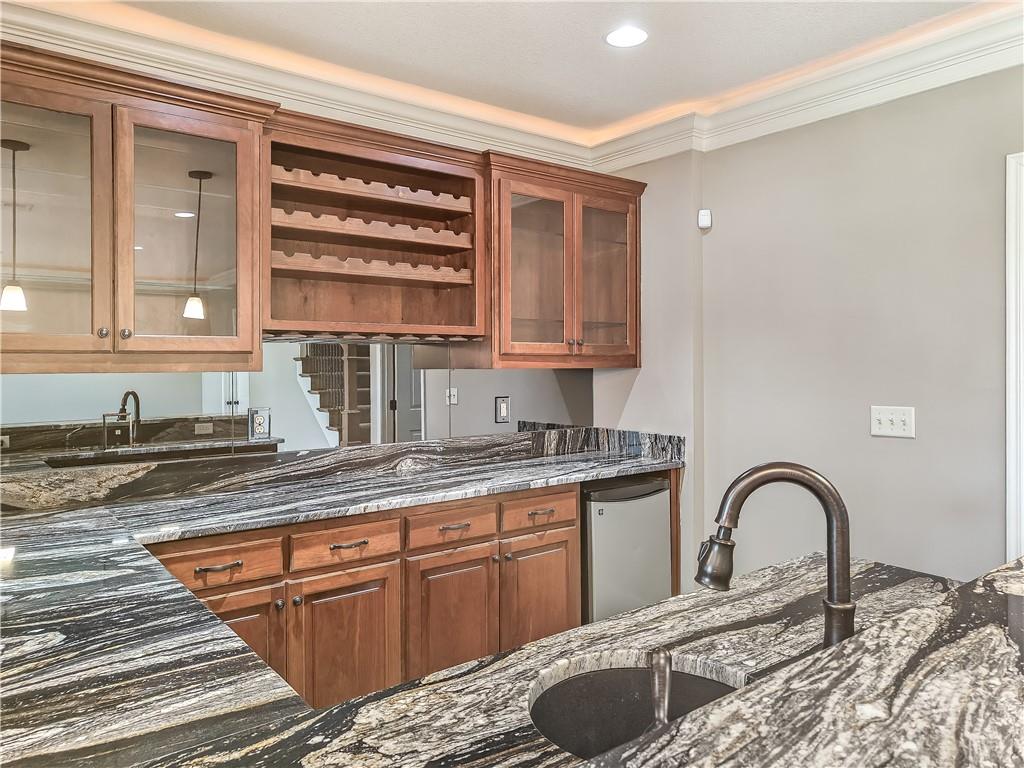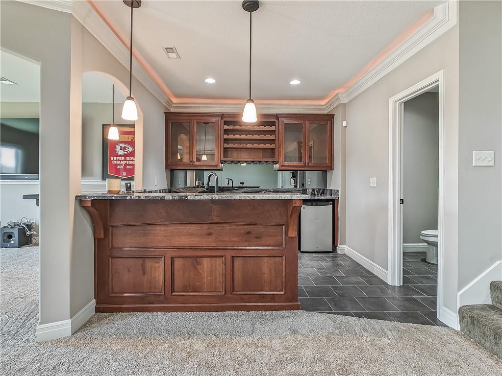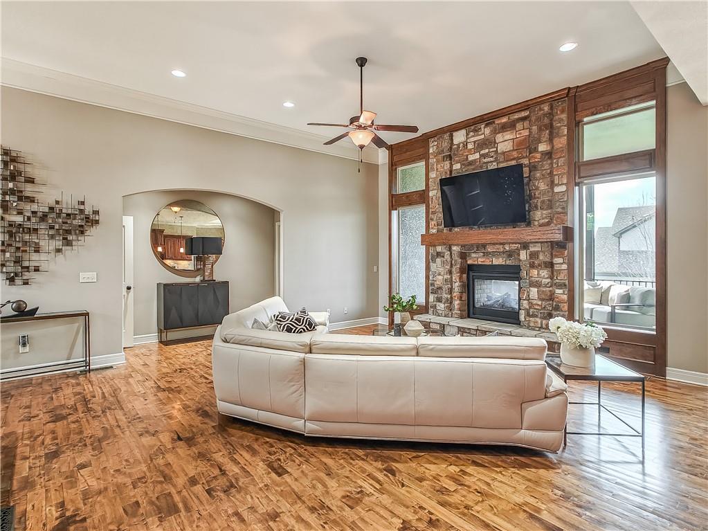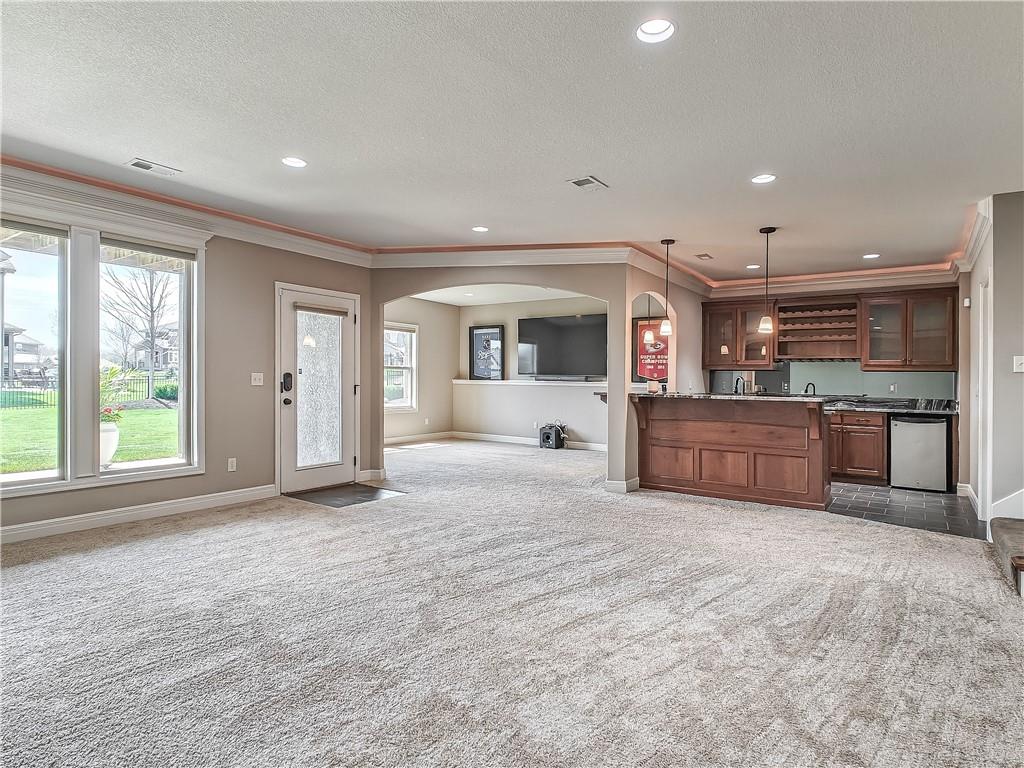 Sensational walk-out reverse 1.5-story in sought-after Polo Fields, offering the perfect blend of open living, thoughtful design, and exceptional functionality. The expansive great room welcomes you with rich hardwood floors and a striking see-through direct vent fireplace, creating a warm connection between the living and entertaining spaces. The open layout flows seamlessly into the kitchen and dining area—ideal for both everyday living and hosting. The kitchen is a true centerpiece, featuring a large island, granite countertops, stainless steel appliances, and a spacious walk-in pantry. A conveniently located laundry room with utility sink sits just off the kitchen for added ease. This meticulously maintained home shines with a massive finished walk-out lower level designed for entertaining and versatility. Enjoy two separate rec spaces, a stylish wet bar with granite countertops, and a convenient half bath. Two additional bedrooms with a full bath provide the perfect setup for guests, family, or flexible living needs, plus abundant storage throughout. Step outside to relax or entertain on the private screened-in covered deck, or take in the outdoors from the lower-level patio—both offering peaceful, usable outdoor living spaces. Additional highlights include: • All stucco exterior for timeless curb appeal • Walk-out lower level • Instant hot water system • Storm shelter for peace of mind • Sprinkler system • Oversized 3-car garage with heaters and high-intensity lighting—perfect for hobbies, projects, or extra storage This home truly delivers space, comfort, and quality in one of the area’s most desirable communities.