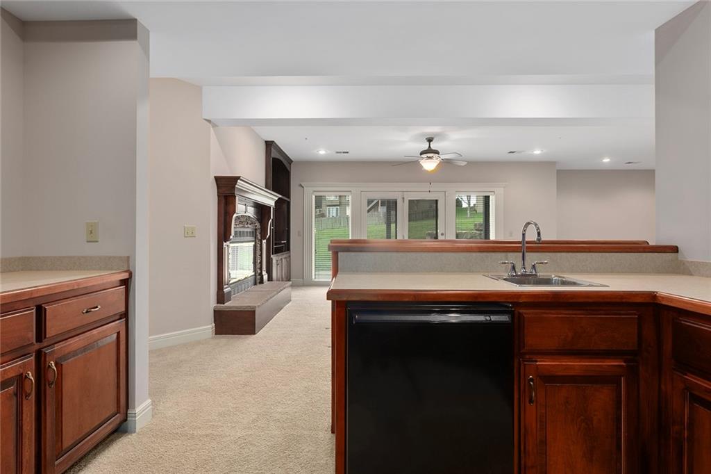 Enjoy low-maintenance living without giving up the space you love! This Villa in Woodneath offers generous room for everyday living plus options for entertaining or multi-generational living. The main level features a formal dining room, living room, and a well-appointed kitchen, along with a spacious primary suite, an additional bedroom and bath, and the convenience of main-floor laundry. High ceilings, crown molding, and abundant built-ins reflect the quality craftsmanship Woodneath Farms is known for. The finished walkout lower level expands your living options with a second living area, fireplace, and a private bedroom and bath that lives like a second primary suite—ideal for hosting family and guests with ease. A large kitchen area with sink, microwave, mini-fridge, and bar adds flexibility for extended stays or entertaining. Relax outdoors on the covered, screened composite deck or enjoy the patio below—perfect for taking in peaceful surroundings year-round.