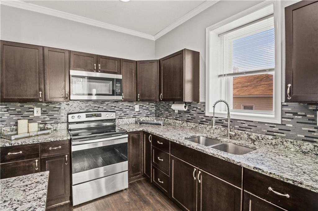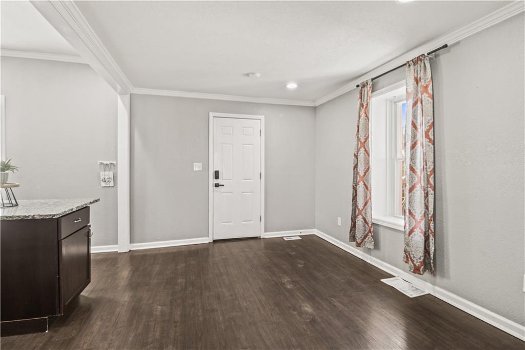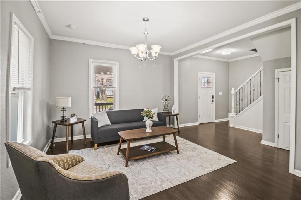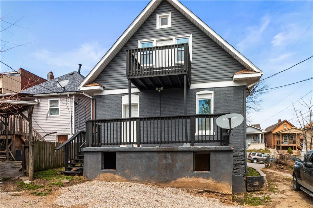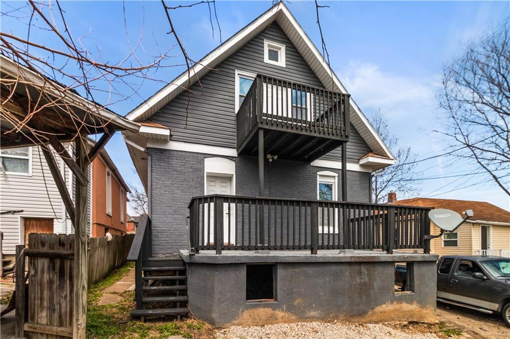 Welcome home to this charming 1920's home, centrally located gem just 10 minutes from downtown Kansas City—perfectly situated within walking distance to the shops and restaurants of Strawberry Hill. Start your day on the spacious front deck—perfect for morning coffee or unwinding in the evening. Step inside to a warm and welcoming living room featuring durable LVP flooring, flowing seamlessly into the formal dining area and open kitchen. Here, you’ll find granite countertops, a center island, ample cabinet space, and all appliances included—making it as functional as it is inviting. Out back, a second deck creates the perfect setting for relaxing evenings or entertaining guests. The main level offers flexibility with a bedroom that can also serve as a home office, along with a full bathroom for added convenience. Upstairs, you’ll find three additional bedrooms, including a comfortable primary suite with dual vanities, a stand-up shower, and your own private balcony—your own quiet escape at the end of the day. A laundry closet is conveniently located just off the hallway. The home continues to impress with neutral finishes throughout, a newer HVAC system (approximately 5 years old), and a walkout basement offering plenty of storage space. A carport located just behind the home adds extra convenience.