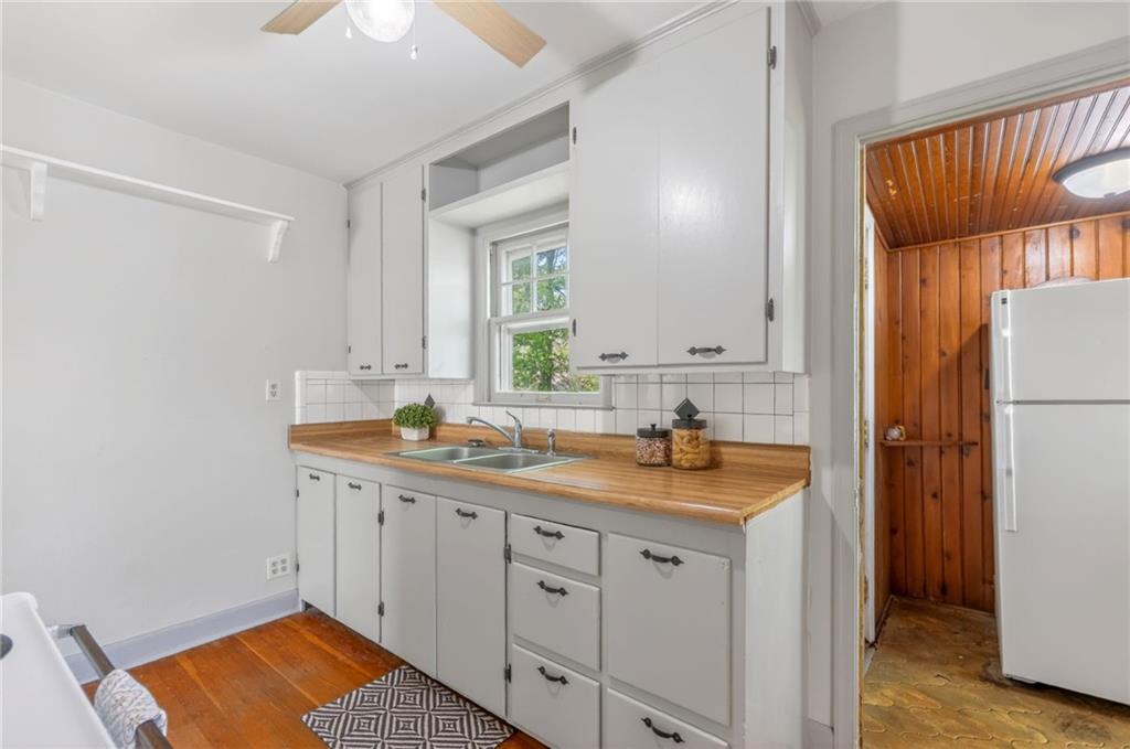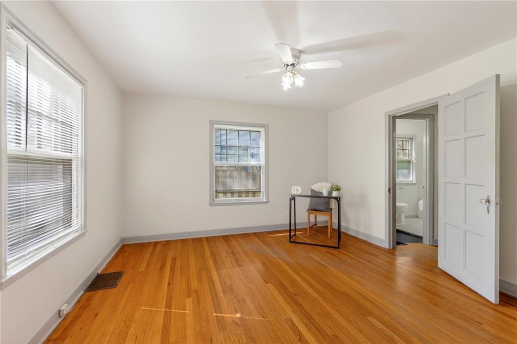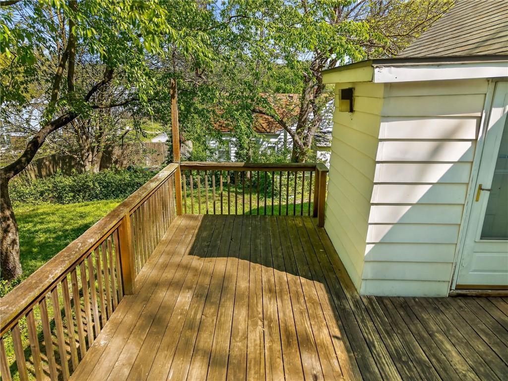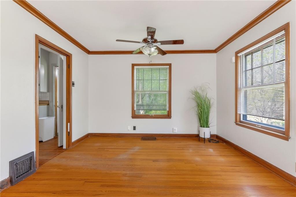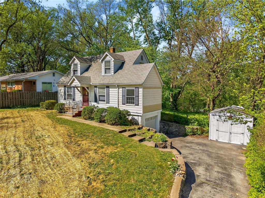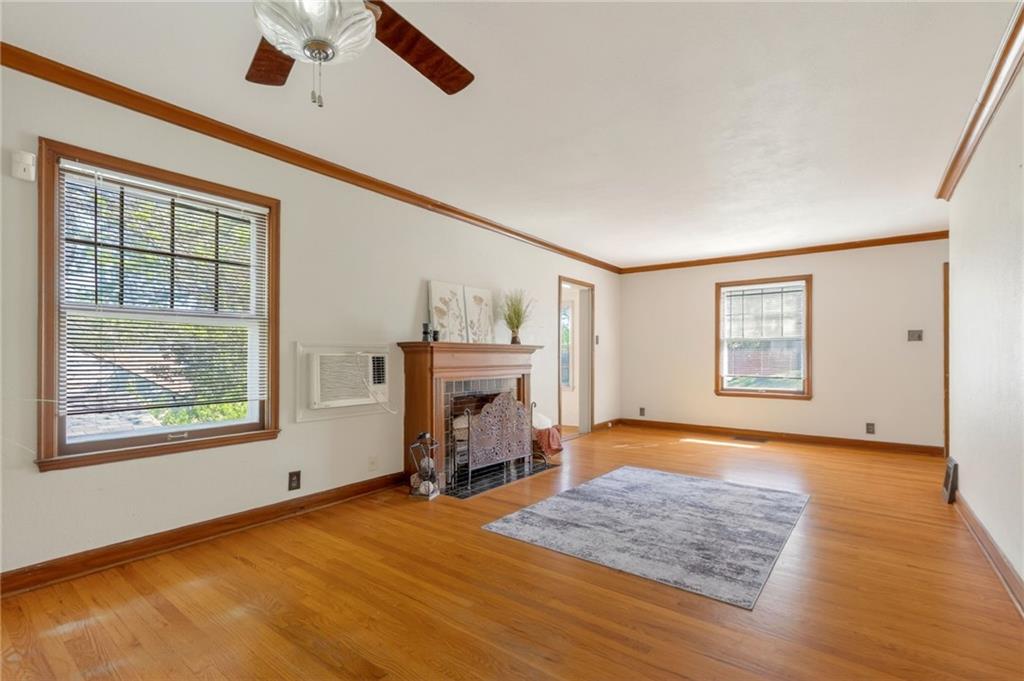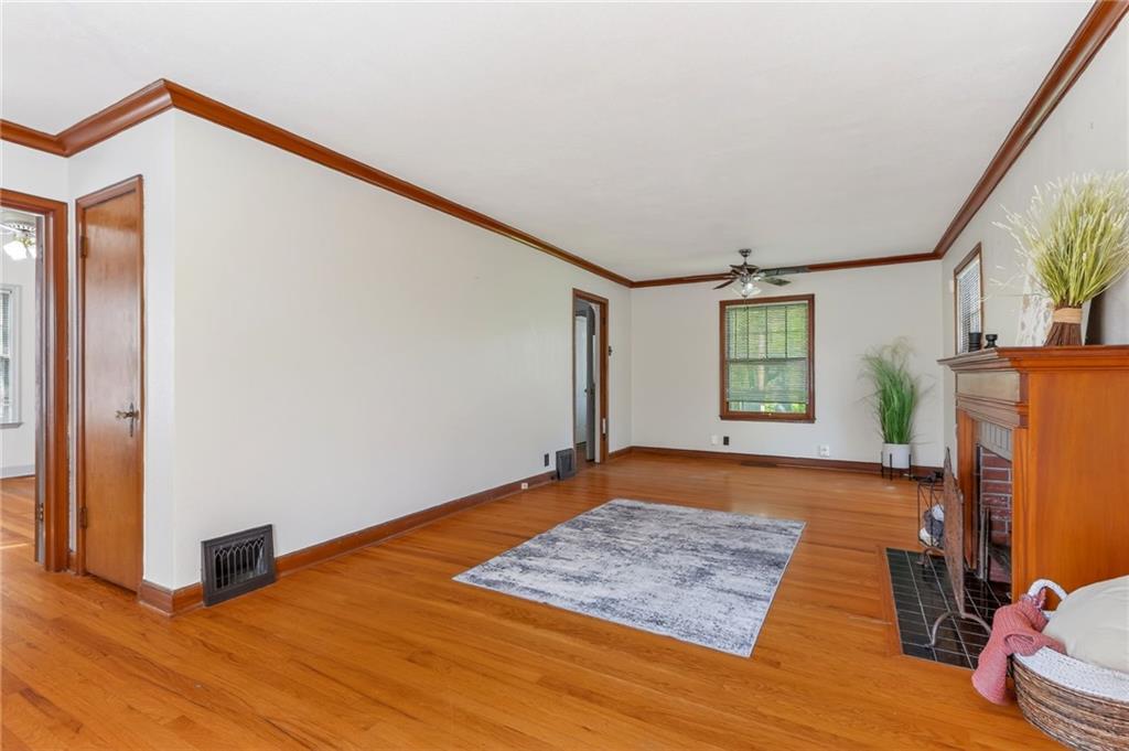 Solid 1.5-story home in the Cooley Highlands neighborhood of KC North offering character, space, and great potential. Beautiful original hardwood floors run throughout much of the home, with just over 1,000 square feet ready for your personal updates and finishing touches. The main level features a cozy living room with fireplace and custom mantel, adjacent sunroom or den, primary bedroom, full bath, and roomy kitchen. Upstairs, the expansive loft-style second bedroom offers flexible space for a bedroom, office, playroom, or hobby area. Ample fenced backyard provides room to enjoy outdoors. The home has Central heat and air conditioning, the window units are supplemental. Convenient location close to shopping, schools, and easy highway access. A solid home with great bones and an excellent opportunity to build equity with a little TLC.
