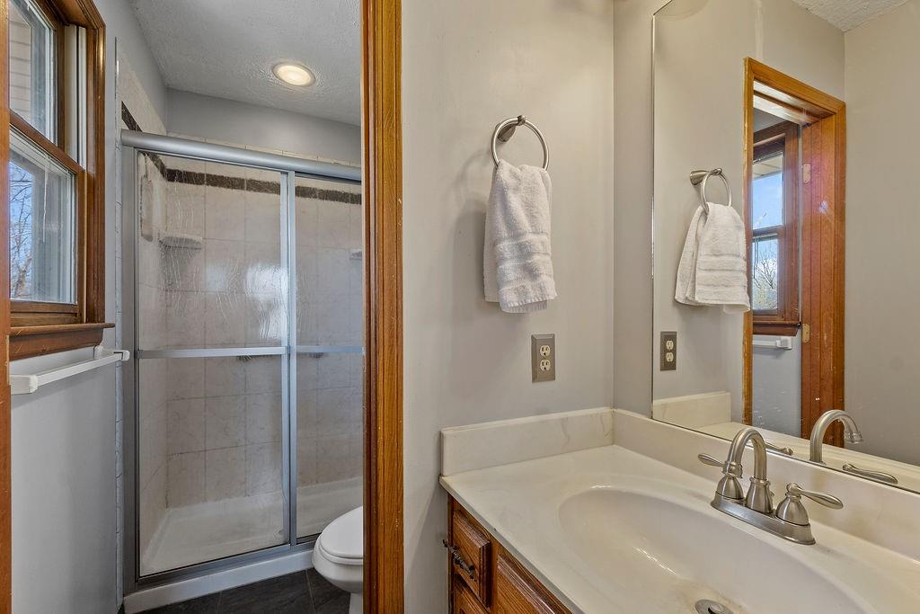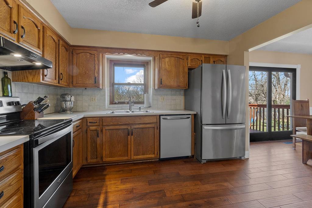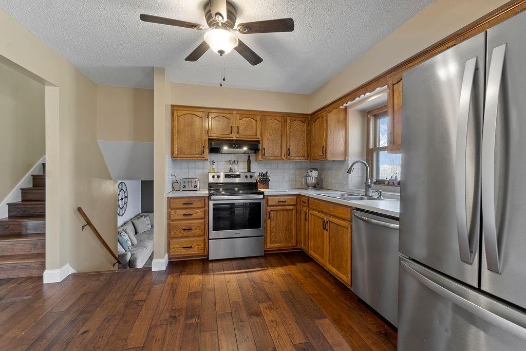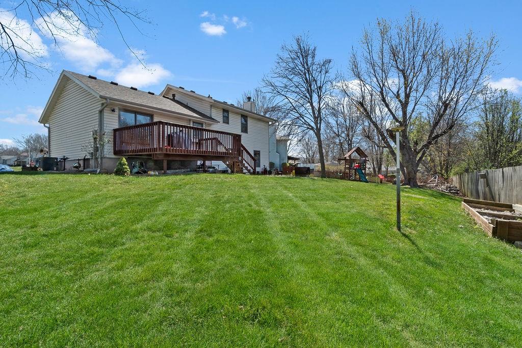 Charming home in Blue Springs on a cul-de-sac. Hardwood floors throughout the main living areas with carpet in the bedrooms. The primary bedroom features its own bath with a shower, along with an additional half bath for guests. The basement offers extra space for storage. Home also features a spacious 2-car garage. Out back, enjoy a large yard with a deck, perfect for relaxing or entertaining.